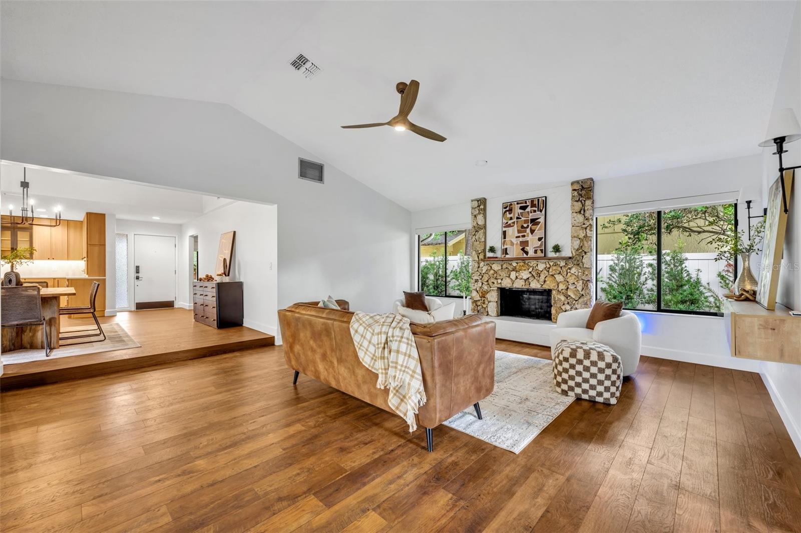 One or more photo(s) has been virtually staged. Fall in love with this meticulously renovated home nestled in the desirable Winter Park Pines Golfside neighborhood. The home features a never-before-used custom kitchen featuring Cambria quartz countertops, bespoke cabinetry, artisanal zellige tile backsplash, and high-end appliances; truly a dream. This move-in ready home boasts a practical split bedroom floorplan featuring high vaulted ceilings, an abundance of natural light, complemented by a new roof (2020), brand new HVAC (2025), new water heater (2025) fresh paint, updated modern flooring, new washer and dryer, and an EV charging port; simply bring your vehicle's charger and plug in. Step outside to discover the expansive, fully fenced backyard, primed for a private pool installation, with dedicated space for an outdoor shower that connects directly to the master bath. The screened porch creates a perfect entertaining space overlooking professionally landscaped grounds with comprehensive irrigation and elegant automated exterior lighting. Enjoy the freedom of no HOA restrictions, ideal for adding a studio shed or mother-in-law suite. Just steps from the 18th tee box at Winter Park Pines Golf Course and zoned for A-rated Winter Park schools, this home delivers the active, upscale lifestyle you've been searching for. Schedule your private showing today!