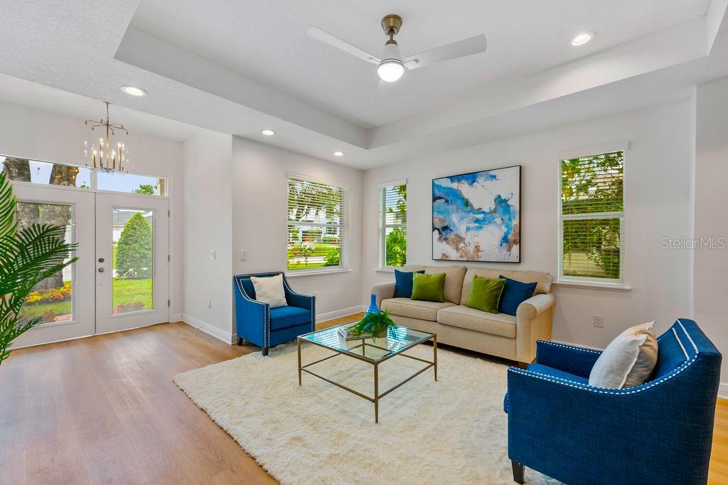 Welcome to 2607 Lafayette Avenue – a stunning custom-built residence nestled in one of Winter Park’s most desirable neighborhoods. This beautifully crafted home offers 4 spacious bedrooms, 3.5 bathrooms, and 2,770 square feet of refined living space designed for modern comfort and effortless entertaining. Step inside to discover an open-concept layout that seamlessly connects the kitchen, dining, and living areas. The kitchen features brand-new appliances, quartz countertops, shaker-style cabinetry, a classic subway tile backsplash, and a large island ideal for gathering. Elegant new light fixtures and a built-in wet bar elevate the space with a touch of sophistication. The first-floor primary suite is a serene retreat, offering two closets and a well-appointed en-suite bathroom complete with a soaking tub and separate walk-in shower. Upstairs, a spacious loft opens to a walk-out balcony and is accompanied by three additional bedrooms and two full bathrooms – perfect for family and guests. Storage is abundant with three walk-in closets, a double closet, and a convenient under-stair space. Additional highlights include a two-car garage with an epoxy floor, a screened patio for year-round enjoyment, and a fenced backyard oasis ideal for relaxation or entertaining. Freshly painted and surrounded by all-new professional landscaping with an irrigation system, this home offers exceptional curb appeal. Located just minutes from Park Avenue’s shopping and dining, Rollins College, the Winter Park Chain of Lakes, and zoned for A-rated Dommerich Elementary, Maitland Middle, and Winter Park High School—this property blends luxury, location, and lifestyle.