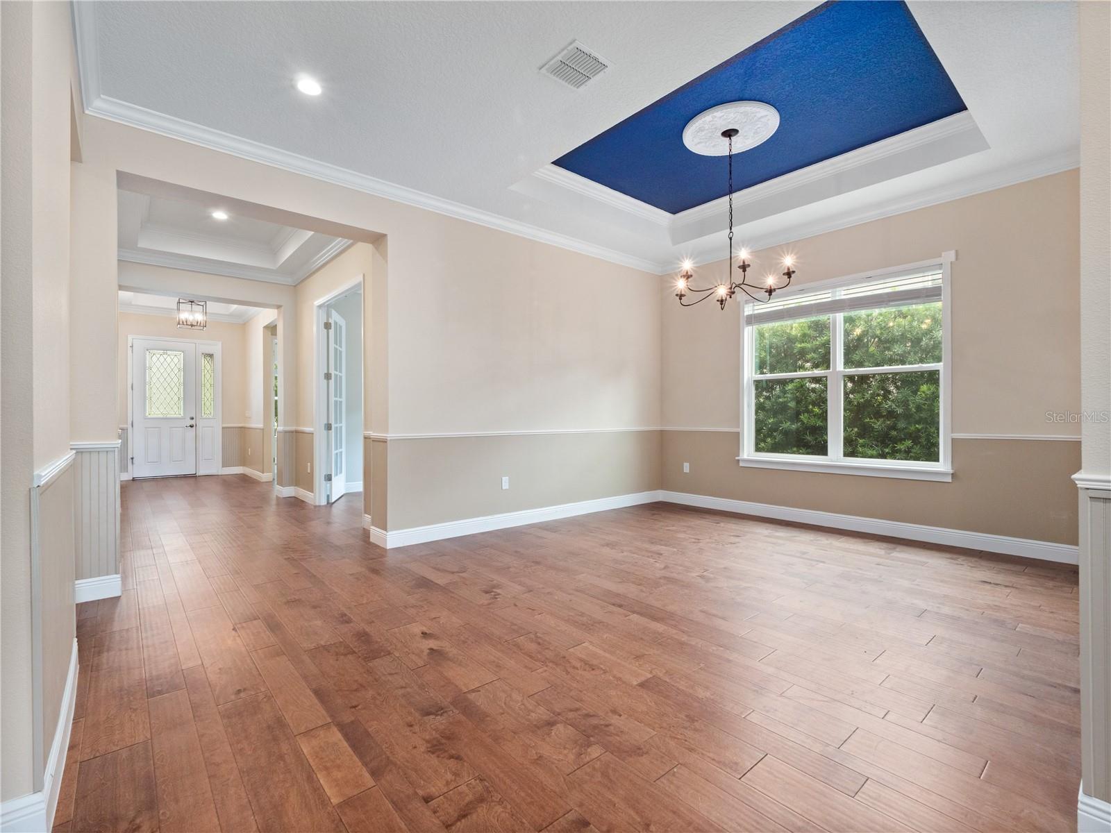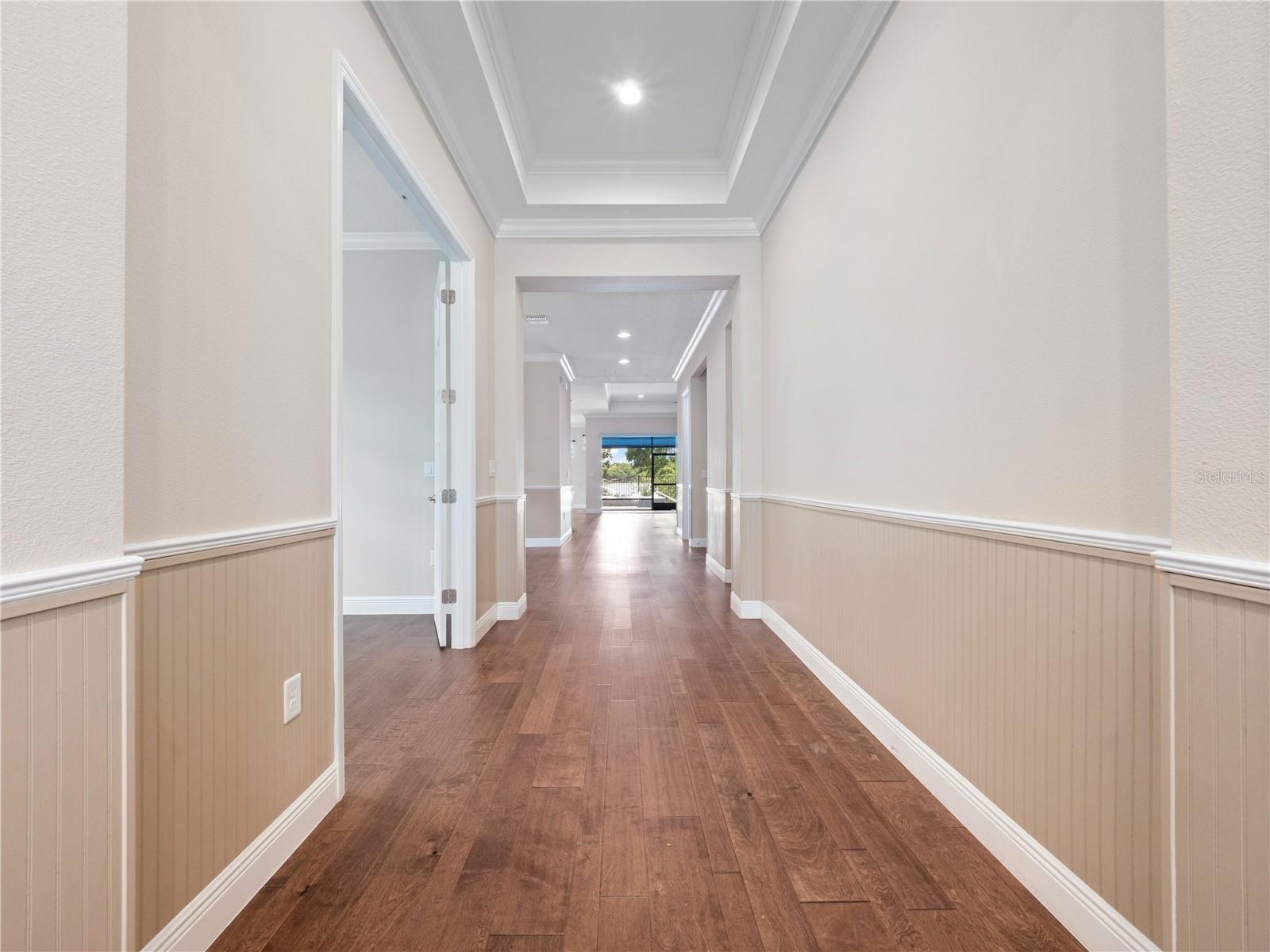 One or more photo(s) has been virtually staged. Stunning Lakefront Living in an Exclusive Gated Community! Welcome to this beautifully appointed single-level home in an intimate gated community of just 28 residences nestled along the shores of picturesque skiable Lake Florence. With direct lake frontage and access to a nearby community dock, this property offers serene water views and an exceptional floor plan designed for both comfort and functionality. This 4-bedroom, 3.5 bathroom home features a dedicated office, formal dining room, oversized storage room and a desirable 3-way split bedroom layout offering privacy and versatility for today’s lifestyle. The gourmet kitchen is a chef’s dream showcasing quartz countertops, a massive center island, natural gas cooktop, 42" solid wood cabinetry, a walk-in pantry and a spacious butler’s pantry for added storage and prep space. The kitchen flows effortlessly into the bright family room and casual dinette area all adorned with rich wood flooring that extends throughout the home. The primary suite offers serene lake views, two walk-in closets, and a luxurious en-suite bathroom with dual sinks and an oversized shower with dual shower heads. High ceilings, upgraded tray ceilings, crown molding and natural lighting throughout the home. Step outside to your private backyard oasis complete with gorgeous lake views, a sparkling pool and spa, custom rock waterfall, fenced yard, tall privacy hedges, mature fruit trees and a screened-in lanai area. The 3-car garage includes a separate wall AC unit ideal for a workshop, gym or more storage. Conveniently located near shopping, dining, and top-rated schools this is a rare opportunity for lakefront living in a prime location!