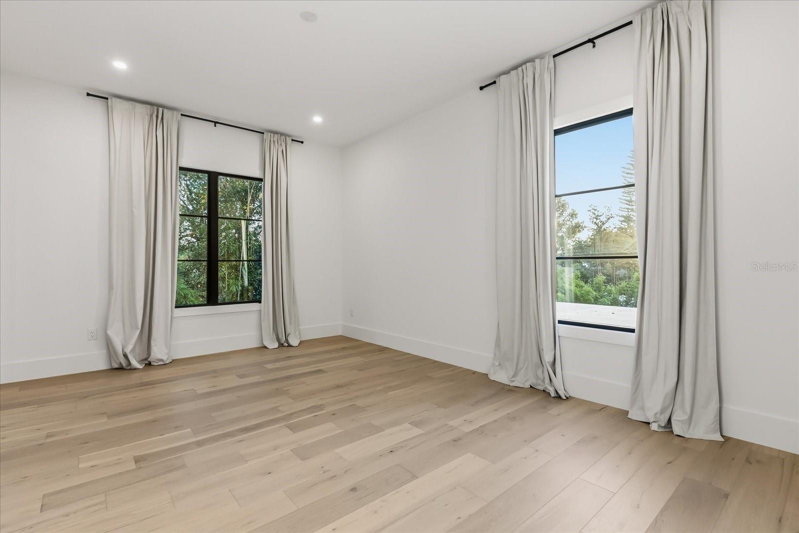 Step into a world of modern elegance in this newly completed estate in the heart of Winter Park. Masterfully constructed, this five-bedroom residence with six full and one half baths spans over 4,500 square feet of luxurious design and comfort. From the moment you enter the soaring foyer, light pours through expansive windows that frame every angle of the open floor plan, creating a seamless connection between indoor and outdoor living. The main level showcases a grand living and dining area anchored by a statement fireplace and a chef-inspired kitchen featuring premium appliances, European cabinetry, a large center island, and a walk-in pantry designed for effortless entertaining. The primary suite offers tranquil views of the pool and gardens with a spa-inspired bath featuring a freestanding soaking tub, dual rain showers, and a custom double vanity. A second ensuite bedroom on the first floor provides flexibility for guests or an elegant home office. Upstairs, an airy loft and media lounge open to a private balcony overlooking the grounds. Three additional ensuite bedrooms each feature generous walk-in closets, offering comfort and privacy for family and guests alike. Outside, an expansive covered lanai with a summer kitchen and retractable screens overlooks a sparkling saltwater pool surrounded by lush landscaping and an outdoor bath for convenience. The oversized lot allows for both grand entertaining and peaceful retreats, while the three-car garage with EV charging and a paver driveway add practicality to the home’s modern luxury. Perfectly positioned near Park Avenue, Hillstone, Interlachen Country Club, and top-rated private schools, this home delivers an elevated Winter Park lifestyle where design, comfort, and location converge effortlessly.