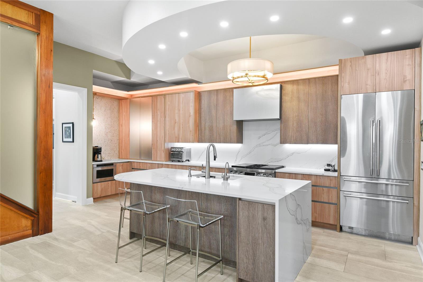 Discover refined elegance in this meticulously updated 3-bedroom, 2.5-bath two-story residence in sought-after Winter Park. Offered at $1,200,000, this stunning home seamlessly blends modern luxury with thoughtful design. The heart of this home features a customized chef's kitchen with top-of-the-line Signature Kitchen Suite appliances, including both induction and electric ranges plus natural gas cooking. Sophisticated touches include in-cabinet and drawer lighting, a dedicated coffee station, and wine cooler—perfect for the culinary enthusiast. Enjoy main-floor living with a spacious primary bedroom suite featuring a spa-inspired ensuite bath with jetted tub and separate shower. Throughout this beautifully appointed home, you'll find 11-foot ceilings, fresh paint inside and out, new porcelain flooring on the main level, and designer light fixtures. A gas fireplace adds warmth and ambiance, while plantation shutters and custom draperies provide elegant window treatments. The second floor offers two generous bedrooms with charming Juliet balconies, connected by a convenient Jack and Jill bath. The versatile loft/bonus room features a built-in entertainment center with surrounding bookcases and beverage center—ideal as a media room, home office, or recreation space. A detached two-car garage opens to a private patio and backyard—perfect for entertaining. The unbeatable location offers walkability to the YMCA and Phelps Park. This turnkey residence represents the perfect blend of luxury, location, and lifestyle in Winter Park's vibrant community.