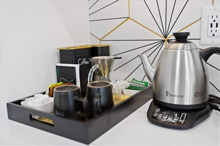FULLY FURNISHED | NEW CONSTRUCTION–QUALITY | WALKABLE WINTER PARK | FULL SMART HOME This is not a renovation—this is a complete architectural transformation. Taken down to the studs and roofline, expanded, and rebuilt with intention, this custom luxury residence is ideally located just steps from Winter Park Village and minutes from iconic Park Avenue, offering a truly walkable, car-optional lifestyle. The home features a custom 51’ x 10’ driveway, mature Italian cypress trees, sculptural landscape elements, and elegant iron railing, creating exceptional curb appeal. Covered front and side porches welcome you into a thoughtfully designed interior blending contemporary architecture with refined mid-century influence. Over 300 square feet of newly added living space includes two additional bathrooms, an indoor laundry room, and an oversized primary suite designed as a private retreat. Custom liner windows in the dining room and primary suite provide abundant natural light and architectural character. Interior highlights include: • Tile flooring throughout with custom tile work • Designer kitchen with floating shelves • Smart stove, built-in under-counter microwave and dishwasher • LED under-cabinet and island lighting • Custom light fixtures and ambient lighting throughout • Primary bath with ceiling-mounted rain shower • Zebra blinds throughout • New stacked washer and dryer included The home is fully equipped with modern smart-home technology, including: • New AC system with smart thermostat • Tankless water heater and all-new plumbing • Smart lock entry • Smart soffit exterior lighting • Google doorbell camera and security floodlight cameras with two-way audio • Smart sprinkler system with weather monitoring The private backyard is enclosed with PVC privacy fencing and designed for outdoor living, featuring a porcelain-tiled covered patio and a separate poured slab ideal for a fire pit or grilling area, positioned safely away from the home. Enjoy unmatched proximity to dining, shopping, entertainment, parks, golf, train station, and everyday conveniences including Starbucks, Whole Foods, Publix, restaurants, and movie theater—all just moments away. Homes offering new-construction quality, designer finishes, smart-home integration, and this level of walkability rarely come to market. A turnkey opportunity for the most discerning buyer.