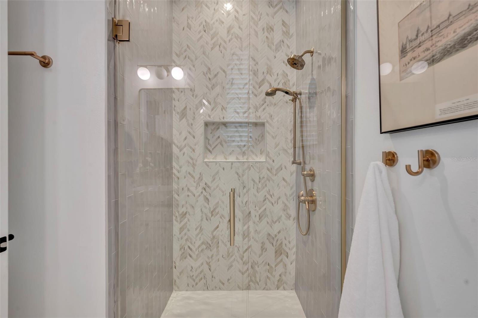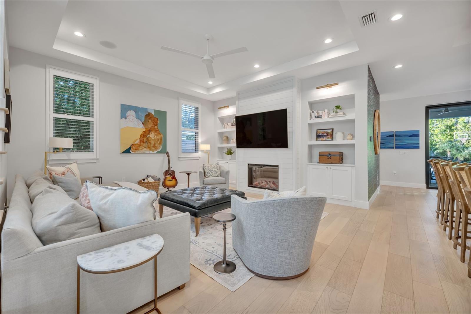 This exceptional custom residence, built by Meridian Homes and designed by Zero Latitude, offers a rare combination of thoughtful architecture, high-end finishes, and modern functionality. Interior design by Lauren Ayers Interiors sets a refined tone throughout, complemented by curated details such as Rifle Paper wallpaper, accent walls, and wide-plank hardwood flooring by Britannia Flooring. The home features five bedrooms, five full baths, and two half baths, including a first-floor primary suite with a spacious walk-in closet and a spa-inspired bathroom showcasing upgraded imported tile and a large walk-in shower. The main level also includes a powder room, laundry room, a private home office with doors, and a guest suite—ideal for multigenerational living or overnight guests. At the center of the home is a chef’s kitchen with an abundance of custom white cabinetry by Monarch Kitchens and Bath, paired with a striking oversized blue island with seating for four plus additional space for a dining table. Premium appliances include a Wolf oven, GE Café double oven/microwave, refrigerator, and beverage fridge, along with a Thermador dishwasher. The kitchen flows seamlessly into the family room, which features an electric fireplace and custom built-ins, creating an inviting space for everyday living and entertaining. Upstairs, three additional bedrooms each offer private baths featuring custom cabinetry, fixtures, and tile, along with generous closet space, plus a versatile bonus area-ideal as a second family room or media space. Outdoor living is equally impressive. A covered rear lanai overlooks a heated saltwater pool and hot tub, complemented by a summer kitchen with a high-end built-in, vented gas grill, sink, and under-counter refrigerator. An outdoor shower and pool-half-bath complete this resort-style setting. Additional highlights include: floor-to-ceiling imported tile in every bathroom, Custom wrought iron stair railings, Custom wood plantation shutters on all windows, an Automatic driveway gate, a Built-in surround sound system, and a “Control4” whole-house smart system with integrated security, as well as a 2-car garage. This meticulously designed home delivers uncompromising quality, comfort, and convenience in a warm, quiet setting, making it ideal for both everyday living and entertaining. Ideally located in the heart of Winter Park, close to the area's top-rated schools, parks, the YMCA, the boutiques and restaurants on Park Ave, and also minutes from Rollins College and downtown Orlando. Do not miss this opportunity to live in this sophisticated, luxurious home. Schedule your private appointment today.
