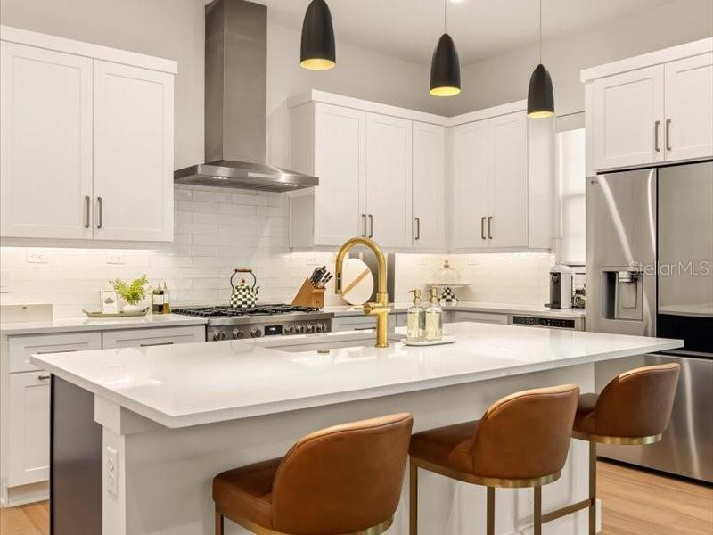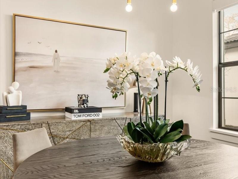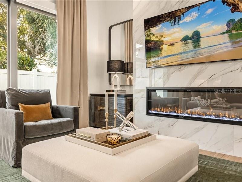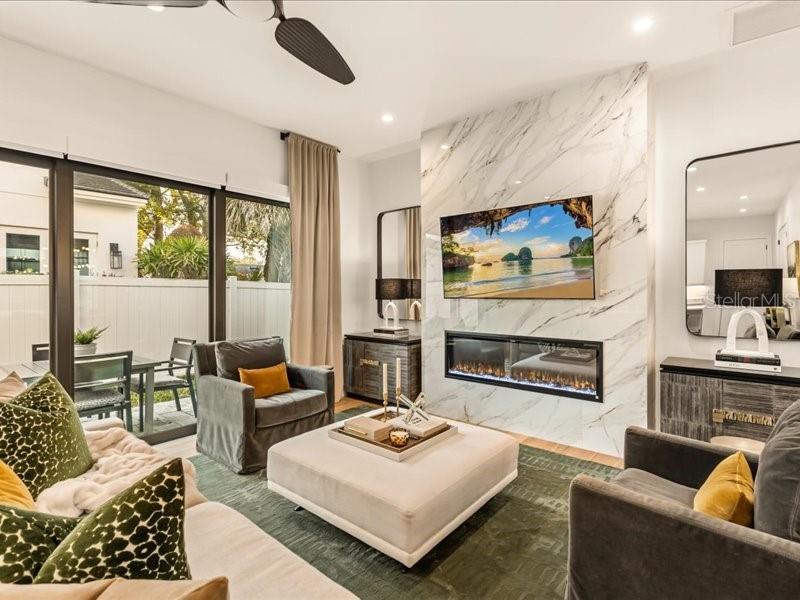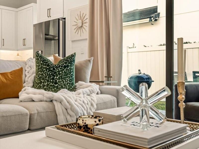 FURNISHINGS INCLUDED! Experience high-end luxury and effortless convenience in one of the most central locations in Winter Park. Built by Makeur Homes and thoughtfully updated and furnished by SMRS Design, this stunning Modern Mediterranean detached townhome showcases light-filled interiors and carefully curated custom finishes. Offering 3 bedrooms and 2.5 bathrooms across 1,884 square feet, the home features a desirable first-floor primary suite and elevated design details, including Level 4 drywall, engineered oak floors, Bosch appliances, LED mirrors, and a Lutron Caséta lighting and Triathlon shade system. A Calacatta Gold porcelain slab electric fireplace serves as a striking focal point in the living room. All major designer furnishings are included—featuring pieces from renowned design houses such as Restoration Hardware, Caracole, Eichholtz, and Jonathan Charles—creating a truly turnkey opportunity. The open-concept floor plan is both functional and inviting, filled with natural light and offering views of a private paved patio and fenced backyard—ideal for relaxing or entertaining. Enjoy a low-maintenance, lock-and-leave lifestyle within an intimate four-unit community tucked along a picturesque, tree-lined brick street. Additional highlights include a private two-car garage with EV charging port, guest parking, and close proximity to premier dining, shopping, and daily conveniences, including Publix and AdventHealth. A rare opportunity to own a fully furnished, design-forward residence in an exceptional location.