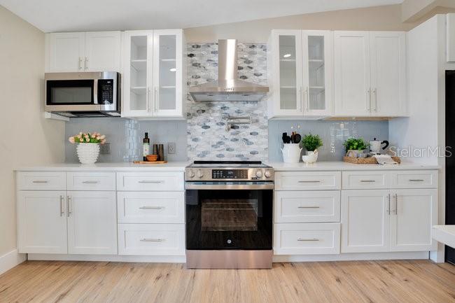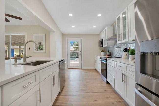 ***MUST SEE WINTER PARK POOL HOME*** Explore the virtual tours to fully appreciate the beauty of this completely renovated 3 bedroom/2 bath solid block pool home nestled in the highly desirable Kenilworth Shores community in Winter Park. This move-in-ready home features an open layout with vaulted ceilings and an abundance of natural light, highlighted by a large free-flowing kitchen with all the amenities... new stainless-steel GE appliances, elegant quartz countertops, sturdy oversized soft-close shaker cabinets and two large built-in wall pantries. The open living area includes a cozy formal dining room with additional countertop seating, and a picturesque sliding glass door opens to an extra-large 40 x 12 outdoor covered porch that provides additional casual outdoor living space. The spacious primary bedroom has a vaulted ceiling and his/her closets, with private access to the backyard covered porch, and features a fully renovated en-suite bath. The secondary bathroom has been tastefully upgraded, as well. Freshly painted inside and out, this immaculate home has new waterproof LVP flooring throughout, new light fixtures and ceiling fans, and stylish window shade coverings on every window. With an indoor laundry room and a two-car carport, this worry-free home features a new AC unit installed in 2025, a new electrical panel and updated plumbing, and a roof that was replaced in 2018. Setting this home apart is your private outdoor private backyard oasis, showcasing a gorgeous 32 ft long/10 ft deep in- ground pool plus a unique outdoor kitchen . . . perfect for family gatherings or hosting a Bar-b-que pool party . . . and with a generously sized 10’ x 18’ shed with full electric providing additional storage solutions or living options, this fully fenced-in backyard is truly a tranquil outdoor haven. Zoned for excellent Winter Park schools, this home is located four blocks from Winter Park High and less than a mile from Brookshire Elementary and Glenridge Middle. It comes with deeded access to the boat ramp and fishing dock at Lake Berry. Blue Jacket Park and Cady Way Park are just down the street, showcasing great bike trails for walking and jogging. The well-known shopping and restaurants of downtown Park Avenue and Baldwin Park are just minutes away. Rollins College, UCF, Full Sail University, and Winter Pines Golf Course are all close by. And Advent Health/Winter Park Hospital is less than a mile down the street. This is a quiet, family-friendly community known for its tranquility and peaceful living. Don’t miss this opportunity to make this wonderful home your very own. Schedule your showing today.