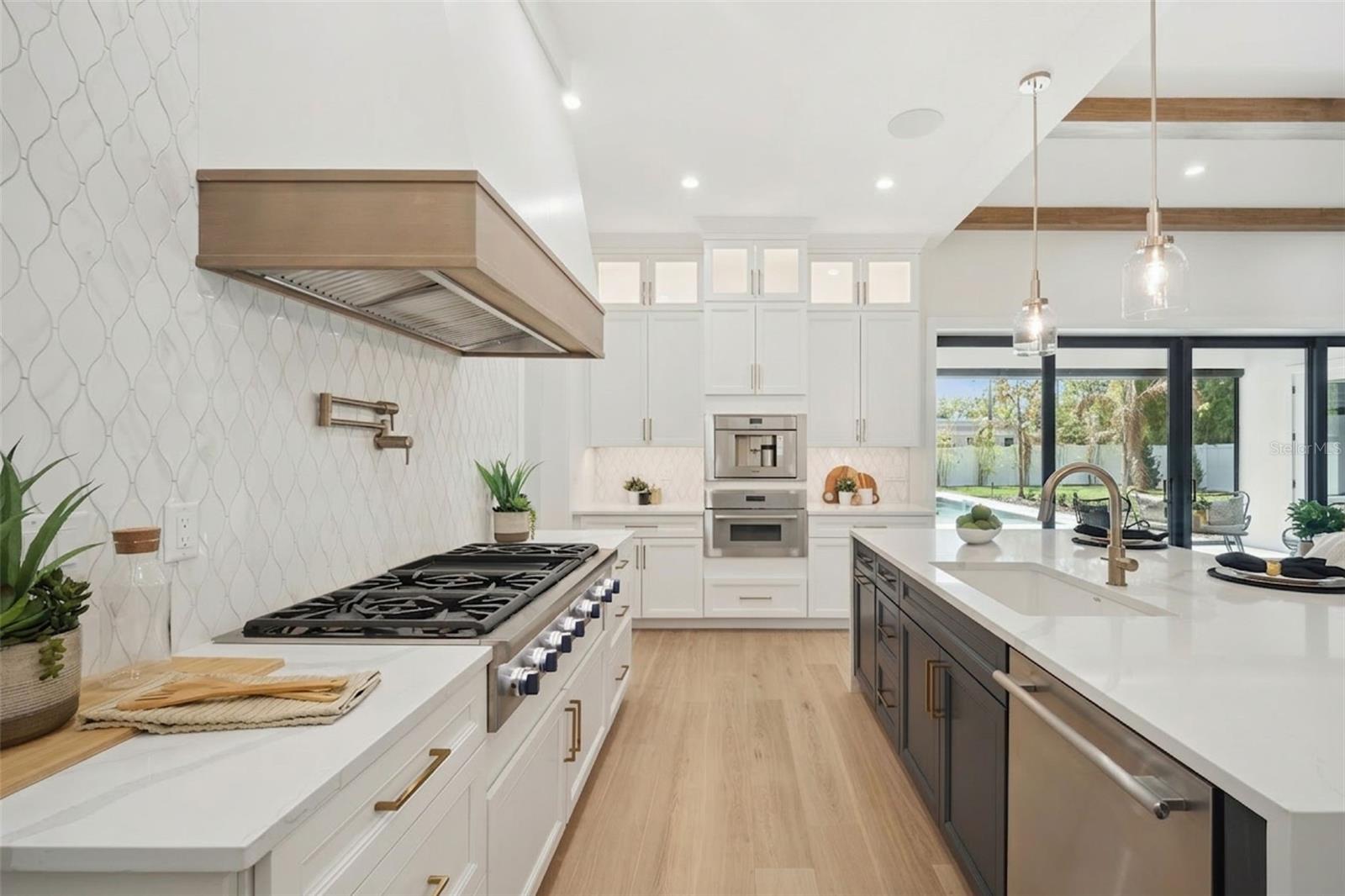 Step into this stunning West-Indies inspired luxury home crafted by Nautilus Homes, where tropical charm meets timeless elegance. An architectural masterpiece in the heart of City of Winter Park. This five-bedroom seven-bath home that includes a private in-law suite offers plenty of exquisite interior features. The home welcomes you with a beautifully designed 16 ft wide circular driveway wrapped in upgraded pavers, offering both elegance and functionality. A very rare 4-car garage in Winter Park with two in the rear and two in the front of the home. Starting with entering through massive 10 ft. double iron doors flowing into the foyer with 11ft high ceiling beginning with the flex/office room and formal dining to your left and right. Followed by entering the gallery that leads to the great room. The Chef’s Kitchen, a culinary dream featuring an oversized center island, quartz countertops throughout, custom 42"+15" wood cabinetry, a custom walk-in pantry, and top-of-the-line Thermador professional series. That Includes a 48' refrigerator, 48" gas cooktop, custom hood, dishwasher, built-in microwave, double convection ovens and built in coffee station. On your way to the formal dining, you pass by the show-stopping, Tempered glass wine room. Its crystal-clear glass enclosure offers a striking view of your curated collection, while the built-in wine chiller ensures each bottle is perfectly preserved. This elegant transition creates a seamless blend of function and sophistication, setting the tone for unforgettable dining experiences just steps away. The primary suite offers tranquility peace of mind, and the primary bath has a spa-like oasis with a spacious shower stand-alone tub. Followed by a custom closet thoughtfully design with plenty of room and storage. The guest retreat area has a huge bedroom, access to a full bath including private access to the Lania and pool. Tucked away with its own private entrance attached to the rear garage, the in-law suite above the garage offers the perfect blend of comfort and independence. This thoughtfully designed space includes a full bath, a cozy living area, and a convenient space with a kitchenette—ideal for extended stays or multi-generational living. Make your way to the second floor that has 11ft ceilings as well. As you reach the top the space opens into a massive game room with a wet bar, perfect for entertainment retreat with a balcony. All second-floor bedrooms have a thoughtfully design with a full bath for privacy. As you make your way back downstairs to outside, step through the oversized sliding glass doors and into your private outdoor oasis. Effortlessly extending your living space into the open air. Just beyond, the sparkling gas heated/saltwater pool and spa framed by lush landscaping and designed for both relaxation and recreation. Also, the fully equipped summer kitchen features gas grille, beverage refrigerator and ample counter space—perfect for alfresco dining and effortless entertaining. This seamless indoor-outdoor flow creates the ultimate setting for enjoying the Florida lifestyle in style and comfort. This masterpiece is equipped with a full irrigation system around the home, exterior lighting, exterior cameras for security. Smart home system ready for lighting, music and security controlled by Control 4 system for your convenience. Interlachen Golf community less than 5 min, Phelps Park walking distance, Park Ave 10 min and restaurant and retail minutes away.