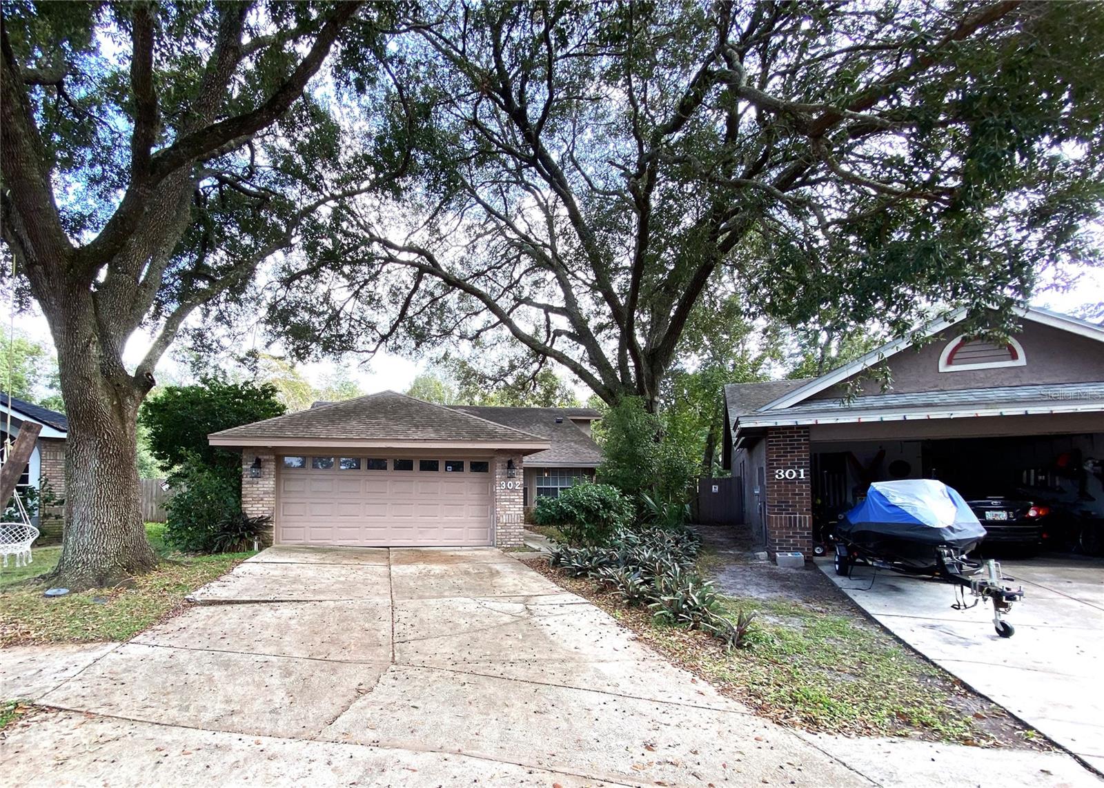 One or more photo(s) has been virtually staged. Built in 1989, this contemporary home is a must see! Bright 3/2 house with 1401 square feet of living space, cathedral ceilings, open plan and split bedrooms, recently renovated. New roof 2018, new AC system 2022, new water heater 2022, whole house replumbed 2022. The kitchen is updated with stainless steel appliances. Garage has been painted. The beautiful, wooded backyard comes complete with a large pond. This house is part of a desirable community with access to pool, park, trails, playground and tennis court. It sits in a cul-de-sac, with limited traffic, ideal for families and pets. Just bring your decoration skills, and this would be the cutest house in a great location!