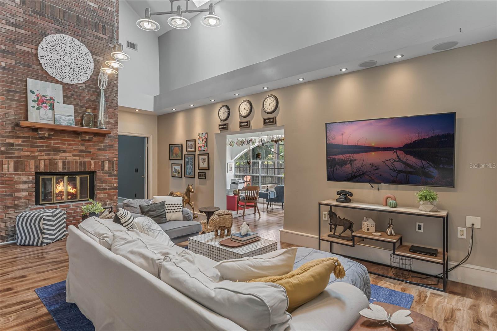 MOTIVATED SELLER-RELOCATING! Outstanding opportunity in the market! This expansive, recently renovated 5-bedroom, 3.5-bathroom residence is situated in the highly sought-after Tuskawilla neighborhood. Nestled at the end of a tranquil cul-de-sac, this property is every homeowner’s Florida dream! As you enter this completely remodeled home, you’ll notice an inviting dining area bathed in natural light, perfect for hosting gatherings of up to eight guests. The grandeur of the great room unfolds with its soaring ceilings, skylights, and a captivating double-sided fireplace, setting the tone for luxurious living. The open-concept kitchen is a designer’s dream, filled with monochromatic cement tile and waterfall countertops. The centerpiece is an expansive kitchen island adorned with a brand-new stainless-steel hood, harmonizing flawlessly with the suite of appliances. With ample storage, the kitchen also features a cabinet pantry, a storage closet, a built-in microwave, all set against the backdrop of slate floors and a dinette overlooking the pool area. There is no better place to spend your afternoons than the enormous Florida room, always filled with light, offering serene views of the pool. Its elongated form allows for multiple areas, from a library to a music or secondary family room, all followed by its wonderful marble-seating bay window. Enjoy a movie night or a gym session inside the luxurious bonus room, which features a double-sided fireplace, soaring ceilings, and a skylight. The master suite is generously proportioned and features a cozy fireplace and a charming flex room that opens onto a private courtyard. The palatial master suite, conveniently located on the first floor, also features vaulted ceilings, a newly installed fan, plenty of area for seating, and custom-made walk-in closets. The master bathroom is a sanctuary of modern elegance, boasting open ceilings, contemporary vanities, and an oversized shower. But its highlight is the standalone bathtub, nestled within a tranquil alcove adorned with cement tiles and flooded with natural light. Adjacent to the master suite, discover a versatile bedroom ideal for a home office, while another spacious bedroom on the first floor offers comfortable accommodations for guests, with convenient access to the pool area. On the second floor are two spacious bedrooms, both with walk-in closets and a split bathroom, allowing for more privacy and functionality. The generously sized two-car garage is ample enough to fit a workshop area. Recent updates include: fully-gutted kitchen (2019), laminate flooring (2019), fully-gutted master bathroom (2019), A/C units, blowers and thermostats (2019), exterior paint (2019), renovated ceilings (2024), roofing (2024), most windows (2021-2024), garage sheetrock (2024), front lawn (2024), and repaired outdoor screen (2024). The house has surround sound throughout. Don’t miss out on one of Tuskawilla’s premier homes!