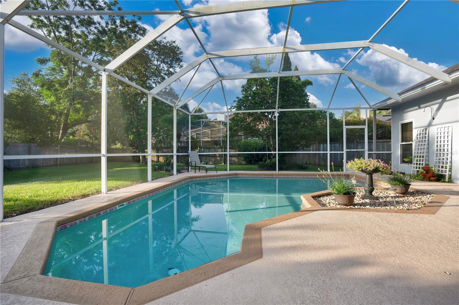 **Welcome Home to Tuscawilla!** Step into this fantastic 4-bedroom, 2.5-bath gem nestled in the charming cul-de-sac of Carrington Woods. Located in the highly desirable Tuscawilla neighborhood, this home combines comfort, style, and energy efficiency in one perfect package. As you enter, you'll be greeted by a bright and inviting formal living and dining area, setting the tone for both relaxation and entertaining. The spacious kitchen, featuring a convenient bar and an eat-in area, opens up through sliders to a stunning screened-in pool area. Imagine enjoying your morning coffee or hosting poolside gatherings in this serene outdoor retreat! The primary suite is a true sanctuary, complete with two closets, a cozy sitting area, and sliders leading directly to the patio. The en suite bathroom is designed for ultimate relaxation with dual vanity sinks, a luxurious garden tub, and a separate shower stall. On the other side of this thoughtfully designed split plan home, you'll find three additional bedrooms and a pool bath with dual vanity sinks—perfect for family or guests. The indoor laundry room, equipped with storage cabinets and a sink, adds convenience to your daily routine. The separate living room, featuring a wood-burning fireplace, offers a cozy space for unwinding after a long day. And with a half bath conveniently located for guests, you'll be ready for any gathering. The spacious, screened pool area is ideal for enjoying Florida's beautiful weather year-round. Plus, with solar heating for the pool, attic insulation, a fan to reduce heat, and a hybrid water heater utilizing both solar and electric, you'll enjoy impressive energy efficiency. The average electric bill here is less than $200 per month! The home also features double-pane energy-efficient windows (replaced in 2010), a water purification system and a new roof (installed in 2018). Beyond the home, Tuscawilla offers a vibrant community with golf courses, tennis courts, walking trails, parks, and excellent schools, making it the perfect setting for your next chapter. Don’t miss the opportunity to call this amazing property your new home!