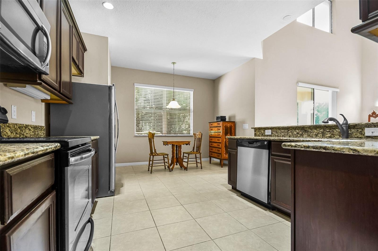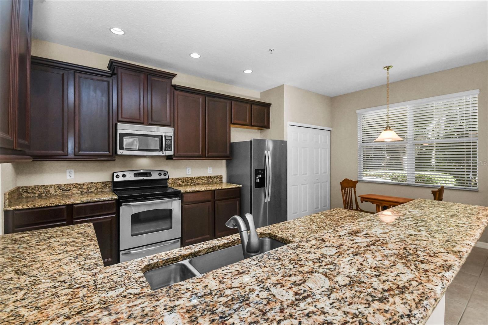 Welcome to this fabulous 2-story, 3 bedroom, 3 full bath, end unit townhouse with attached 2-car garage, in a cul-de-sac, in the exclusive gated community of Harbor Winds. You can enjoy being in a premium unit that backs up to a wooded view for peace and relaxation. Inside, the perfectly upgraded kitchen includes a cozy breakfast nook, granite counters, stainless steel appliances, custom cabinetry, huge closet pantry and breakfast bar. The kitchen looks out to the living room area that has sliding glass door access to the rear lanai, so much natural light, and is showcased by the 2-story vaulted ceiling that makes this space feel even bigger. A formal dining room is perfect for family gatherings and entertainment. There is one bedroom downstairs with access to a full bathroom. An inside utility room accommodates full sized washer & dryer machines with a spacious storage closet also on the main level. Up the stairs you will find the master suite which has more than enough space for a king set. Step past the huge walk-in closet on your way to the attached ensuite with a large jacuzzi tub, dual sinks and separate glassed shower. The 3rd bedroom is generously sized and sits adjacent to the 3rd full bathroom. The community offers a resort style pool with lots of sunbathing deck space. Upgrades include: New Roof (2023); New Gutters (2023); New A/C System (2020). The location is perfect, with close proximity to shops, restaurants, and supermarkets. Approximately 40 minutes to Walt Disney World, Universal Studios and under one hour from New Smyrna and Daytona beaches.