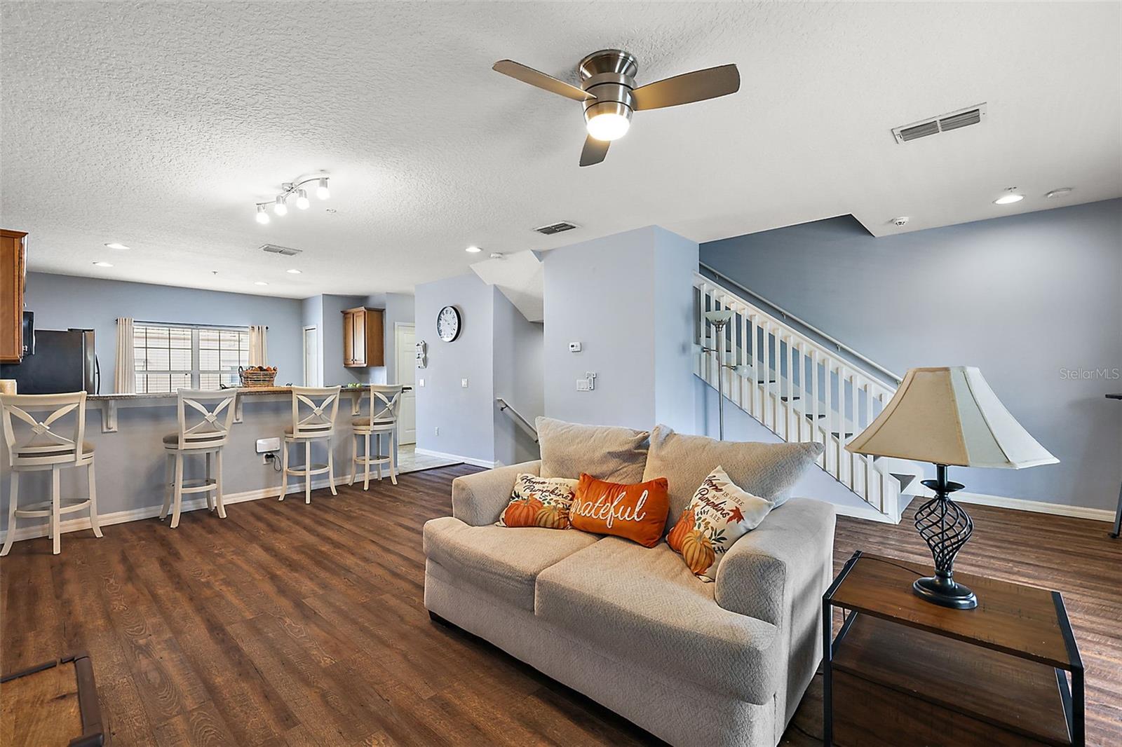 Welcome to this meticulously maintained and spaciously cozy home with 1844 square feet of living space in the sought after Jesups Reserve community. The only reason the family is moving is because they have outgrown the house and need more space, but they have loved living there. Your new 3 story home includes 3 bedrooms each with its own full bathrooms (3 total) with an oversized 2 car garage (with storage hooks to keep you organized); there is even a garage closet for additional storage space. You won’t have to worry about making upgrades to the main systems of the house because the AC was replaced in 2023, the roof was replaced in 2022 and the garage door had maintenance performed in 2024. This home features a fabulous split bedroom floor plan that is great for multi-generational living or for families that like to entertain guests. When you enter the home, there is a full bedroom and bath on the first floor; as well as a back entrance to the garage (which you enter from the alley). Upstairs on the second floor, you will find your spacious, open floor plan living area with room for dining, relaxing and cooking in your oversized kitchen with breakfast bar and stainless steel appliances (less than 5 years). The laundry room is also located on the second floor for convenience. Brand new stair railing. The third floor has the large owner’s suite, which has a master tub and shower, large walk in closet and private bathroom. You will also find the laundry room and linen closets. The three outdoor seating areas have hosted many dinner parties and family gatherings. You have a porch on the first floor and a patio on the 2nd floor (which was completely updated) and a 3rd floor balcony. All of these will allow you to enjoy romantic outdoor dinners listing to the music from the wine bar across the street. Additional features include: laminate flooring - no carpet throughout the house; community pool is well maintained and equipped with a jacuzzi for those days when you need to relax and chill and there is a beautiful pond with a family of friendly ducks. You will enjoy living in this safe community with friendly neighbors. The house has been professionally cleaned and the exterior pressure washed to give you that move-in ready feeling. Priced to sell. Bring us your offers. Jesups Reserve is conveniently located across from Winter Springs Town Center. You have every convenience you can need either in walking distance or within a quick car ride. The community is close to trails, including Trotwood, Centralwinds, Friendship, Winding Hollow, Sam Smith and Torcaso Parks. There is a nearby dog park for you fur babies. You have your choice of fitness centers that are 1 to 5 minutes away (Crunch, Planet Fitness and Zoo Fitness). Shopping and restaurants nearby include Publix, Spill, Aldi, Dollar Tree, Water to a Tea, Ice cream parlor and more. It is so easy to get to Lake Mary or Sanford shopping areas without having to use 417, but 417 is right there for convenience and you are in a great school zone! Priced to sell. Make your appointment today and see this beautiful home for yourself.