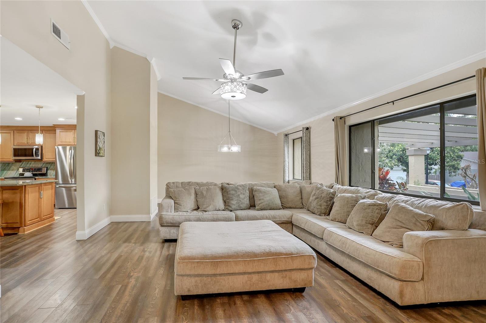 2025 Roof Installed! A rare gem in a sought-after location, this stunning single-story ranch home sits on a nearly 1/3 acre homesite, nestled at the end of a peaceful cul-de-sac. This is your chance to own a slice of paradise in one of Winter Springs’ most desirable neighborhoods! Designed for both entertaining and everyday living, this home blends function and luxury seamlessly. As you enter, you are greeted by formal living and dining areas, featuring a large picture window that fills the space with natural light. The heart of the home is the open-concept gourmet kitchen and spacious family room, perfect for hosting family and friends. The kitchen boasts 42” cabinetry, a large prep island with gorgeous granite countertops, and built-in storage and a coffee bar in the family room. The cozy fireplace serves as a striking focal point, flanked by custom built-ins and ambient lighting that sets the perfect mood for any occasion. The private primary suite is tucked away on its own wing, offering a luxurious retreat with a spa-inspired bath. Here, you’ll find a custom vanity, an expansive walk-in shower with a rimless enclosure and built-in seat, and a generous walk-in closet that’s sure to meet all your storage needs. The other two bedrooms, located on the opposite side of the home, are equally spacious and share a large walk-in closet. They enjoy a full bath with dual sinks and a shower/tub combo. The Florida lifestyle truly comes to life on the fully enclosed lanai, which seamlessly transitions to the multi-tiered paver terrace and expansive backyard. Whether you’re hosting a barbecue, relaxing around the fire pit, or enjoying a family get-together, this outdoor space is designed for enjoyment and entertaining. With its combination of luxury, functionality, and location, this exceptional home offers exceptional value. Don’t miss out on the opportunity to make 811 Gatehouse yours! Seller may contribute to closing costs if preferred lender is used.