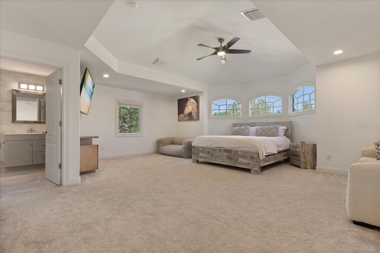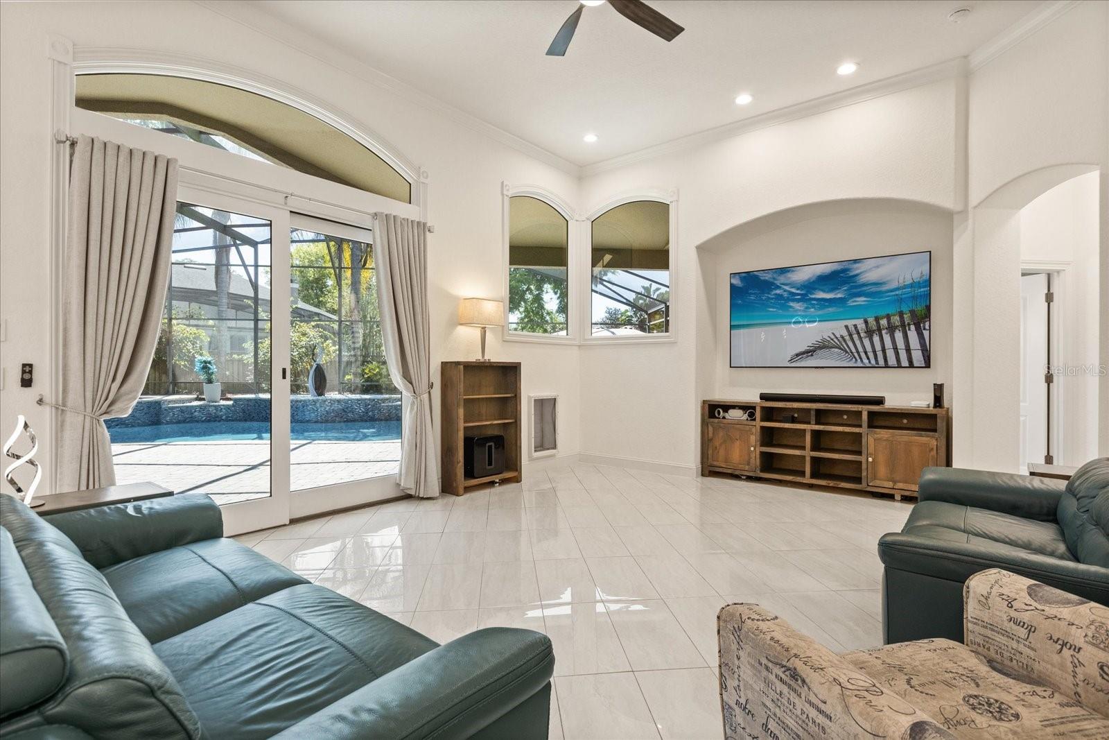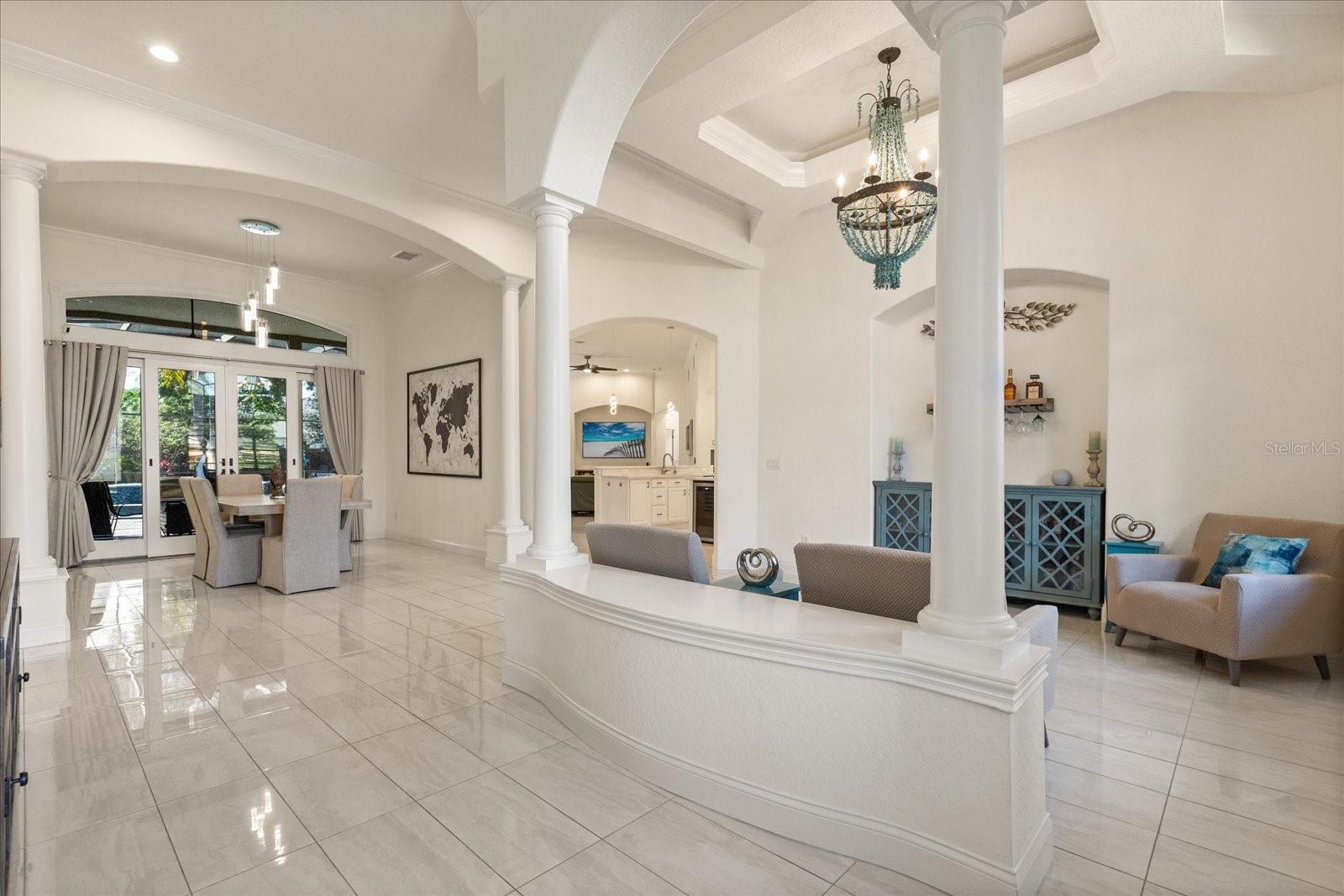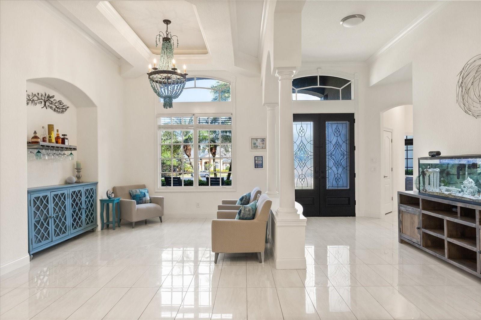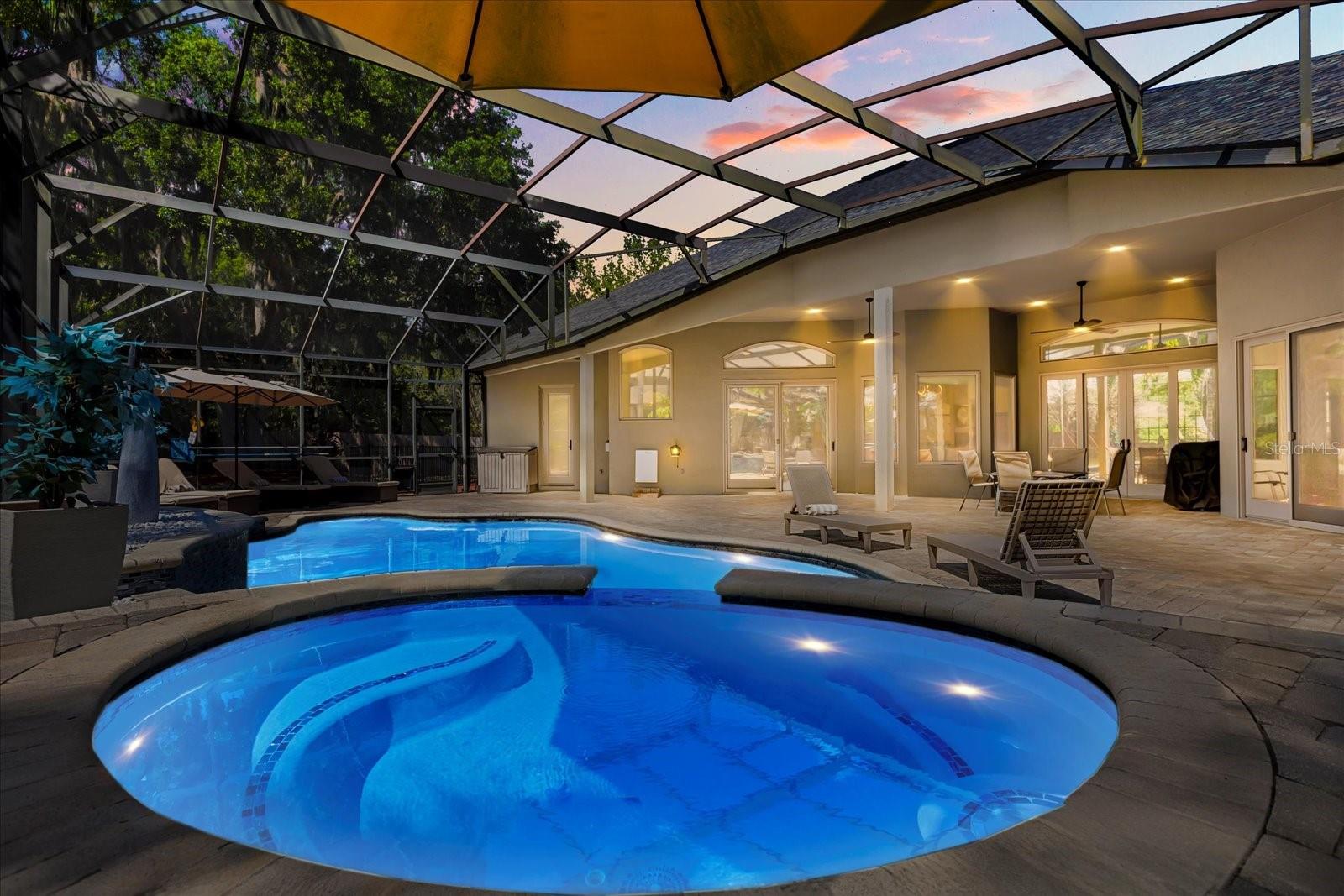 Presenting a truly exceptional 5-bedroom, 4.5-bath residence where luxury and sophistication converge. This magnificent estate, nestled in the intimate gated community of St. John’s Landing, where only 31 homes reside, has been meticulously crafted for an unparalleled living experience. No expense has been spared in creating a home that radiates elegance and refinement at every turn. Upon entry, you're greeted by porcelain tile that flows seamlessly throughout the home and soaring high ceilings that enhance the home’s open and airy feel. The kitchen is equipped with quartz counter tops, stainless steel appliances, wine fridge, and a reverse osmosis water filtration system. The bathrooms are adorned with the finest Moen fixtures, creating a polished and luxurious ambiance. Indulge in the serene beauty of floor to ceiling marble, deep soaking tubs, and a spa-like atmosphere, where relaxation is elevated. The enhancements continue with a whole home water softener system ensuring quality throughout. The primary suite is a sanctuary of comfort, featuring a double-entry walk-in closet of generous proportions, a spacious en-suite bathroom and sliding doors that lead out to the enclosed screen patio. The backyard is truly an outdoor retreat, where a completely resurfaced salt water pool awaits, along with an energy-efficient heater to extend your enjoyment year-round and a luxurious spa that invites you to unwind in style. Privacy trees planted around the property and privacy tinted windows, provide an intimate setting for both relaxation and entertainment. A dedicated dog run offers a safe space for your pets to enjoy, while the fire pit and additional yard space allow for an abundance of activities. The upstairs loft includes a full bathroom, 2 walk-in closets, and can easily be outfitted with a kitchenette to convert to a true in law suite. The possibilities are endless with this space. Technology is seamlessly integrated, with a whole home Ring security system for peace of mind, full home wiring for generator hookup, and keyless entry front door. The 3- car garage boasts a pristine, epoxied floor and secondary fridge for added convenience. Roof 2019, HVAC 2015/2020/2021, Water Heaters 2022. HVAC for main house includes UV Air Purification system. The community provides easy access to recreational trails, highways, restaurants, schools, and most importantly Lake Jesup. Enjoy the benefits of premier lakeside living, details on boat slips available upon request. This home is a rare blend of modern luxury, thoughtful design, and enduring quality, offering the perfect backdrop for both grand entertaining and quiet family moments. Experience the pinnacle of luxury living—schedule your private tour today.