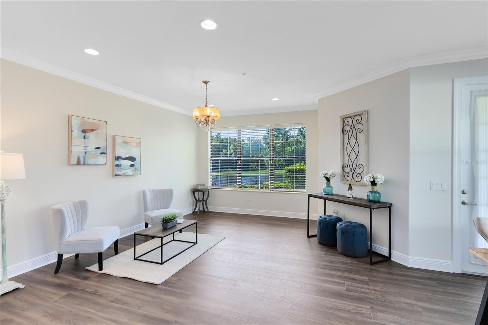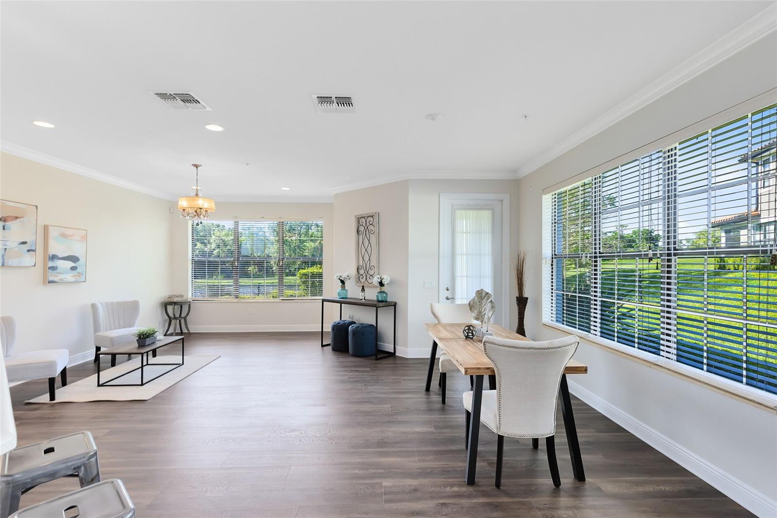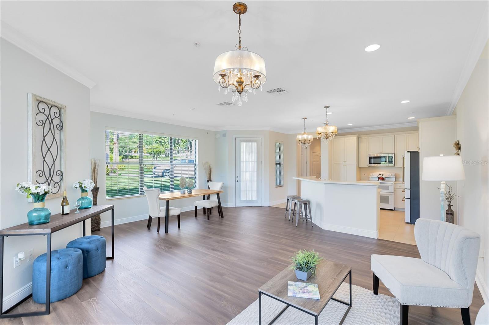 One or more photo(s) has been virtually staged. Seller is extremely motivated! This is a historically, low price for a three bedroom end unit with a spectacular view in this neighborhood! Rest easy with extremely low maintenance due to the HOA covering every blade of grass, every tree, every shrub and every inch of your exterior including exterior insurance. The gated community features private roads, a dog park views of the golf course and tennis course of the Tuscawilla Country Club which offers very low membership rates This beautifully designed and updated zero maintenance end unit townhouse is elevator ready and boasts many upgrades and beautiful golf and water views. Hoa fees are all inclusive covering exterior insurance, roof repairs and replacement, exterior building maintenance, yard maintenance and all landscaping, interior and exterior pest control, grounds sprinklers, private community road, fire sprinklers, private dog park, gated entrance and wall maintenance, street lighting and the retaining walls on the conservation areas. This exclusive luxury townhouse community offers a gated entrance, pristine landscaping and building maintenance plus a direct golf cart path to the Tuscawilla Country Club with a variety of membership plans available. Just walk over to the club to experience gourmet dining, exercise facility, Jr Olympic pool, clay tennis courts and a Championship Golf Course spanning 6,851 yards, winding peacefully through some of the most pristine land in the state. Breath a sigh of relief upon entering this immaculate residence with three bedrooms and 2 1/2 bath. The wide carpeted stairwell is easy to navigate and has rails on both sides. Downstairs, the entertaining and living area with easy care LVT flooring is light and bright with a beautifully appointed kitchen featuring upscale cabinets, quartz countertops and new appliances. Sit on the screened back porch and watch the water birds in the pond with fountain and the backdrop of the pristine golf course. A 2 spacious car garage and additional under stair storage plus the two elevator ready interior closets allow you a great opportunity to scale down without having to get rid of your treasures. Your homeowner insurance bill will be drastically lower since you will only need an HO6 insurance policy that is common in condominiums. Just lock your door and feel free to travel with this turnkey living opportunity or just enjoy a daily vacation right in your own home! By the way, the smaller unit next door at 1561 is also for sale and has an elevator.