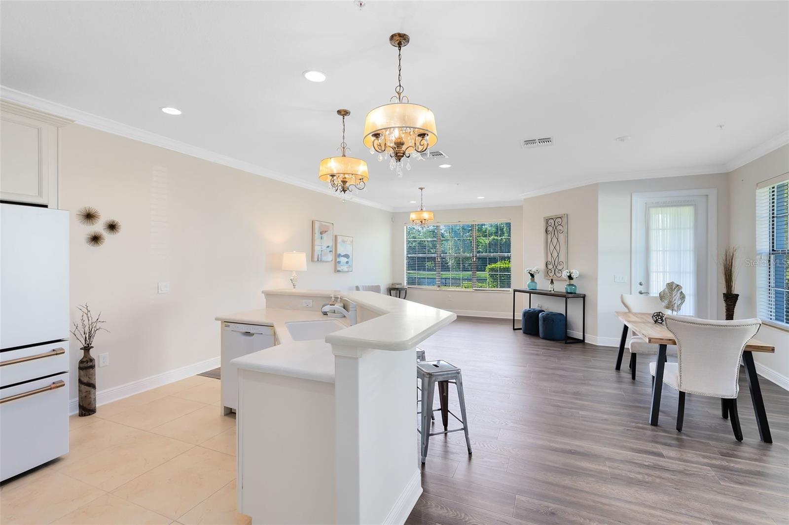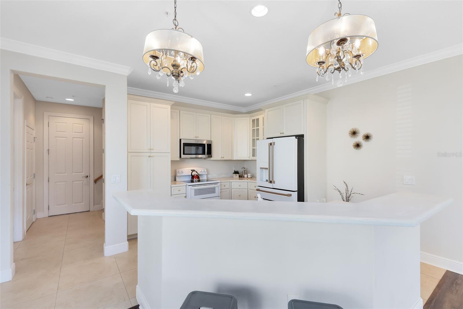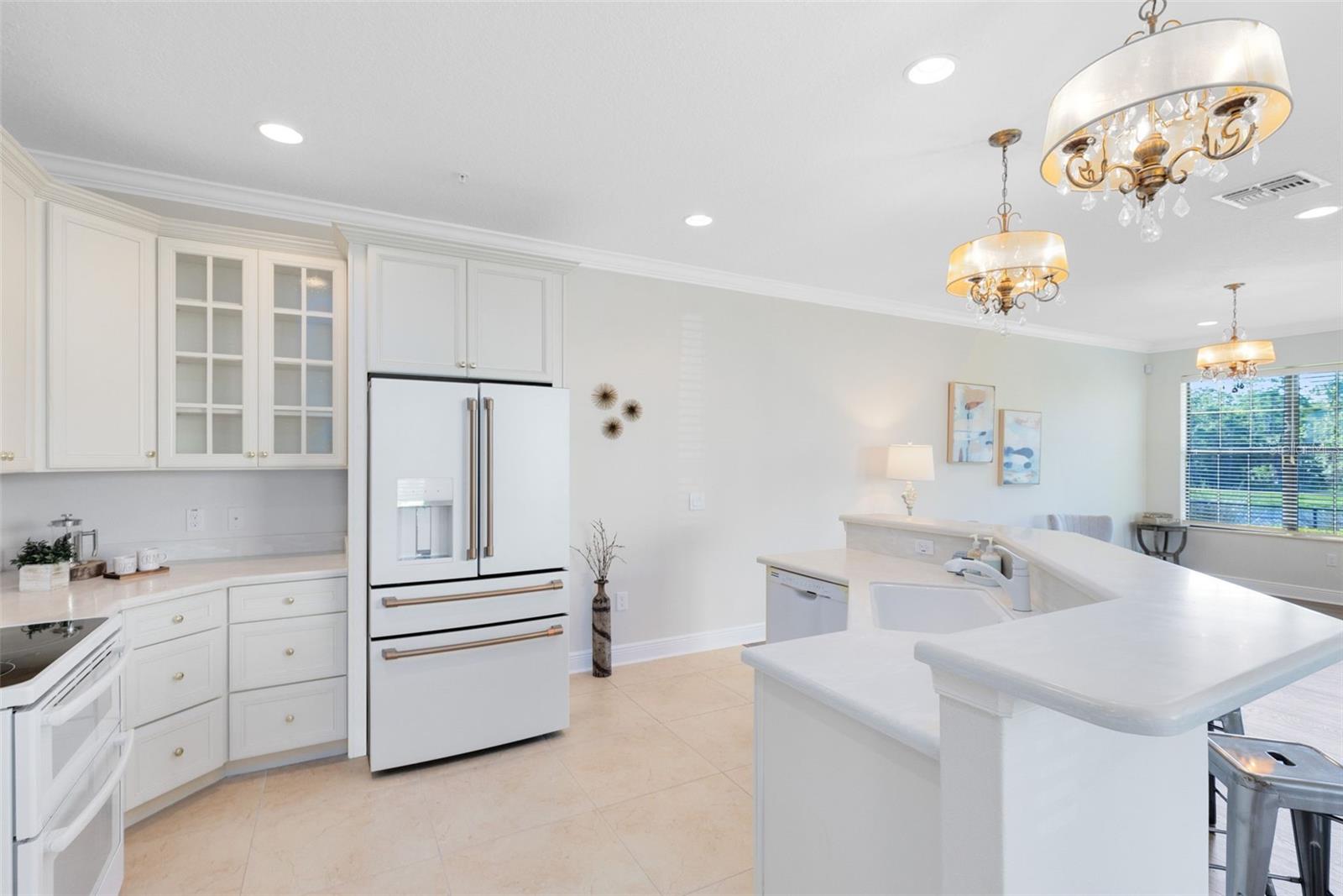 One or more photo(s) has been virtually staged. Seller is extremely motivated! This is a historically, low price for a three bedroom end unit with a spectacular view in this neighborhood! Rest easy with extremely low maintenance due to the HOA covering every blade of grass, every tree, every shrub and every inch of your exterior including exterior insurance. The gated community features private roads, a dog park views of the golf course and tennis course of the Tuscawilla Country Club which offers very low membership rates This beautifully designed and updated zero maintenance end unit townhouse is elevator ready and boasts many upgrades and beautiful golf and water views. Hoa fees are all inclusive covering exterior insurance, roof repairs and replacement, exterior building maintenance, yard maintenance and all landscaping, interior and exterior pest control, grounds sprinklers, private community road, fire sprinklers, private dog park, gated entrance and wall maintenance, street lighting and the retaining walls on the conservation areas. This exclusive luxury townhouse community offers a gated entrance, pristine landscaping and building maintenance plus a direct golf cart path to the Tuscawilla Country Club with a variety of membership plans available. Just walk over to the club to experience gourmet dining, exercise facility, Jr Olympic pool, clay tennis courts and a Championship Golf Course spanning 6,851 yards, winding peacefully through some of the most pristine land in the state. Breath a sigh of relief upon entering this immaculate residence with three bedrooms and 2 1/2 bath. The wide carpeted stairwell is easy to navigate and has rails on both sides. Downstairs, the entertaining and living area with easy care LVT flooring is light and bright with a beautifully appointed kitchen featuring upscale cabinets, quartz countertops and new appliances. Sit on the screened back porch and watch the water birds in the pond with fountain and the backdrop of the pristine golf course. A 2 spacious car garage and additional under stair storage plus the two elevator ready interior closets allow you a great opportunity to scale down without having to get rid of your treasures. Your homeowner insurance bill will be drastically lower since you will only need an HO6 insurance policy that is common in condominiums. Just lock your door and feel free to travel with this turnkey living opportunity or just enjoy a daily vacation right in your own home! By the way, the smaller unit next door at 1561 is also for sale and has an elevator.