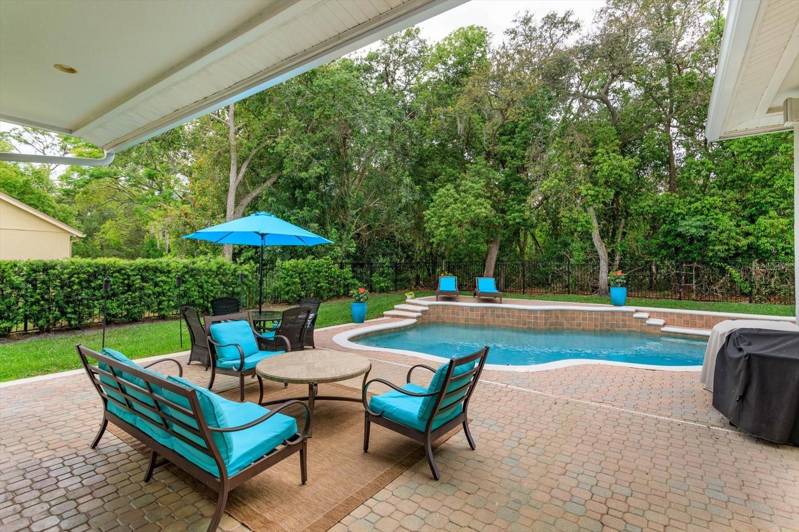 CONTINGENT CONTRACT - SUBMIT YOUR BACKUP OFFER TODAY! Luxury Living in the Heart of Seville Chase in Winter Springs. Welcome to a home where timeless elegance meets modern sophistication — a stunningly updated, single-story pool retreat nestled within the exclusive gated community of Seville Chase. Tucked away in one of Seminole County’s most coveted communities, this exquisite residence offers not just a place to live — but a beautiful way to live. Thoughtfully designed across a spacious, flowing floor plan, this 4-bedroom, 3-bath home with a dedicated office and oversized 3-car side-entry garage invites you to experience effortless comfort and style in every detail. Step inside and immediately feel embraced by the warm, contemporary finishes — from brand-new designer lighting to sleek new flooring and a fresh color palette that graces every room, both inside and out. At the heart of the home, the gourmet chef’s kitchen is a true showpiece. Adorned with striking Bianca Carrara quartz countertops, custom cabinetry, stainless steel appliances, and an elegant wine cooler, this space effortlessly blends beauty with function. A generous center island and breakfast bar invite gatherings, while expansive sightlines lead your eye to the sparkling pool just beyond — connecting every moment of cooking, dining, and entertaining to the lush outdoor surroundings. The kitchen flows seamlessly into the inviting family room, anchored by a stunning tiled wood-burning fireplace — a perfect focal point for cozy evenings or lively celebrations. Your private master suite retreat is a sanctuary unto itself, featuring a serene sitting area and private access to the poolside oasis. The newly reimagined spa-inspired bath pampers you with dual quartz vanities, a luxurious glass shower, and a spacious custom walk-in closet designed to elevate daily living. Equally refined, the guest baths and pool bath mirror the home’s elevated aesthetic with quartz counters, designer fixtures, and modern finishes. Even the laundry room has been thoughtfully enhanced. Step outside and immerse yourself in your very own backyard paradise. The shimmering waterfall pool invites relaxation under the Florida sun, while a custom retractable awning with built-in lighting transforms the space into an enchanting setting for evening gatherings. With pavered patios, abundant seating areas, a newer pool pump, and upgraded electrical ready for a hot tub — every detail is in place for unforgettable outdoor living. Located within minutes of top-rated Seminole County schools, premier shopping, dining, and recreation, this home offers the perfect balance of privacy, luxury, and convenience. Turn the key, step inside, and fall in love — this is more than just a home… it’s the lifestyle you’ve been dreaming of.