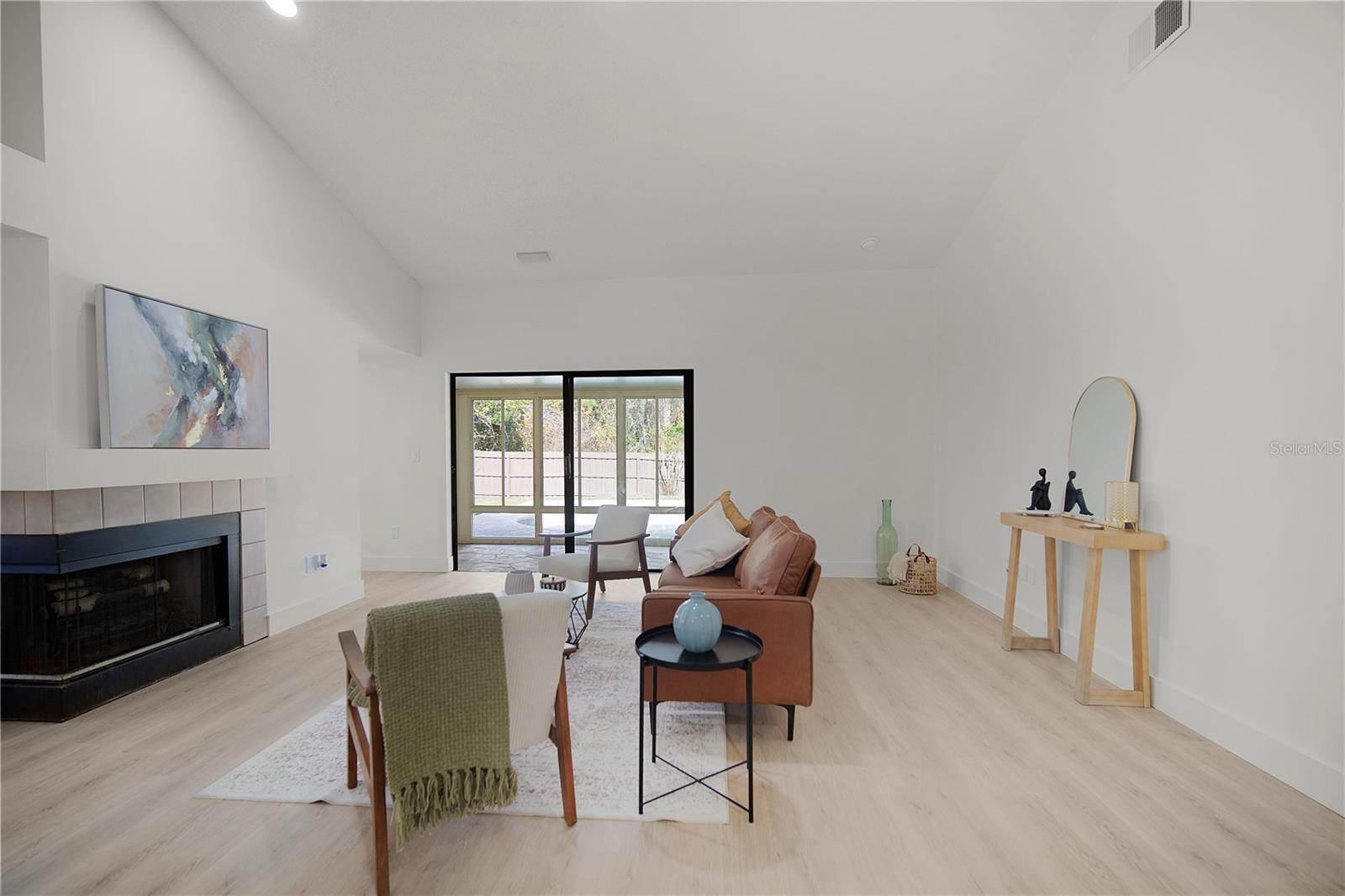 One-story single-family pool home located in Winter Springs offering approximately 1,774 sq ft of living area. This 4-bedroom, 2-bathroom residence features a 2-car garage and an open, light-filled layout with vaulted ceilings. Recent improvements include a new roof installed in 2024, an approximately 8-year-old AC system that has been regularly maintained, and a newer water heater. The home offers an updated kitchen with quartz countertops, modern cabinetry, and stainless steel appliances, updated flooring throughout, and fully renovated bathrooms with contemporary finishes. Numerous additional upgrades throughout the home enhance comfort and overall presentation. Spacious living areas include a formal living room and formal dining room connected by a centrally located fireplace, creating a warm and functional layout ideal for both everyday living and entertaining. Sliding glass doors lead to a private backyard with pool, providing an inviting outdoor space. Situated on a generous lot in an established neighborhood with convenient access to shopping, dining, and major roadways. Located approximately 15 minutes from UCF and Valencia College, 30 minutes from Downtown Orlando, and about 45 minutes from major Central Florida theme parks and area beaches. Winter Springs is known for its highly rated Seminole County schools, natural springs, parks, and trail systems.