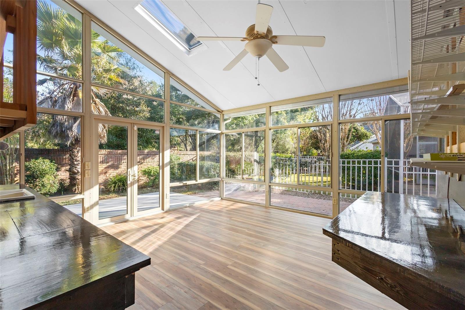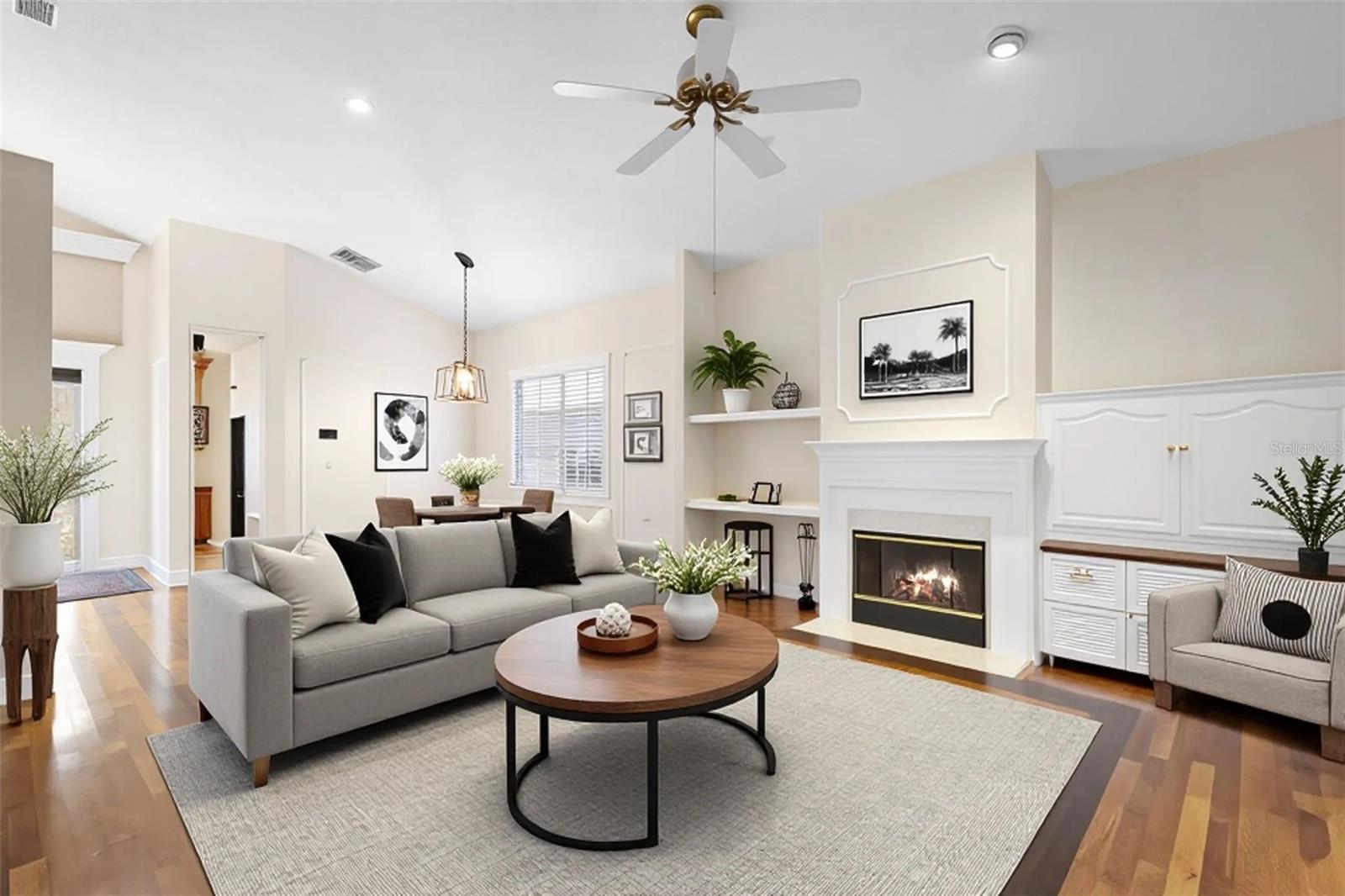 One or more photo(s) has been virtually staged. Welcome home to Bentley Green! Set within the desirable Bentley Green neighborhood of Tuscawilla, this beautifully maintained three-bedroom, two-bath home offers a blend of space, comfort, and thoughtful updates. A gracious main living area welcomes you with a formal dining space that flows seamlessly into the living room, anchored by a wood-burning fireplace—ideal for both everyday living and entertaining. The kitchen is both functional and inviting, featuring a center island, eat-in area, and a full suite of appliances, including the washer and dryer. The home’s split-bedroom floor plan places the two secondary bedrooms and a full bath at the front of the home, while the private primary suite is tucked away at the rear, offering a spacious retreat with a soaking tub, separate shower, dual vanities, walk-in closet, and generous bedroom space. A substantial addition expands the home’s versatility, providing a bonus family room with sink and refrigerator—perfect for entertaining along with a light-filled Florida room that easily adapts to your lifestyle, whether as a home gym, craft room, or quiet escape. The Florida room has been updated to make it a blank canvas for whatever suits your lifestyle best! Peace of mind comes from the major updates already completed, including a new roof (2018), replumbing (December 2025), and HVAC (2022). Paid-for solar, including a solar hot water heater and a system producing approximately 17,000 watts, along with a whole-house water softener, adds both efficiency and long-term value. Bentley Green offers a truly low-maintenance lifestyle, with lawn care included in the HOA, allowing you more time to enjoy nearby amenities such as Tuscawilla Country Club, the Cross Seminole Trail, and local parks. This is a home where comfort meets convenience in a highly sought-after location. Schedule your private showing today and experience firsthand what makes this Bentley Green home so special.