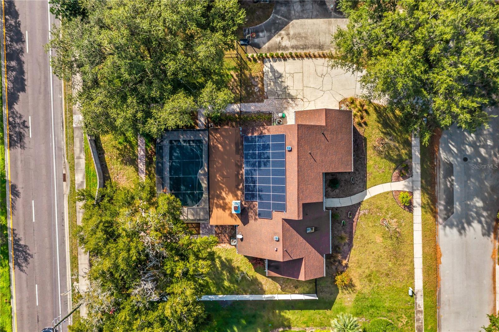This beautifully updated home blends timeless character with modern comfort, offering an inviting layout designed for both everyday living and entertaining. The light-filled interior showcases a stunning, renovated kitchen with new quartz extended countertops, a butcher block island, recessed lighting, and a full suite of high-end appliances including a JennAir refrigerator, KitchenAid pull-out refrigerator and freezer with ice maker, double oven and stovetop, wine and beverage cooler, and dishwasher. Major system upgrades add peace of mind and efficiency, featuring a newer roof installed in 2021, a fully paid off 11.745 kW (DC) solar system paired with a Tesla Powerwall 2.1 (7 kW DC battery capacity), whole-home water filtration and softener, high-efficiency heat pump water heater, new double-paned windows, Nest thermostats for upstairs and downstairs climate control, upgraded outlets with USB and modern switches, and new blinds throughout. The spacious primary bathroom has been fully remodeled with glass shower doors, new quartz countertops, and a farmhouse sink. Outside, enjoy exceptional curb appeal and a private backyard retreat with a screened-in pool, expansive paver patio, new extended paver walkway wrapping around the backyard, upgraded irrigation and sprinkler system, new gutters, and recently serviced chimney. The property is framed by mature, recently trimmed water and live oaks, enhancing both beauty and shade, while added features such as a new front door with wide extended entry, exterior Ring cameras and floodlights complete this truly move-in-ready home designed for a seamless indoor-outdoor Florida lifestyle.