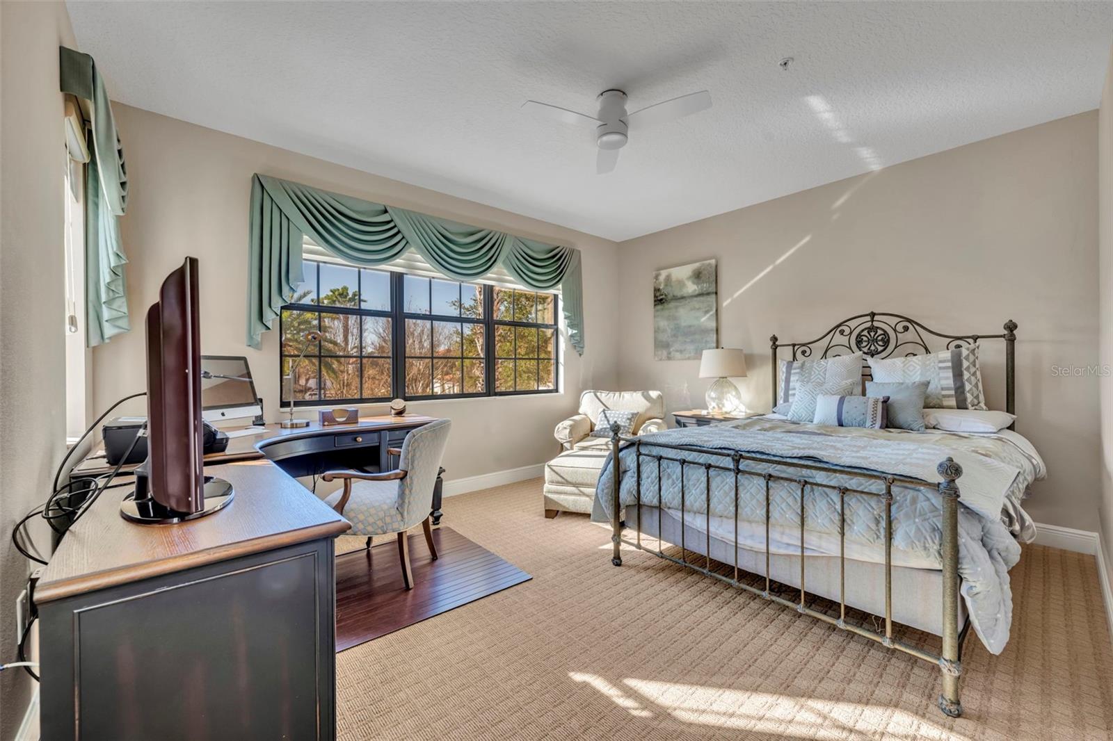 Pristine GATED Luxury Townhome next to the Tuscawilla Country Club at THE GREENS AT TUSCAWILLA! Bring your golf clubs and ride your cart right onto the golf course. Nestled in Beautiful Surroundings, Very Private and Very Quiet, This Fabulous 2 Bedroom 2.5 Bath Townhome includes an ELEVATOR to make your life easier. Barely Lived-In and Move-In Ready, it's Tastefully Decorated with neutral colors and Fully Furnished with high-end furniture which is also Available for Negotiation. High Ceilings and 8' Doors on both floors. Plenty of Natural Light. You will love the Pecan Flooring throughout the First Floor. Kitchen features 42" Cabinets, Granite Counters, Pendant Lights, Double Pantries and Plenty of Counter Space for Cooking and Entertaining. Crown Molding throughout the First Floor Living Areas in Addition to the Primary Bedroom enhance the quality construction of this home. Generous sized rooms. Oversized Primary Ensuite is a Retreat that features a large Walk-in-Closet and Large Bath with Walk-In Shower, Double Sinks and separate Tub. Bedroom 2 is also a Large Ensuite with Private Bathroom and Double Closets. Hallway features a Wrought Railing. Screened Patio overlooks lovely Garden Area. New A/C in 2022. Just bring your clothing and toothbrush.