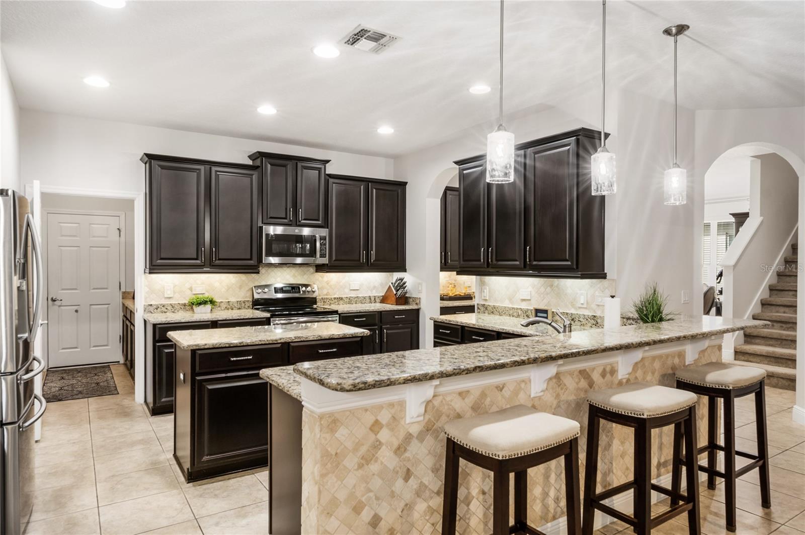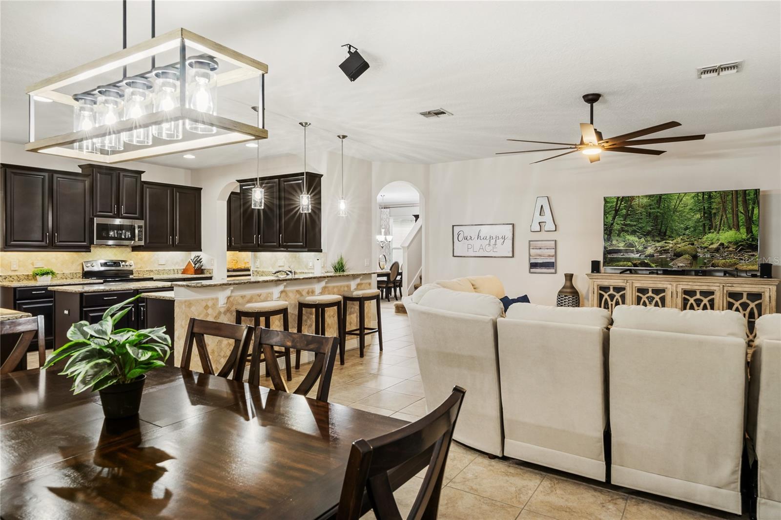 Welcome to 648 Fanning Drive in Winter Springs, a beautifully maintained and thoughtfully upgraded 5 bedroom, 4 bathroom home offering 3,718 square feet of living space with a highly functional layout designed for today’s lifestyle. Built in 2012 and ideal for multi generational living, this home features a desirable triple split floor plan that allows owners, family members, and guests to each enjoy their own private living areas. A 3 car garage, private home office with double doors, and a spacious bonus room provide exceptional flexibility for work, play, and extended family needs. Recent major updates provide peace of mind, including a brand new roof (2025), a new HVAC system with dehumidifier (2024), a new microwave (2025), and a new dryer (2023). Interior finishes include wood look tile in the primary bedroom, luxury plank vinyl flooring in two guest bedrooms and office, and custom luxury closet built ins in the primary suite and bedrooms two and three. Ceiling fans are installed in all bedrooms, and the home is prewired for surround sound in the family room, bonus room, and rear patio, with speakers already in place in the family room. The open island kitchen serves as the heart of the home and features 42 inch espresso cabinets, granite countertops, a tumbled marble backsplash, stainless steel appliances, under cabinet lighting, a walk in pantry, and a butler pantry with additional storage, making it ideal for both entertaining and daily living. The laundry room includes a utility sink and convenient drop zone, with washer and dryer included. One of the most loved aspects of this home is the lifestyle it offers. Enjoy tranquil pond views from the front porch and lush tree lined privacy from the screened rear patio, creating a peaceful and scenic setting both morning and evening. Living next to the Seminole Trail is a true highlight, offering easy access for walking, biking, and connecting with friendly neighbors. The neighborhood is peaceful, welcoming, and beautifully maintained. The community pool is just a short walk away and is well maintained, offering a perfect spot to relax and enjoy Florida living. Convenience is unmatched with everyday essentials located approximately one mile away, including Publix, Crunch Fitness, Starbucks, UPS Store, Foxtail Coffee, Jersey Mike’s, and Huey Magoo’s, with Chick fil A and Wawa coming soon. Additional exterior and features include a pavers on the driveway and screened rear patio, gutters, double pane tinted windows, a security system, termite bond, and in wall pest control system. Low HOA dues include access to the community pool and common areas. This move in ready home delivers space, privacy, thoughtful upgrades, scenic views, and an exceptional location in one of Winter Springs’ most desirable communities. Hurry, come see!