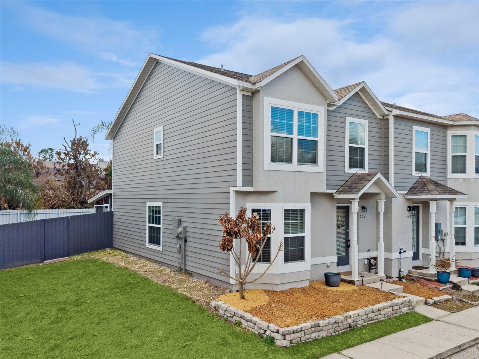 Welcome to 552 Shadow Glenn Pl, a beautifully maintained 2-bedroom, 2.5-bath END UNIT townhome offering 1,359 sq ft of comfortable living space in the highly sought-after Deer Run community of Winter Springs. RECENTLY UPDATED WINDOWS AND SIDING! Built in 1991, this residence combines practicality with thoughtful updates and a layout ideal for modern living. Step inside to discover an open and inviting floor plan featuring a spacious living and dining room combo on the first floor, perfect for entertaining or everyday life. The well-appointed kitchen includes ample cabinetry, a cozy eat-in nook, and convenient in-home laundry. Natural light streams through large windows and French doors, enhancing the bright and airy feel throughout. Upstairs, you will find two generous bedrooms with double closets and ceiling fans. The primary bedroom features a private en suite bathroom, while the second bedroom is conveniently located near an additional full bath. Outdoors is an enclosed, screened-in patio and fully fenced backyard, ideal for relaxing, BBQs, or playtime. The community offers easy access to Red Bug Lake Rd, SR-434, SR-417, and nearby parks, shopping, dining, and top-rated Seminole County schools. Whether you are a first-time buyer, investor, or looking to downsize, this delightful townhome presents exceptional value in a prime Winter Springs location. ROOF 2018 - REPLUMBED 2019 - WATER HEATER 2022
