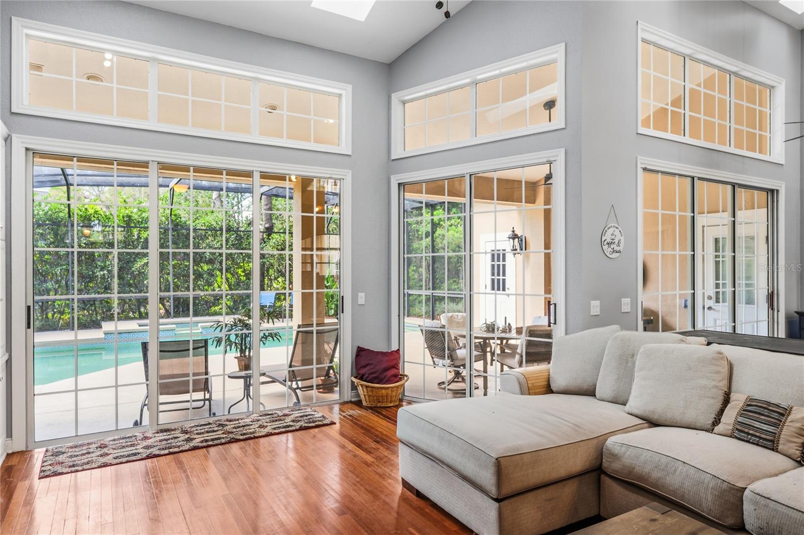 Set on a prominent corner lot in Glen Eagle, this spacious pool home makes an immediate impression with standout curb appeal, mature oak trees, lush landscaping, and a winding front walkway leading to a natural slate entry. Located in the sought-after Tuscawilla golf community, the home offers a rare blend of presence, warmth, and flexibility in one of the area’s most desirable settings. Inside, soaring cathedral ceilings, Brazilian cherry hardwood floors, skylights, and custom built-ins create a bright, open great room that feels both inviting and impressive. The open-concept layout flows easily for everyday living and entertaining, while the chef’s kitchen is designed to impress with 42-inch cabinetry, granite countertops, a breakfast bar, a 36-inch GE Profile induction cooktop, GE Profile double ovens, microwave, and dishwasher, and a custom built-in Liebherr stainless French-door refrigerator with dual bottom freezer drawers. Just off the foyer, the office is framed by gorgeous vintage beveled glass doors, while the formal dining room with tray ceilings offers an elegant setting for hosting. The bedroom wings feature crown molding, high ceilings, and concrete flooring for a clean, modern feel. Privately tucked away, the primary suite is filled with natural light and opens directly to the pool and patio through French doors. The en suite bath features dual sinks, separate his-and-her walk-in closets, a soaking tub, and a walk-in shower. The split floor plan continues on the opposite side of the home, where three additional bedrooms are positioned off the great room. One includes a private bath, another offers direct access to the pool and patio, and the hall bath is finished with custom mosaic tile flooring. One of the home’s most compelling features is the incredible upstairs retreat. Beautifully updated with hardwood floors, this expansive level offers a massive bonus space, an additional full bath, and an oversized bedroom that creates exceptional flexibility for the way buyers live today. Whether used for multigenerational living, a private guest retreat, potential mother-in-law suite, game room, media lounge, home gym, yoga studio, or separate family living area, the scale and versatility of this space truly set the home apart. Outdoor living is just as appealing, with a screened pool and patio designed for entertaining, relaxing, and making the most of Florida living. The side and backyard offer mature shade, privacy, and a fire pit area that adds even more charm and usability. Perfectly positioned in sought-after Tuscawilla, 702 Golfpoint Drive offers the best of established Winter Springs living with convenient access to SR 417, connecting you to Downtown Orlando, Orlando International Airport, Universal, Disney, and beyond. Zoned for top-rated Seminole County schools and just moments from the Tuscawilla Country Club, nearby parks, local dining, fitness options, and the Cross Seminole Trail, this location makes it easy to enjoy everything from weekend bike rides and morning runs to shopping, restaurants, and everyday convenience. Recent improvements include a new roof in 2021, all-new kitchen appliances in 2021, two new HVAC systems in 2022, a new pool pump and spa/pool heater in 2023, new upstairs hardwood floors in 2024, and a refinished pool deck in 2024.