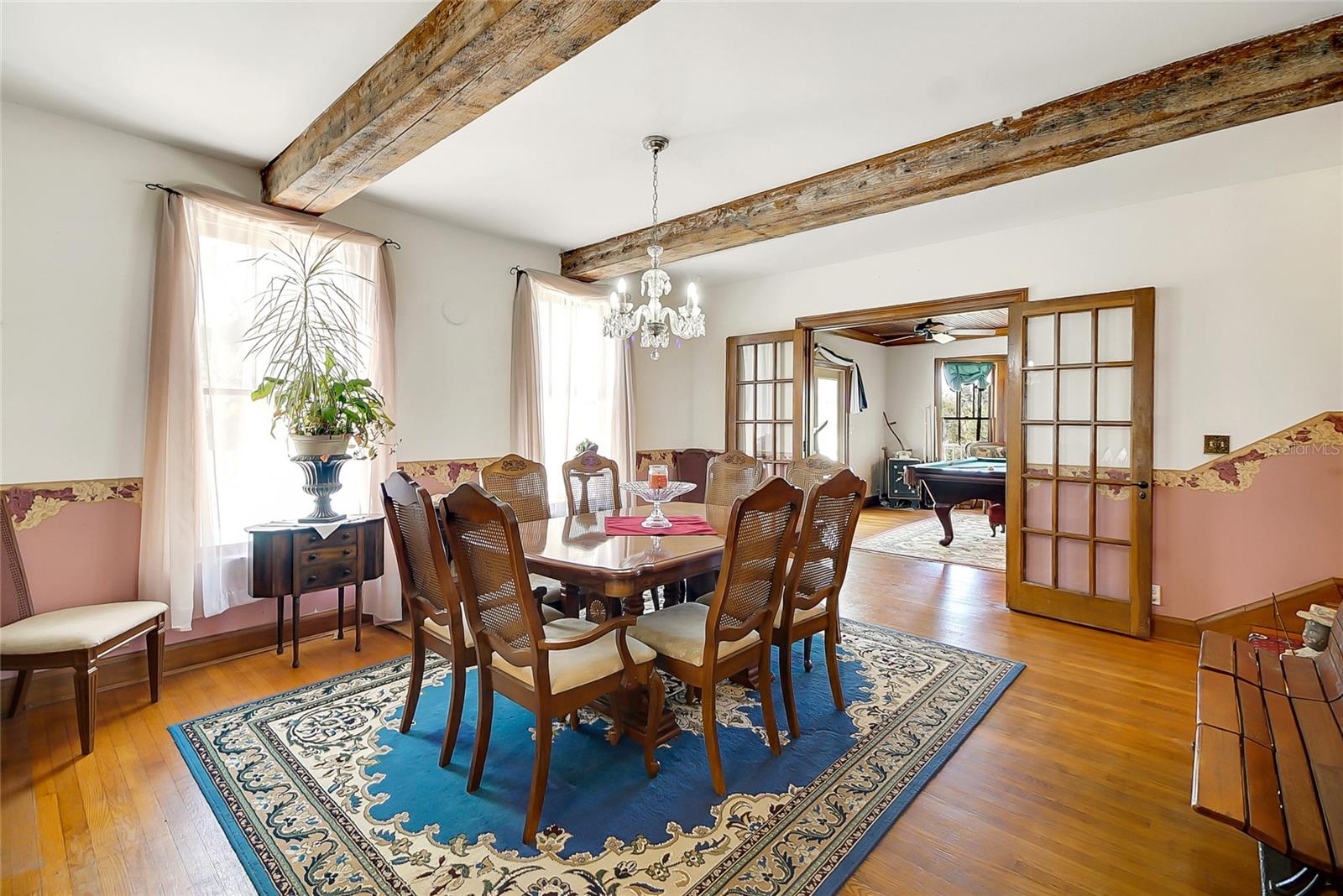 An extraordinary opportunity awaits in the highly desirable area of Yalaha, just minutes from Howey-in-the-Hills, Mount Dora, and South Leesburg. This beautiful 6.44 acre property offers a variety of incredible features including a sparkling pool, small guest house, tractor barn, and a pole barn. This stunning two-story pool home is a true showpiece, boasting 3,556 square feet of heated living space with five spacious bedrooms, three full baths, and one half bath. A new metal roof was added in 2019, enhancing both durability and curb appeal. Inside, the home is filled with charm and character, from its beautiful wood floors and crown molding to the wood windows and exposed beams that accent the living room, dining room, and the downstairs primary bedroom. Upstairs, a cozy loft area provides a charming retreat, while a second primary suite adds to the home’s versatility. The remodeled eat-in kitchen offers ample storage space with an island, and the oversized indoor laundry room provides plenty of space for additional storage, a second refrigerator, or a freezer. Step onto the rooftop deck and take in the breathtaking views of Lake Harris. With so much to offer in such a sought-after location, this is an opportunity that won’t last long. Please call to get the personalized videos and 3D Matterport of the property. Schedule your showing today!