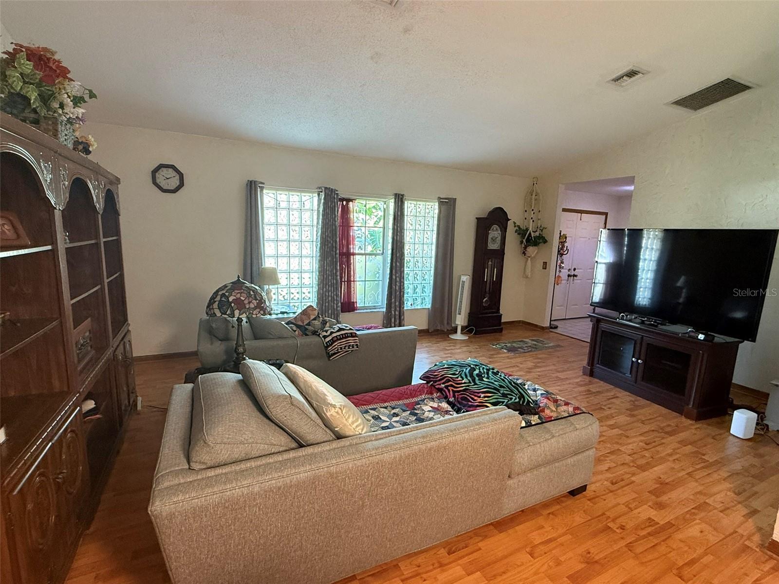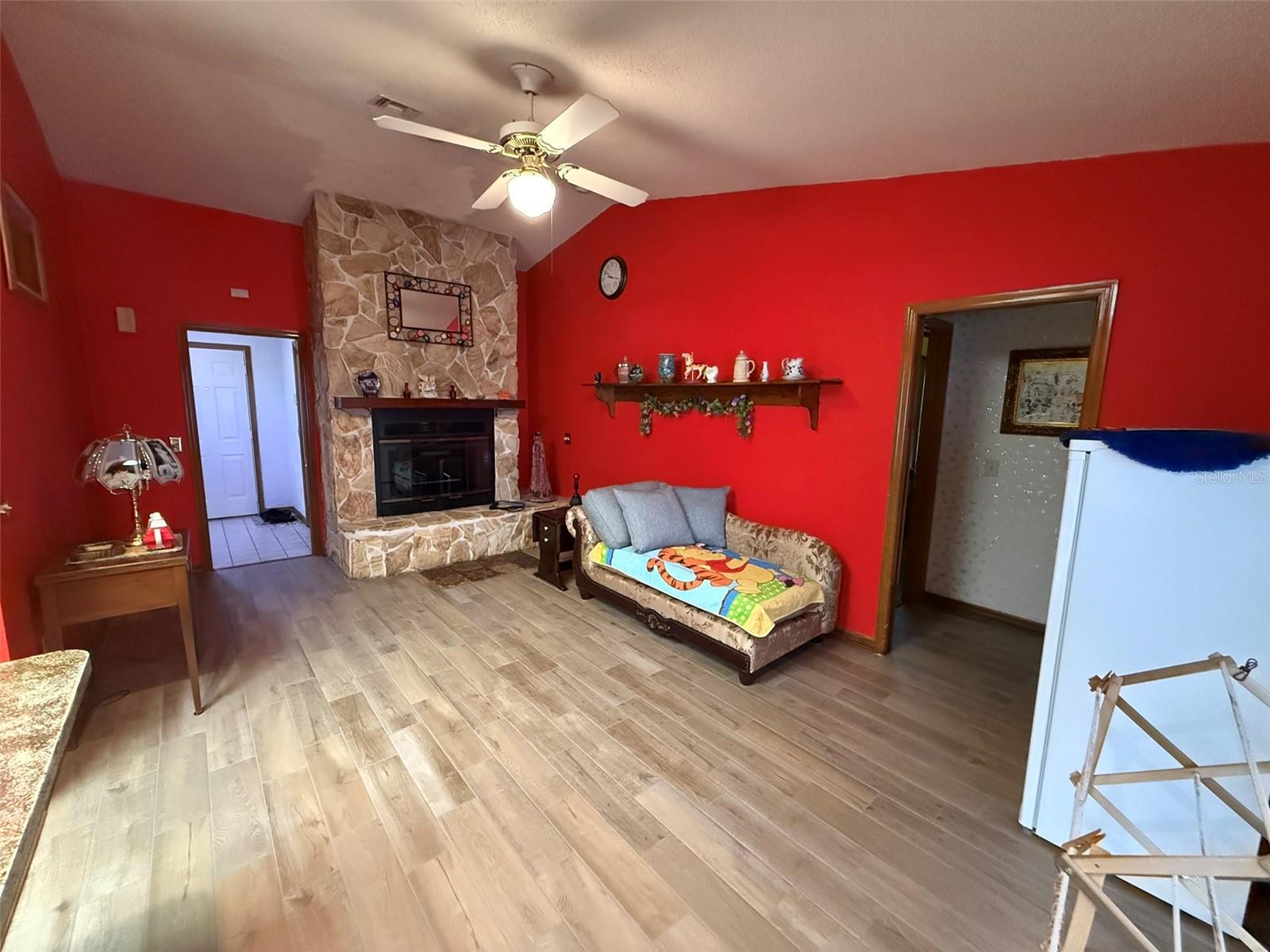 Large PRICE IMPROVEMENT! Sellers are motivated to sell. Nestled in a serene community with access to a spring-fed swimming pool, clubhouse, and a private boat dock, this beautifully maintained 3-bedroom, 2-bathroom home is a perfect blend of comfort and convenience. The spacious en-suite master bedroom boasts his and hers walk-in closets, offering ample storage and a private retreat. Designed for both relaxation and entertainment, the home features a separate living room and family room, complemented by a cozy built-in electric fireplace for added ambiance. Step outside and enjoy the expansive screened-in back porch, complete with a convenient pass-through window from the kitchen, making outdoor dining and entertaining effortless. A screened-in front porch entry adds to the home’s charm and welcoming curb appeal, while the well-maintained landscaping enhances the property’s beauty. Recent upgrades ensure peace of mind, with all windows replaced in 2023, and within the past five years, a new roof, HVAC system, garage door, and hot water heater. The home is equipped with a septic tank and spring-fed water supply, offering efficiency and sustainability. Enjoy the perks of this vibrant community while retreating to your own private oasis. Whether you're looking for a peaceful escape or a home to entertain, this property offers it all!