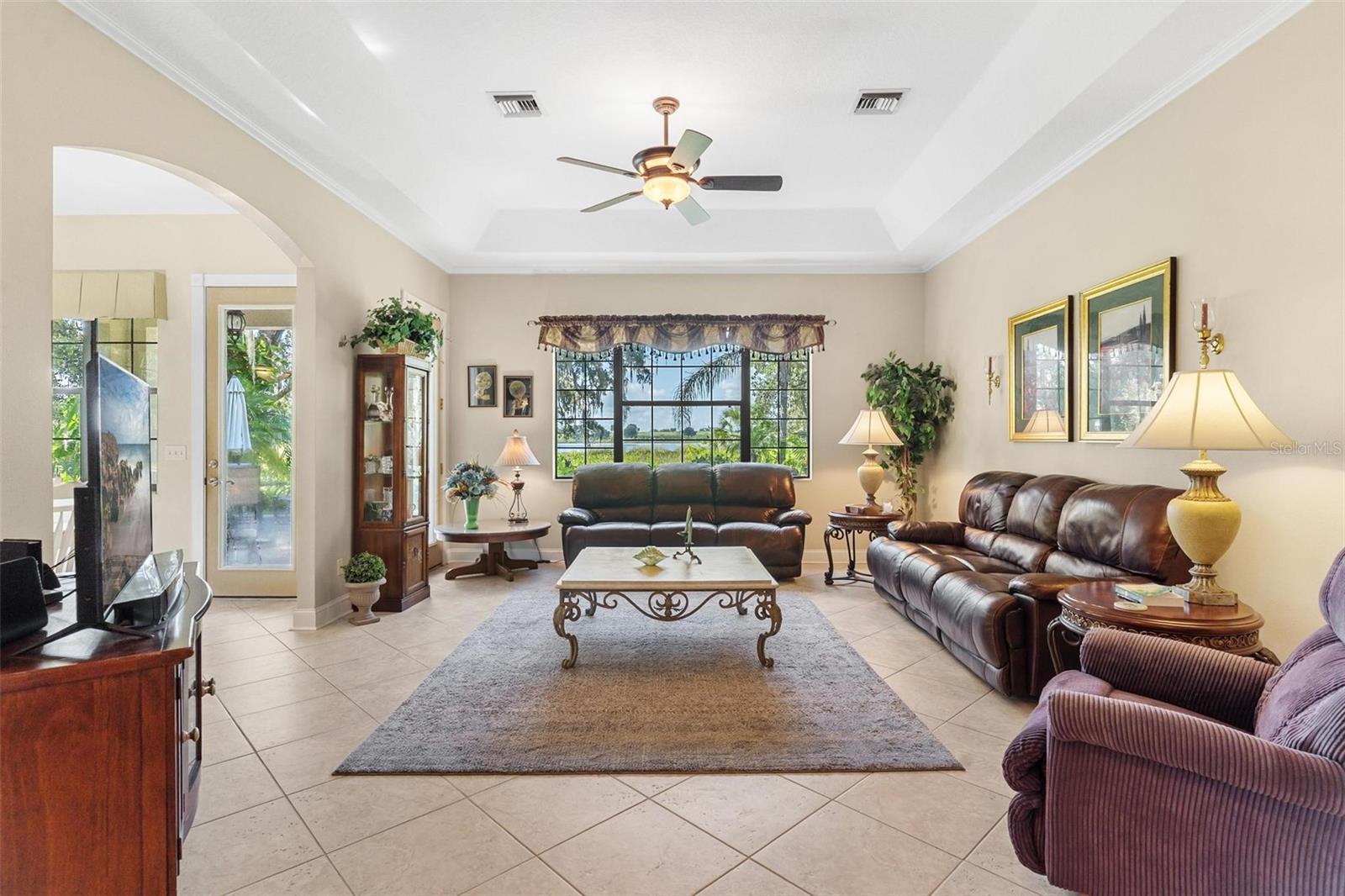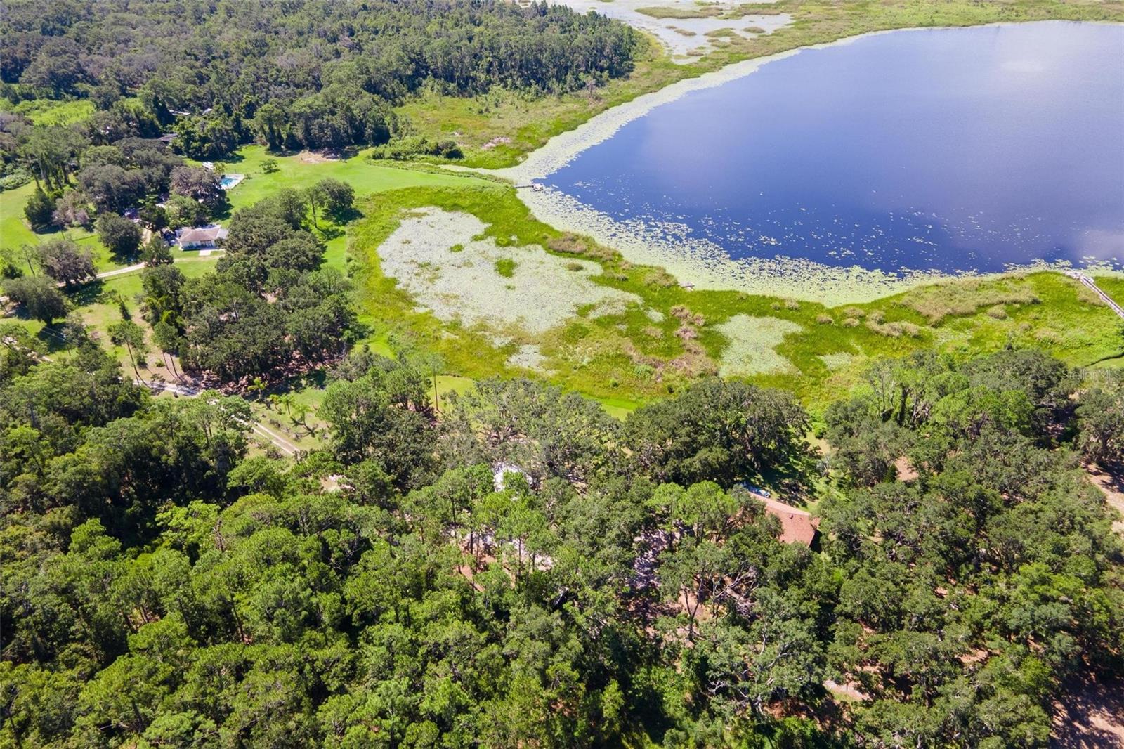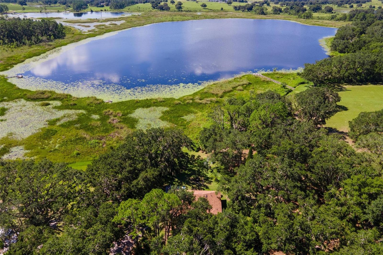 Private Waterfront Retreat! Imagine being tucked away on ten beautiful acres where you can really experience peaceful Florida living...waterfront and all... This beautifully designed 3-bedroom, 2.5-bath home captures all of this and more! You will enjoy more than 600 feet of lake frontage on spring-fed Sapp Pond. From sunrise to sunset, this property offers endless views, wildlife, and relaxation. Step inside and you’ll find an inviting layout with an airy open concept, highlighted by 10-foot ceilings, 8-foot doors, and elegant finishes throughout. The kitchen is complete with travertine counters, custom 60-inch cabinetry, and upgraded stainless appliances, all flowing seamlessly into spacious dining and living areas...all offering those peaceful views. The owner’s suite feels like its own retreat, offering generous closet space and a spa-like bath with dual vanities and a walk-in shower. Two additional bedrooms share a convenient Jack-and-Jill design, giving every room the comfort of an ensuite. Outdoors, the property is equally impressive. A spacious open patio sets the perfect spot for entertaining, while the lakefront dock and deck provide the perfect spot to watch the sunset. Majestic oak trees, thoughtful landscaping, and room for a garden make the land both functional and picturesque. For hobbyists or those needing extra storage, the 28' x 35' workshop is a standout feature—equipped with 220 power and an RV septic hook-up, it’s ideal for boats, RVs, or large projects. Bring your ideas and dreams! With no HOA restrictions and plenty of seclusion, this property is more than a home—it’s a lifestyle.