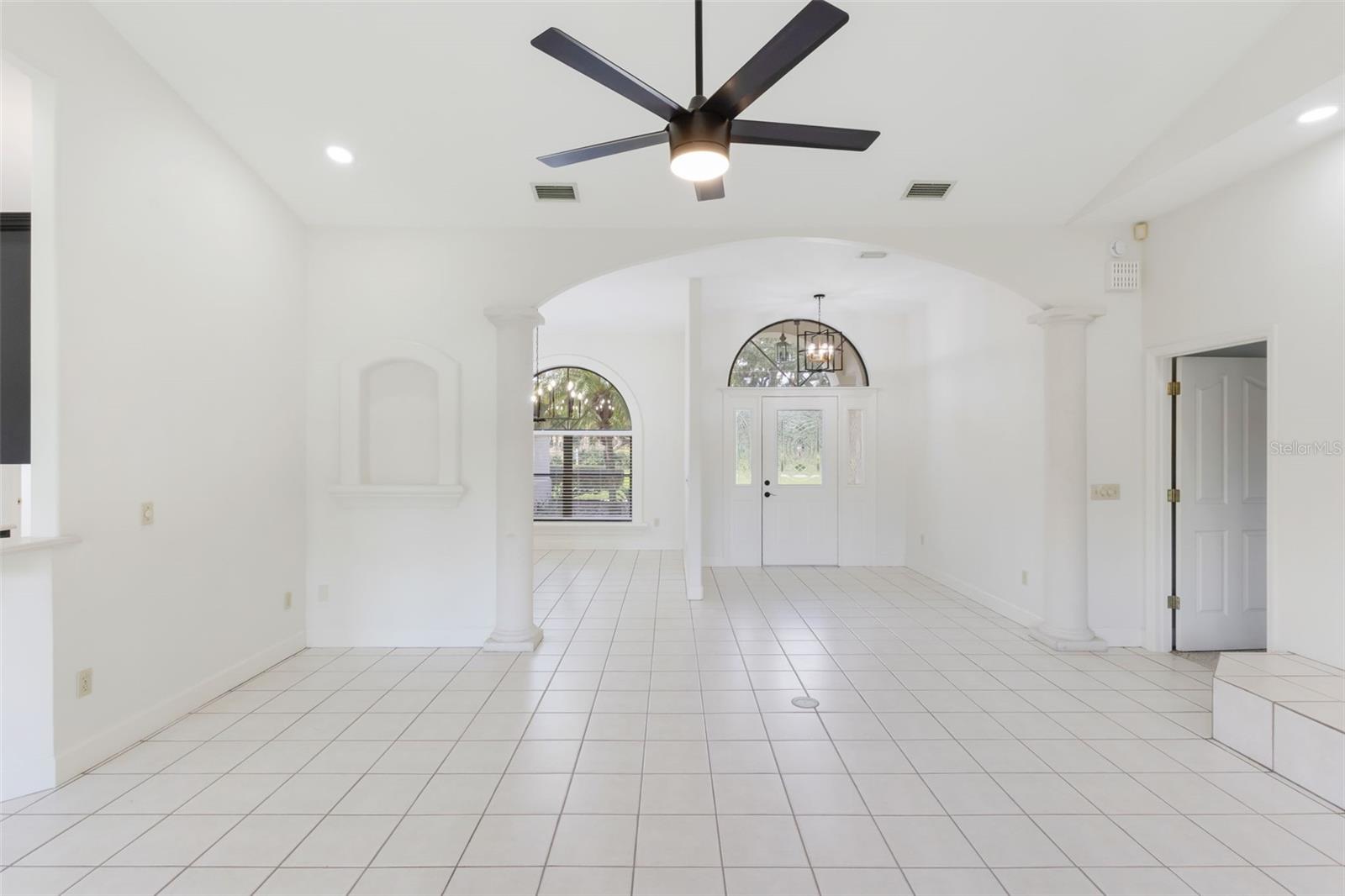 Welcome Home - to this CUSTOM BUILT and beautifully updated home with NO HOA! This 4-bedroom, 2-bath home sits on OVER a half-acre of land offering privacy, space, and a highly desirable split-bedroom floor plan. Step inside to a huge family room featuring a charming fireplace, perfect for gatherings. The eat-in kitchen provides plenty of room for everyday meals, while the separate formal dining room is ideal for hosting. The large primary suite offers comfort and LUXURY with a BEAUTIFULLY RENOVATED bathroom and an oversized walk-in closet. The home also features a versatile bonus room perfect for additional living space, a home office, or a 4th bedroom. Enjoy Florida living in the expansive, fully fenced yard, beautifully landscaped for maximum privacy. Relax or entertain year-round on the LARGE COVERED lanai overlooking the peaceful backyard. Located in a prime area close to the Mission Inn, Yalaha Bakery, the Turnpike, Lake Harris, shopping, restaurants, and entertainment. Don’t miss this opportunity—call today to schedule your private tour!