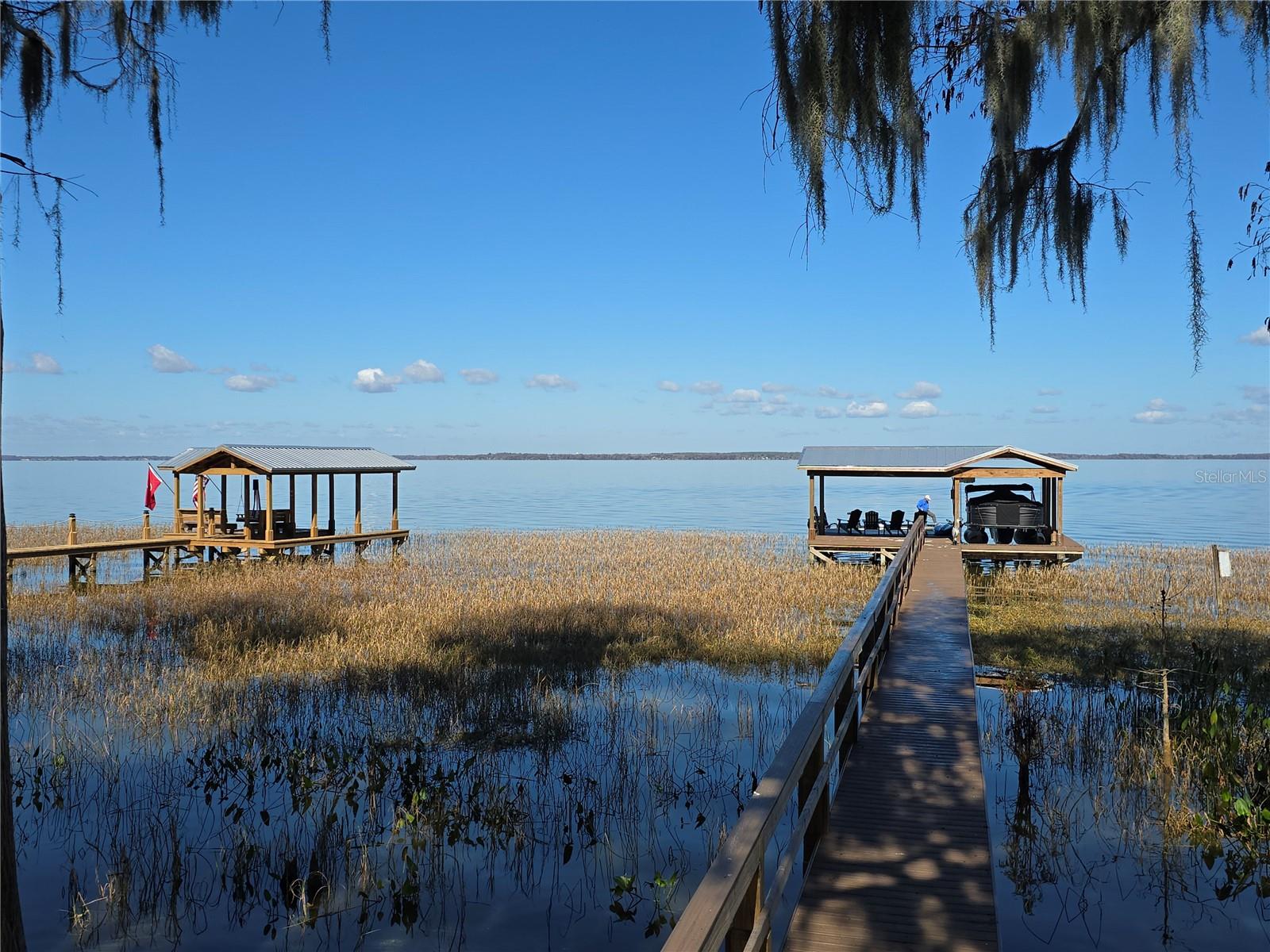 Welcome home to this beautiful estate that boasts 5 bedrooms, 3 baths, within 2414 square feet with a Pool located in Yalaha, FL, Lake County. A huge benefit to this property is that it has NO HOA. This wonderful country home sits on almost 3/4 acres of land with a separate oversized Garage (30x40) for RV, Auto, workshop or storage area. Beautiful Lake Harris is just a short walk away from this gorgeous property where you enjoy a very serene and peaceful environment. Free Public access to the lake for boating and fishing is permitted at Hickory Point Recreation facility which is approximately 4 miles away. Upon entering the property, you will arrive in the great room. This home has a split floor plan allowing privacy for the primary suite. On the left side of the home, there are 3 bedrooms with one full bathroom (remodeled 2 years ago) and on the right side of the home, there is another bedroom at the front of the home and a separate full bathroom. The kichen is located in the center of the home to the right of the dining room and it features quartz countertops, an island, Kitchen Aid applicances including One cooktop range, gourmet style built-in microwave and range combo, dishwasher and refrigerator. All applicances are stainless steel. The primary suite has its own en suite bathroom with dual vanities and a very large walk in closet which was remodeled 2 years ago. Engineered hardwood floors are layed throughout the home. In the rear of the property, you can relax in the beautiful pool surrounded by the peaceful nature of this wonderful estate. In addition, major upgrades include: Roof was replaced in 2023, AC unit was replaced in 2022, updated master bathroom, updated quartz kitichen countertops, Newer KItchenAid Stainless Steel Appliances, Water filtration system. Make this beautiful estate your home today!