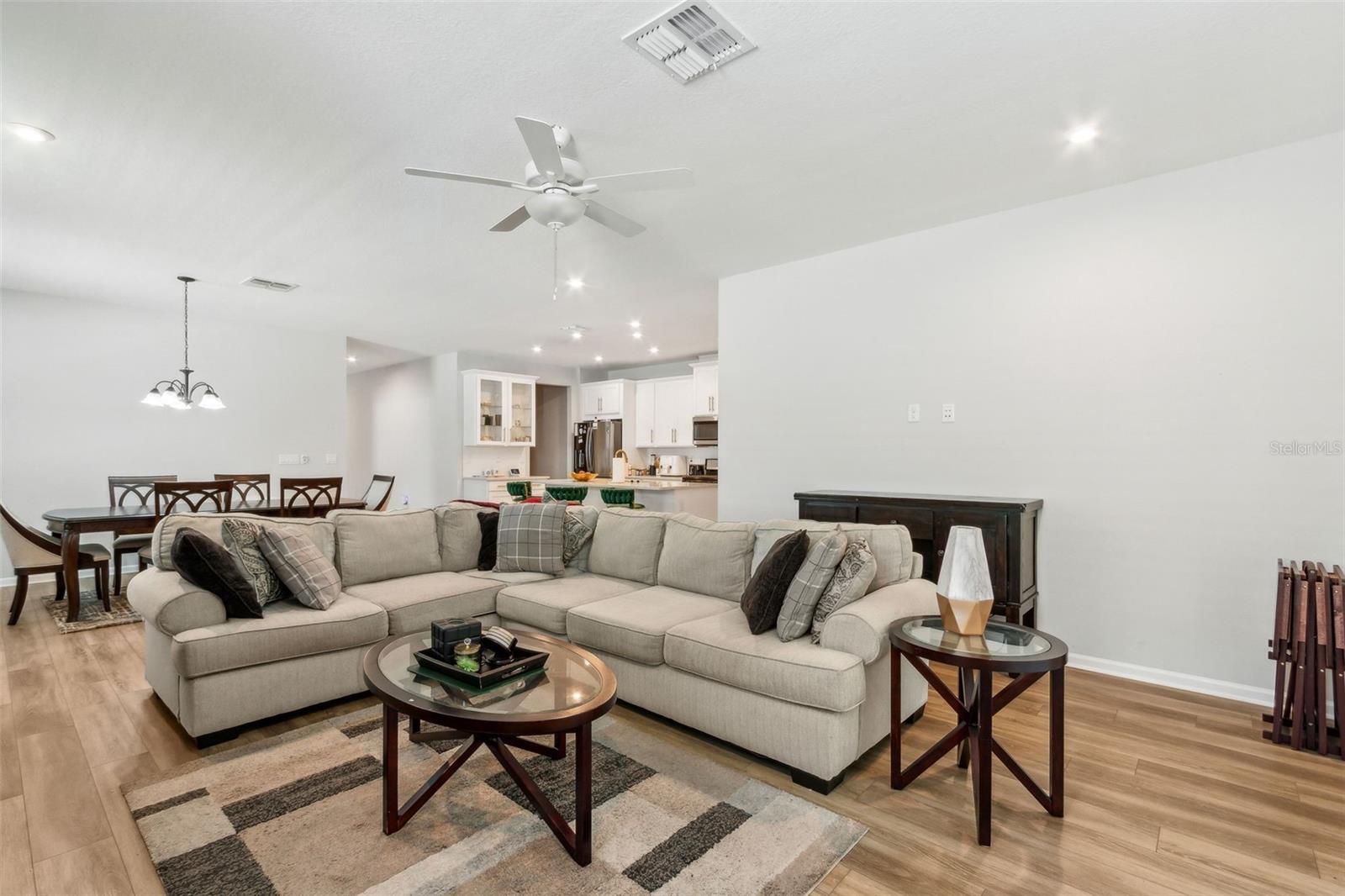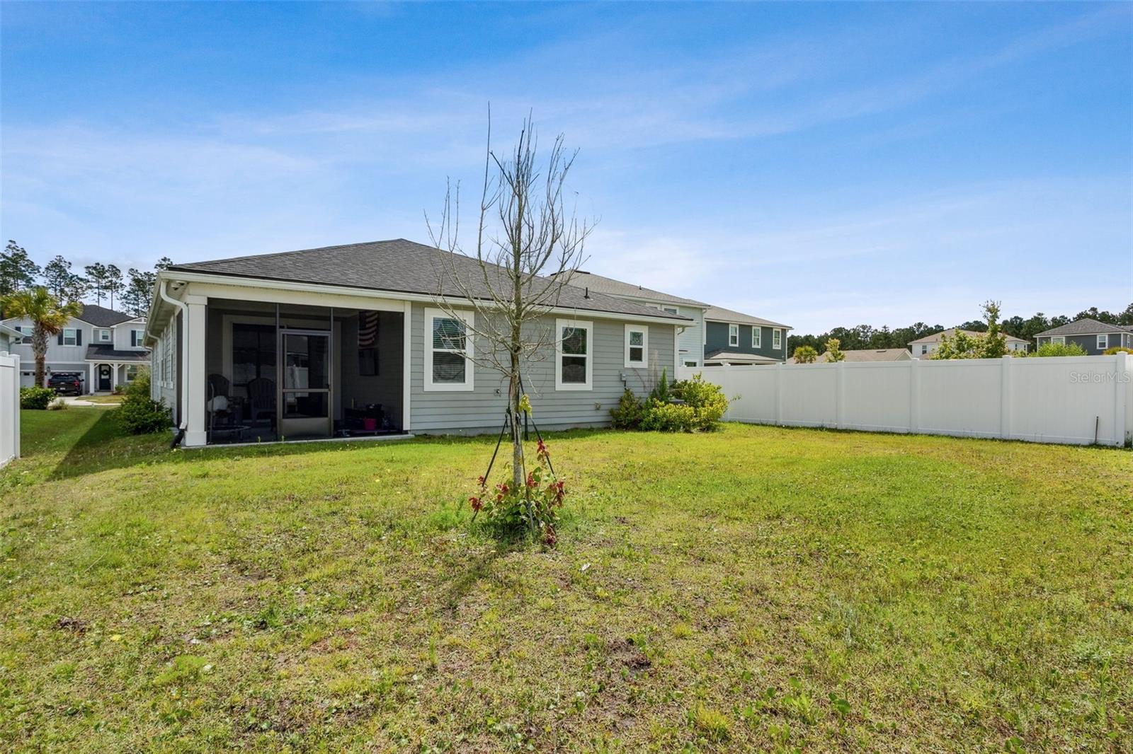 Charming home in desirable Wildlight subdivision. Welcome to this beautifully maintained 4-bedroom, 3-bathroom home with office or flex room, nestled in the sought-after Wildlight neighborhood. Step inside to discover a bright and open living space with upgraded features to include beautiful vinyl flooring, open floorplan, and abundant natural light. The updated kitchen boasts stainless steel appliances, quartz countertops, and a cozy breakfast bar. The spacious master suite features a private ensuite bathroom and a walk-in closet. Two additional well-sized bedrooms and a full guest bathroom provide ample space for family or guests. Enjoy outdoor living in the private, fenced backyard and screened patio, perfect for entertaining or relaxing. Bonus Features: Attached 2-car garage, central AC/heat, Green energy efficient lighting, closed circuit cameras, Fire alarm and security system owned. Also, close proximity to parks, schools, and shopping. Don't miss this opportunity! Schedule your showing today.