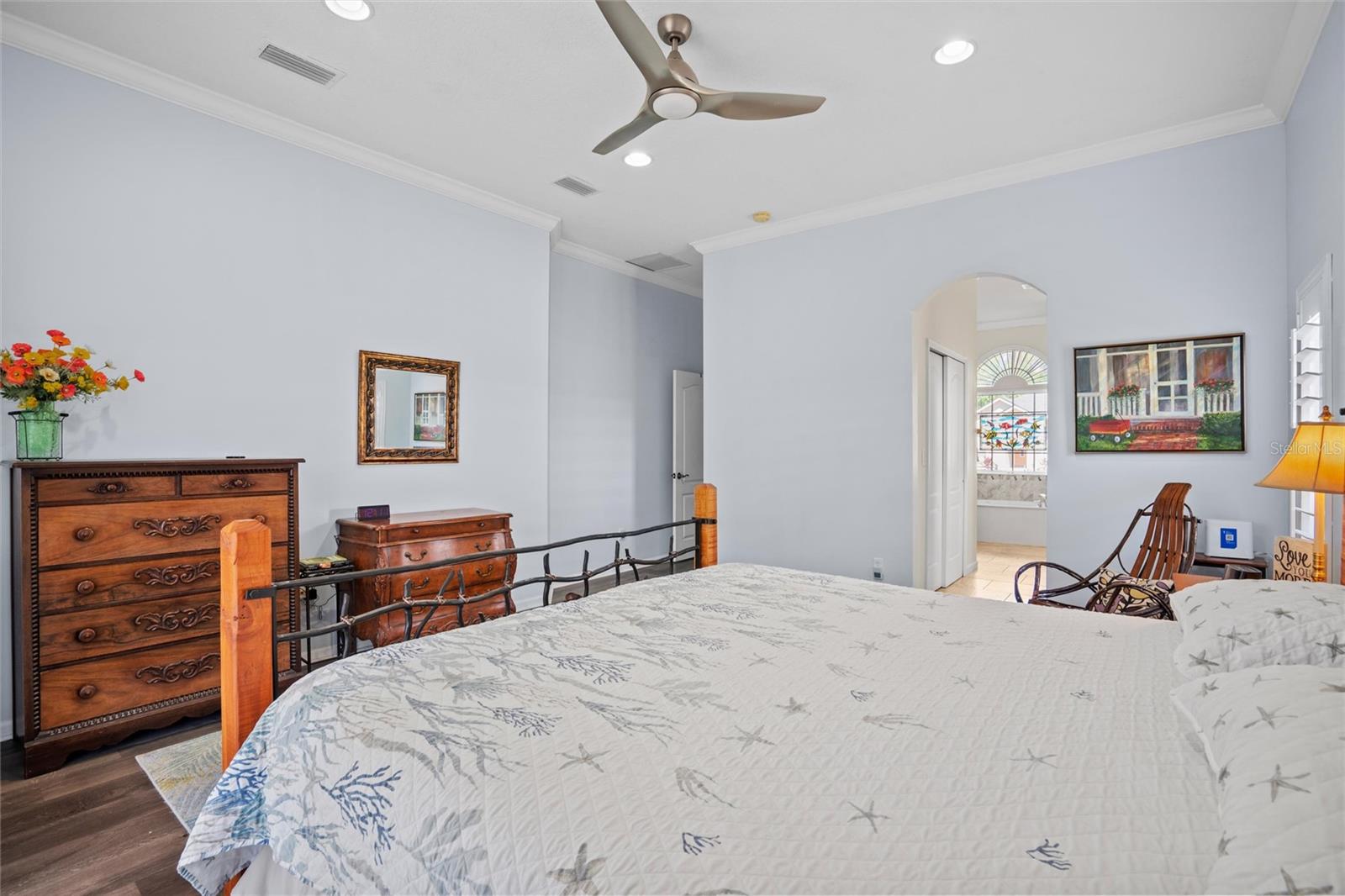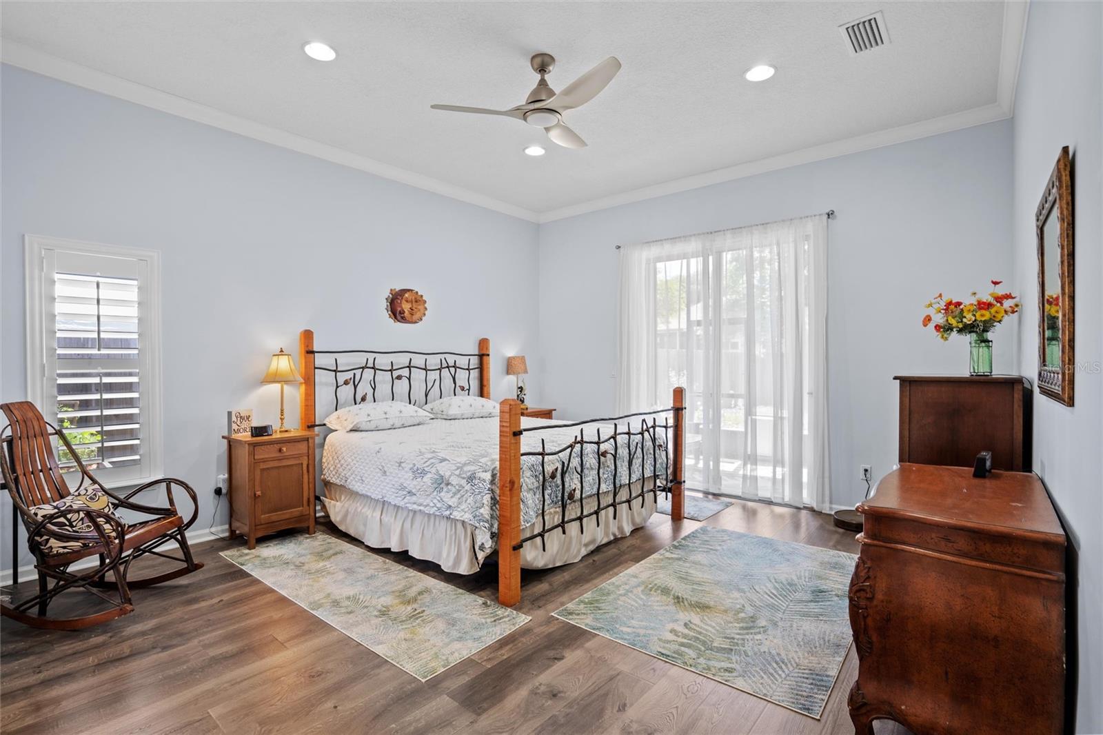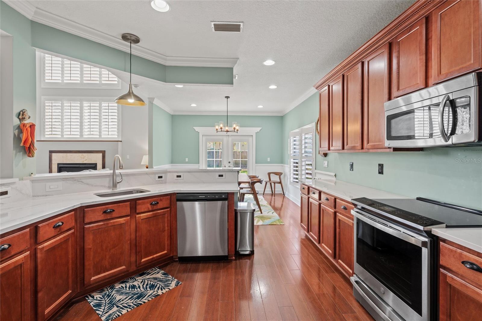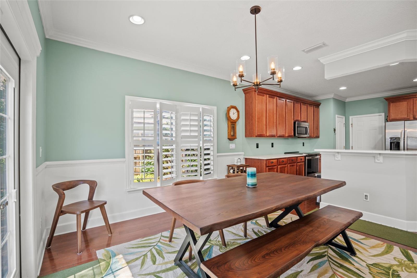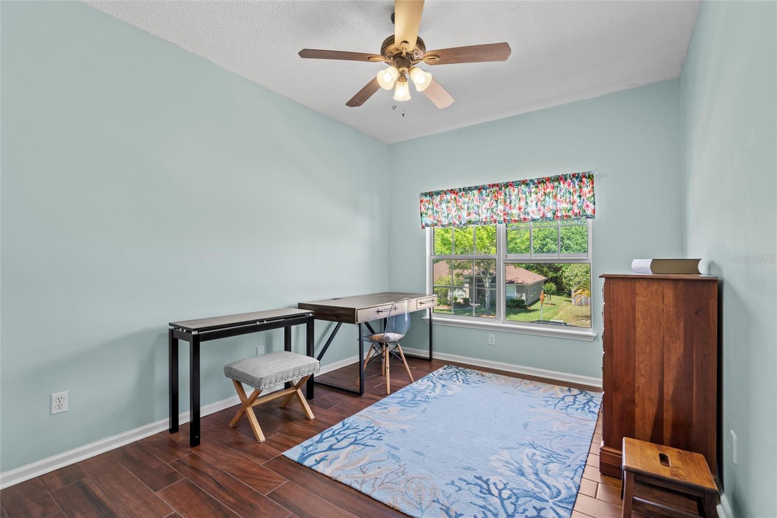 This beautifully updated and immaculately kept 4-bedroom and 2½ bath home with a large, private, fenced back yard in a quiet community less than a mile from shopping, restaurants, and the local high school, is now available. As you enter this gorgeous home, the soaring, 20-foot-tall ceilings of the main living area, cherry hardwood flooring, and crown molding that flows throughout will captivate you. The main living area boasts a gas fireplace and an abundance of natural lighting that permeates the area through the plantation shutters and is comfortably adjacent to the screened rear lanai on one end, and to the dining area and kitchen on the other. The spacious kitchen features quartz countertops, recessed & pendant lighting, a reach-in pantry, a breakfast bar, all stainless-steel appliances-including the oven with convection/ air fryer/grill settings, and is adjacent to the garage, so bringing in those groceries is a breeze! The first floor 16’ X 14’ primary bedroom suite features beautiful luxury vinyl plank flooring, 10’ ceilings, private access to the screened rear lanai, and a walk-in closet. The bright ensuite bath boasts dual decorative sinks in the newer vanity, a jetted garden tub, beautiful custom tiled walk-in shower with dual heads, and a water closet. The other three bedrooms are all large, and all include walk-in closets. The 15’ X 9’ screened lanai is the perfect place to relax while watching the hummingbirds sip nectar in the beautifully landscaped the back yard or enjoy your morning coffee. The fully fenced private backyard includes raised garden beds, citrus trees, numerous fragrant jasmine vines, an outdoor fire ring, and a garden shed for your toys and tools. The new in 2023, washer and dryer stay with your new home and the HOA is just $302/year. Additional features include newer roof (2021), AC compressor (2020), and new in 2023 dishwasher and refrigerator, plantation shutters throughout, the Murphy bed in the upstairs bedroom and the wall safe both convey, security system, 3-zone programmable thermostats, upgraded bathroom vanities with decorative sinks, 5-zone irrigation system, additional paver-lined parking area, and a utility sink and salt-free water softener in the garage (Whew-that’s a LOT!). Enjoy Amelia Island, the beaches or get to Jacksonville’s airport in under 30 minutes. Ask your Realtor® for the virtual walking tour of this home. All measurements are approximate and should be independently verified.