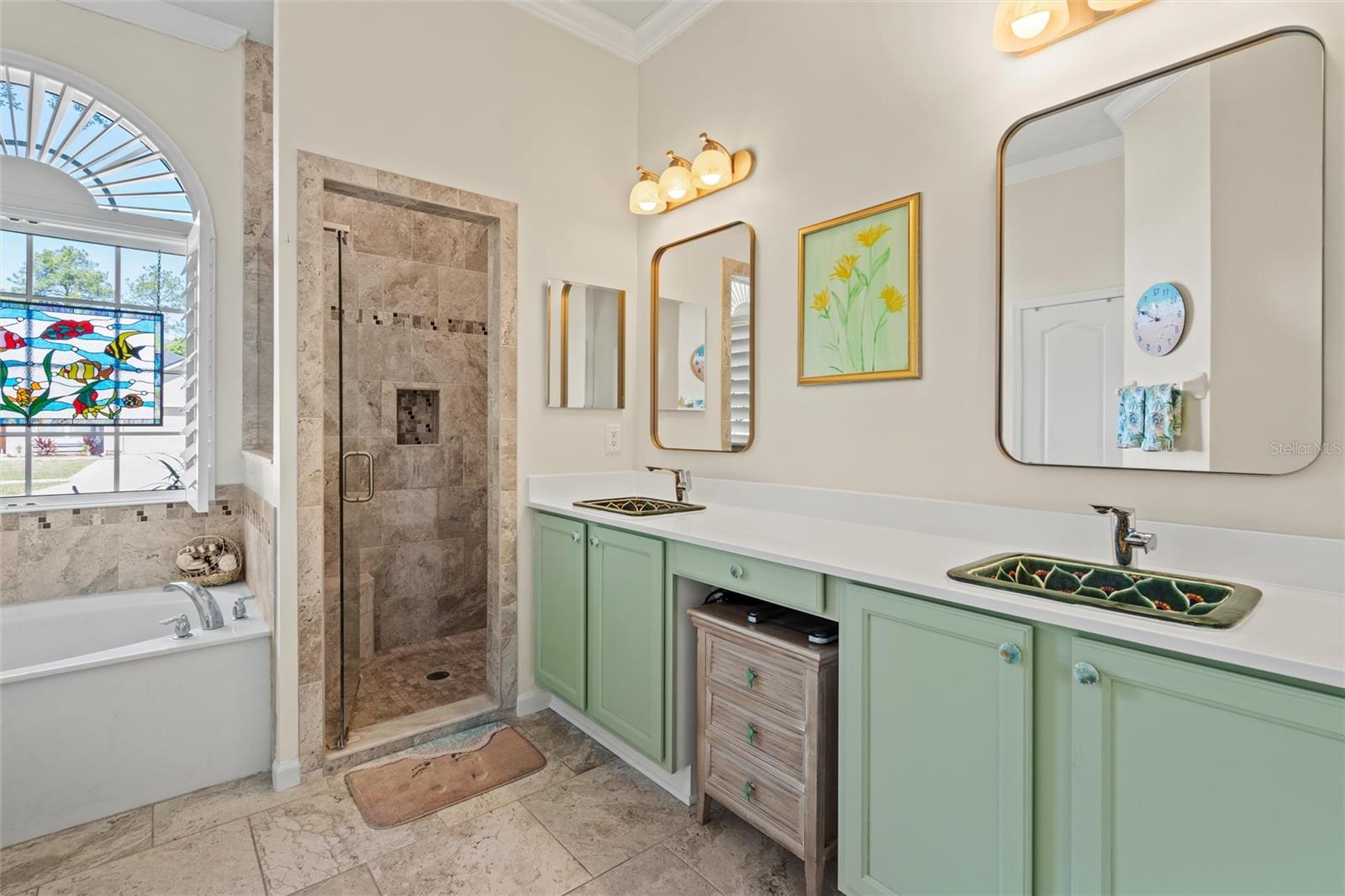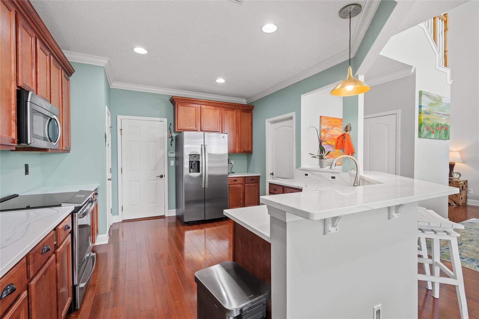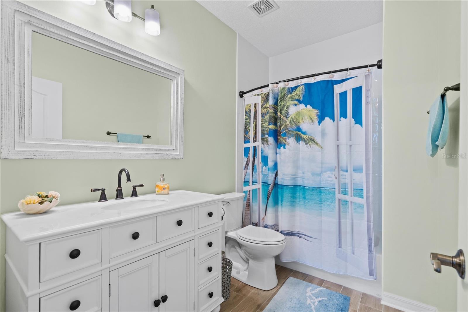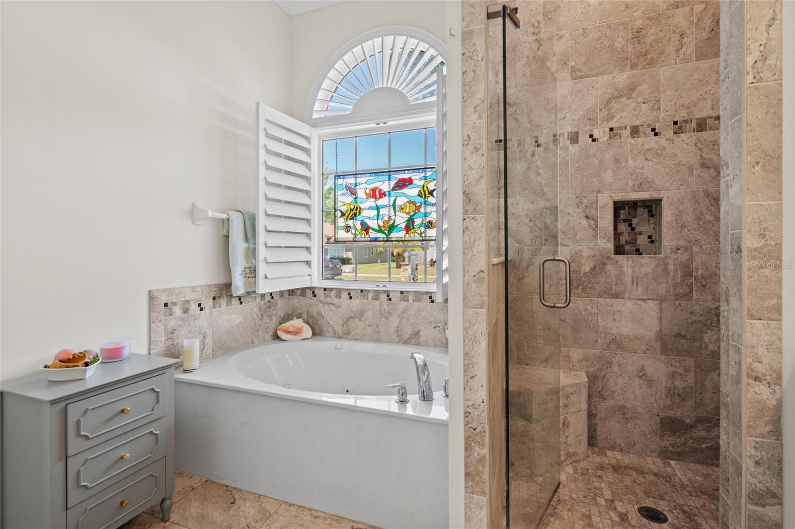 This beautifully updated and immaculately kept 4-bedroom and 2½ bath home with a large, private, fenced back yard in a quiet community less than a mile from shopping, restaurants, and the local high school, is now available. As you enter this gorgeous home, the soaring, 20-foot-tall ceilings of the main living area, cherry hardwood flooring, and crown molding that flows throughout will captivate you. The main living area boasts a gas fireplace and an abundance of natural lighting that permeates the area through the plantation shutters and is comfortably adjacent to the screened rear lanai on one end, and to the dining area and kitchen on the other. The spacious kitchen features quartz countertops, recessed & pendant lighting, a reach-in pantry, a breakfast bar, all stainless-steel appliances-including the oven with convection/ air fryer/grill settings, and is adjacent to the garage, so bringing in those groceries is a breeze! The first floor 16’ X 14’ primary bedroom suite features beautiful luxury vinyl plank flooring, 10’ ceilings, private access to the screened rear lanai, and a walk-in closet. The bright ensuite bath boasts dual decorative sinks in the newer vanity, a jetted garden tub, beautiful custom tiled walk-in shower with dual heads, and a water closet. The other three bedrooms are all large, and all include walk-in closets. The 15’ X 9’ screened lanai is the perfect place to relax while watching the hummingbirds sip nectar in the beautifully landscaped the back yard or enjoy your morning coffee. The fully fenced private backyard includes raised garden beds, citrus trees, numerous fragrant jasmine vines, an outdoor fire ring, and a garden shed for your toys and tools. The new in 2023, washer and dryer stay with your new home and the HOA is just $302/year. Additional features include newer roof (2021), AC compressor (2020), and new in 2023 dishwasher and refrigerator, plantation shutters throughout, the Murphy bed in the upstairs bedroom and the wall safe both convey, security system, 3-zone programmable thermostats, upgraded bathroom vanities with decorative sinks, 5-zone irrigation system, additional paver-lined parking area, and a utility sink and salt-free water softener in the garage (Whew-that’s a LOT!). Enjoy Amelia Island, the beaches or get to Jacksonville’s airport in under 30 minutes. Ask your Realtor® for the virtual walking tour of this home. All measurements are approximate and should be independently verified.