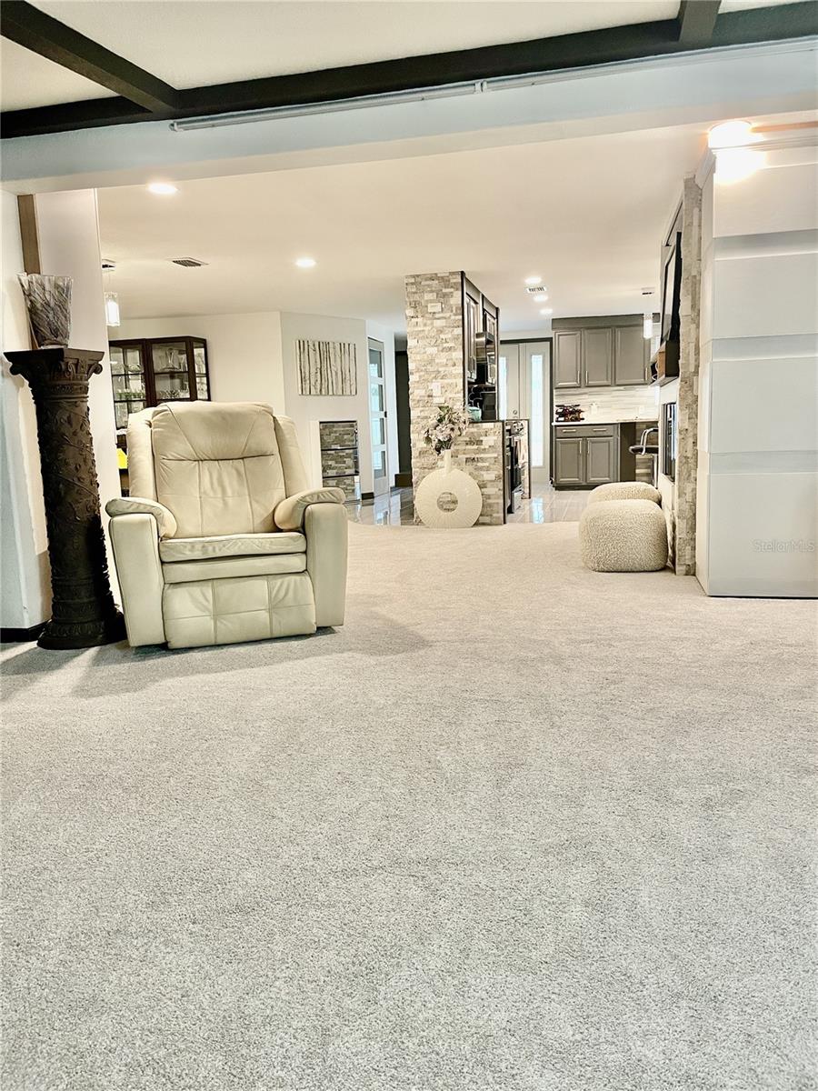 This completely renovated from top to bottom manufactured home must be seen to be believed. Located in The Citrus Ridge Community of ZELLWOOD STATION, this 3-bedroom 2 bath home has an incredible and coveted view of the golf course (and sunrise!) from the spacious living room and 3rd bedroom/craft room. Each well thought out room has hidden surprises of storage. The décor is completely upscale contemporary, this is not your Grandma’s home nor your daughter’s! If entertaining is your thing, there is plenty of spaces for large or intimate gatherings. Attention to detail is amazing in this 3100+ sq foot home. This open concept floorplan boasts a huge kitchen with Butler’s Pantry for the Chef in you! You will never have a problem with storage in this kitchen. The kitchen has granite countertops and tile floors, a beautiful granite island. Lots of counter space and a WALK-IN pantry. All the bedrooms are large and will easily hold king-sized beds if desired and they all have real walk-in closets. Bedroom 3 or the “Craft Room”, is an absolute delight to anyone who sews or needs craft space. Items in this room will be negotiated separately. Indoor laundry room is cleverly hidden and yet totally convenient! The Primary Bedroom and bath start with French door entry and the bath is a SUPER WOW. Jacuzzi tub, walk in shower, granite, huge walk-in closet, It is truly an oasis of peace. The Family Room and Home office is in just the right spot and will also have nice hidden surprises to enjoy. An additional attached storage room accessible from inside or outside for decorations or miscellaneous items. 2 car garage, LAND OWNED TOO! If you are pre-approved and would like a private tour of this beautiful home, please call for a showing. Serious buyers only please!
