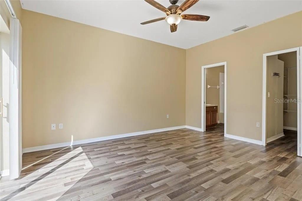 One or more photo(s) has been virtually staged. One or more photo(s) has been virtually staged. Great investment opportunity for a villa in a golf community. Vinyl flooring in living areas and carpeting in the bedrooms. The kitchen has stainless steel appliances. The primary bedroom has a generous walk-in closet, full en suite bathroom, and a second set of glass sliders opening to a water view in the backyard. Split floor plan features two additional bedrooms situated in the front of the home with a full bath. Great community for tenants includes a fitness center, clubhouse, playground, two community pools, tennis, pickleball and basketball courts, and a community golf course. Low HOA dues include lawn maintenance, trash removal, roof repair/replacement, and exterior painting as needed. Convenience is key with this prime location, just moments away from shopping, restaurants, medical facilities, and major interstates. Located in Lake Bernadette.