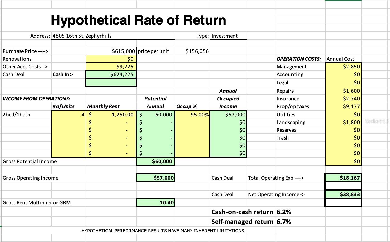 Check out this fully occupied, turnkey, income producing investment for FOUR units. Check out the potential return rate. Two side-by-side duplex buildings. Each unit is 2 bedroom, 1 bath with exterior washer/dryer connections. Block construction. Mix of tile and luxury vinyl plank flooring. High demand area just off of 301. Lots of new construction in the area driving increased values. Gross income figure is actual, net income figure is estimate. Units are 4805 and 4809 16th plus 38714 and 38718 B Ave. Roofs were replaced in 2022.