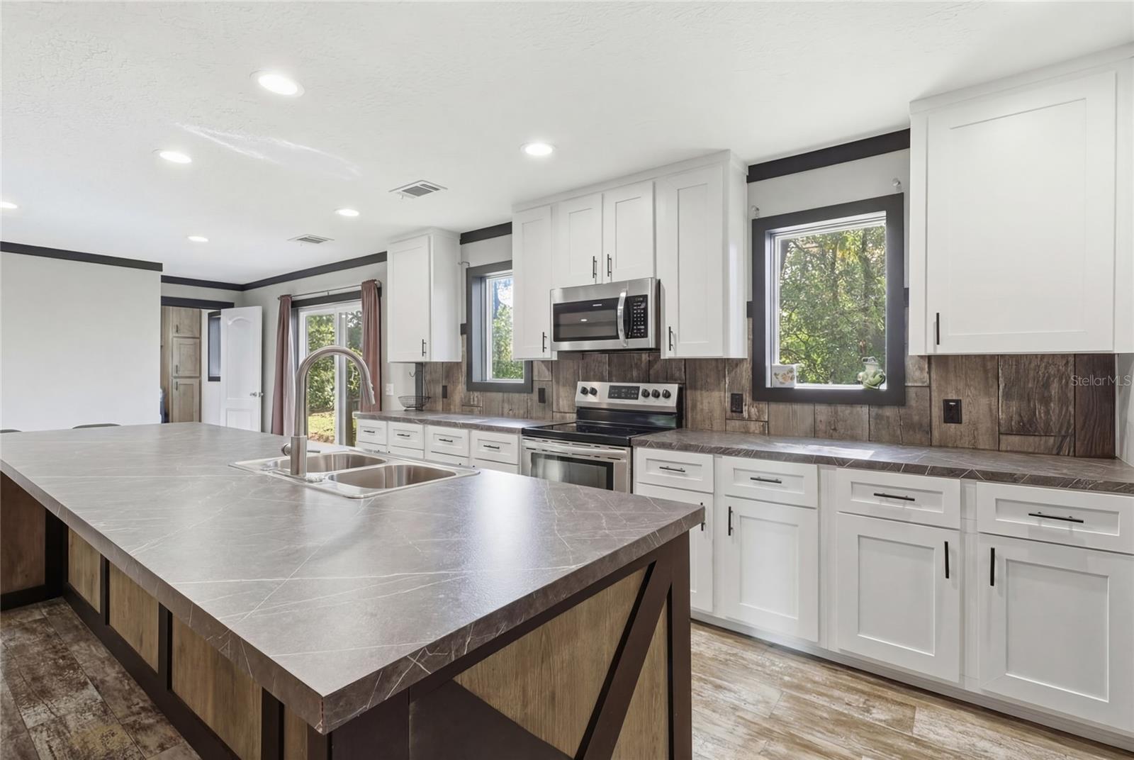 NO HOA!, NO CDD! Modern design meets relaxed small-town living on a full acre in peaceful Zephyrhills. This 2023 Clayton The Boujee XL double-wide manufactured home offers just under 2,000 sq ft of thoughtfully designed living space with 4 bedrooms, 3 full bathrooms, and a desirable split floor plan. A Jack and Jill bathroom connects two secondary bedrooms, adding everyday functionality. Dark trim throughout contrasts with abundant natural light, creating a warm and contemporary feel. Vinyl flooring runs throughout the home, complemented by smart home features that add convenience. The open living area flows into the dining space and kitchen, ideal for daily living and entertaining. The kitchen features a large center island with seating, tall cabinetry for ample storage, and space suited for a coffee bar or butler’s pantry. Just off the dining area, the utility room includes washer and dryer hookups with additional storage. A cozy den or secondary living space showcases shiplap accents and a built-in fireplace, providing a comfortable setting for a family room, home office, or additional living area. The primary suite is privately situated and includes a spacious walk-in closet and an en suite bathroom with dual sinks, a soaking tub, and a walk-in shower with a glass enclosure. Unincorporated living allows added flexibility, including an RV-ready parking area with 30-amp electrical service which is on a separate meter from the home. The modern ranch-style exterior completes a property that balances space, comfort, and practical design, all just minutes from shopping, dining, and commuter routes. Buyer and buyer’s agent to verify all measurements, features, and room configurations. **Property Records are incorrectly listed with 2 bathrooms**