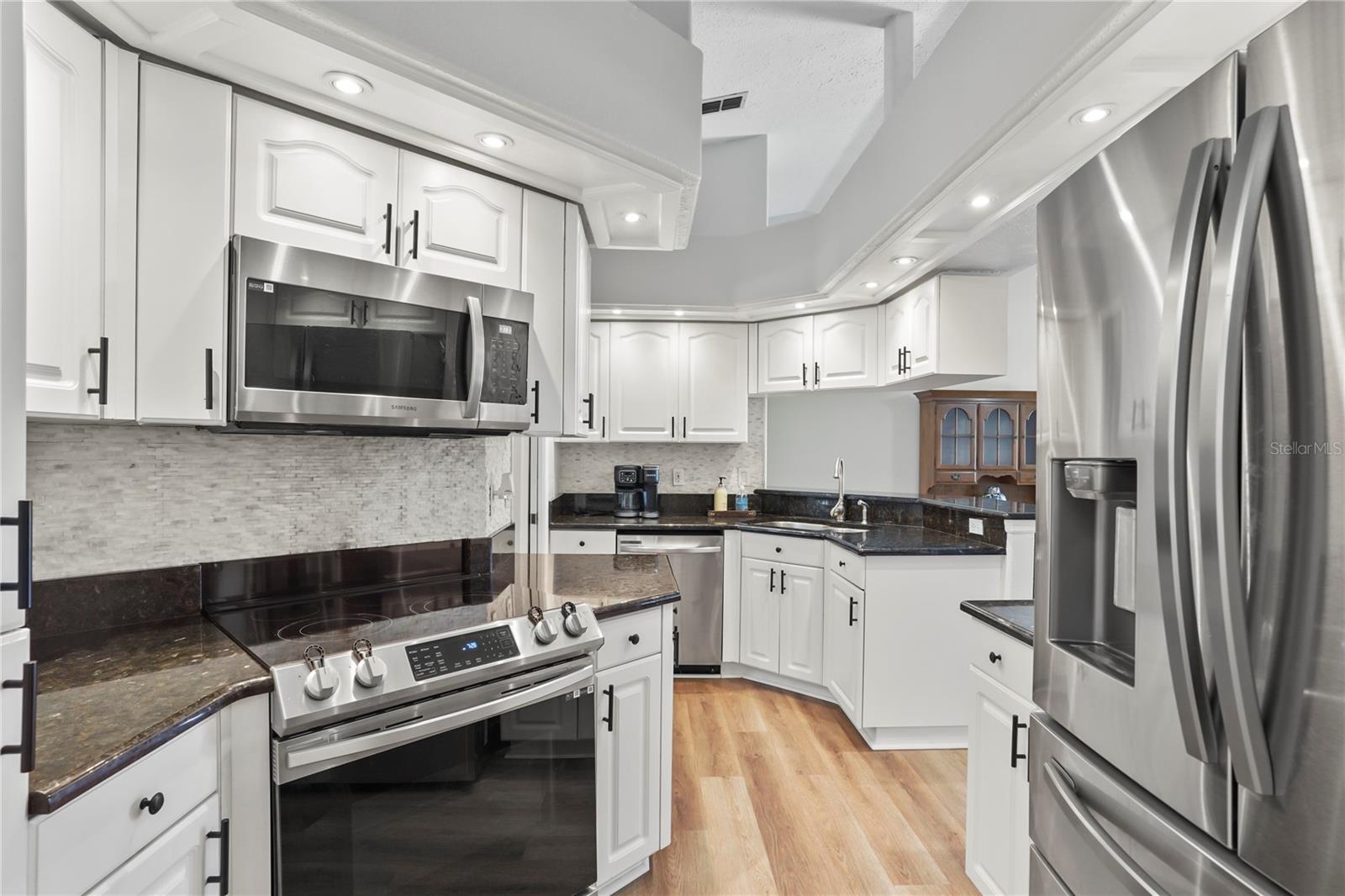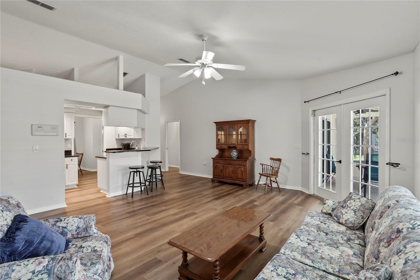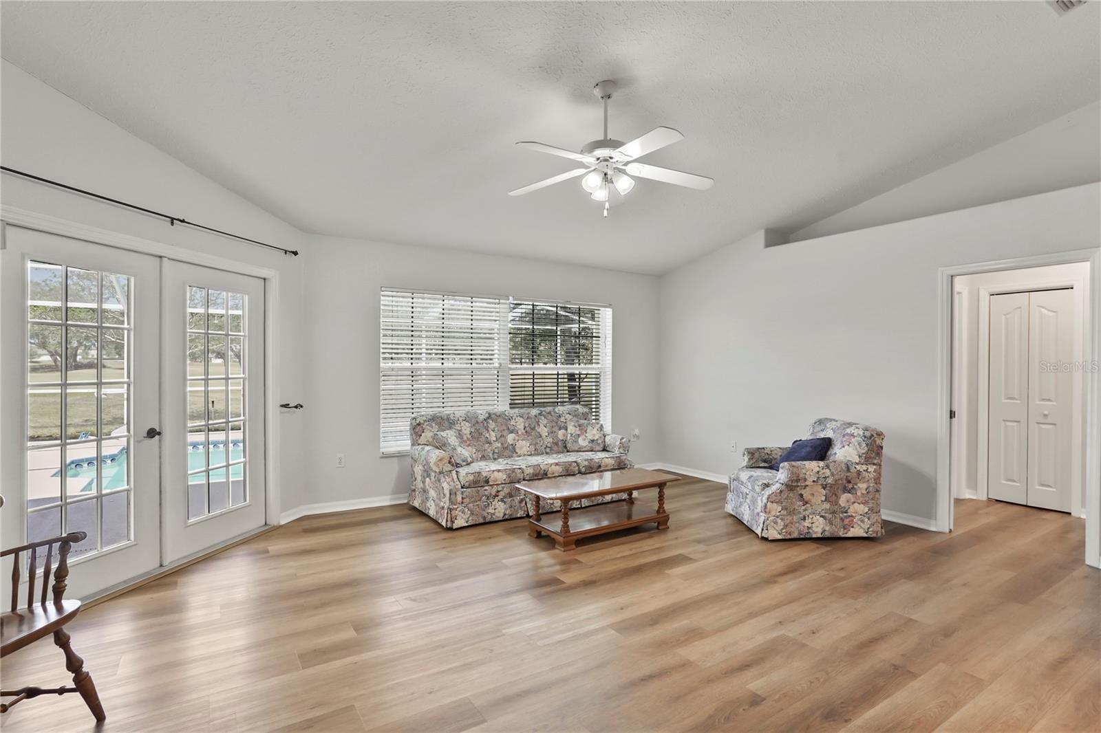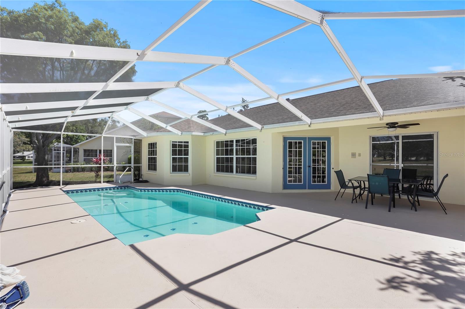 Welcome to this stunning 3 bedroom, 2 bath POOL home, with an amazing golf course view! As you head Inside you will be greeted with vaulted ceilings, new luxury vinyl flooring and an open floor plan. New Roof. The kitchen has been upgraded with granite countertops and high end Samsung appliances. There was no flooding to this home during the hurricane. Hurry to see this beautiful home with sunset that are out of this world!
