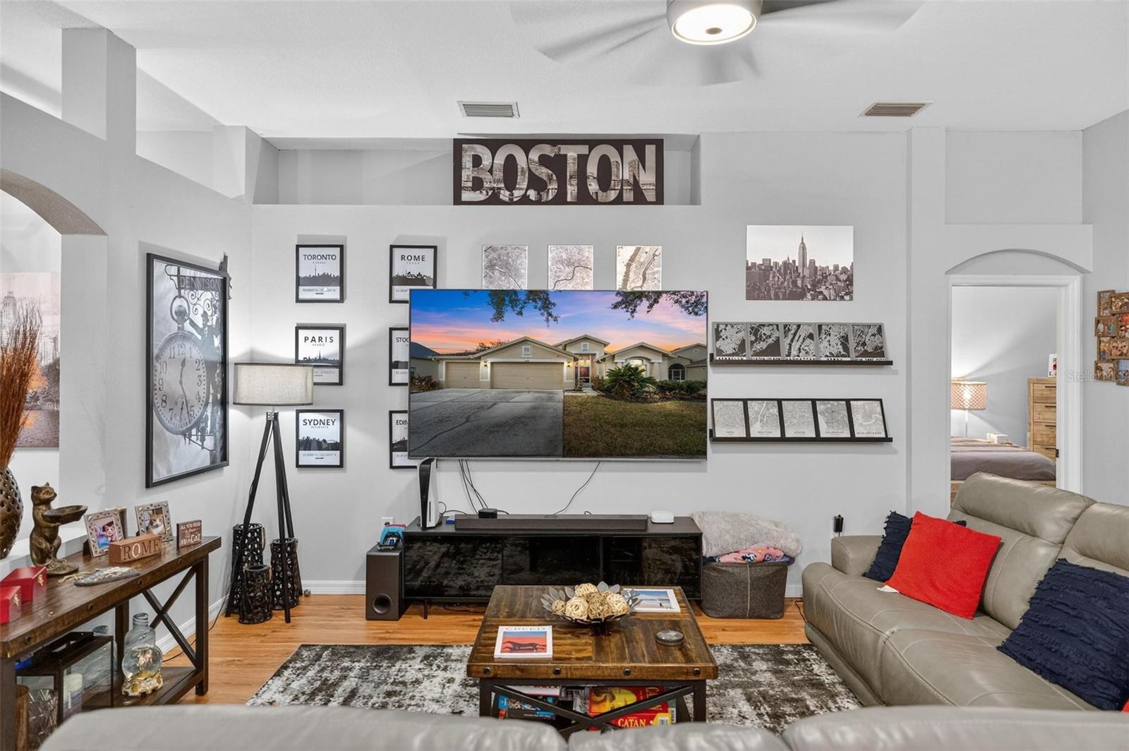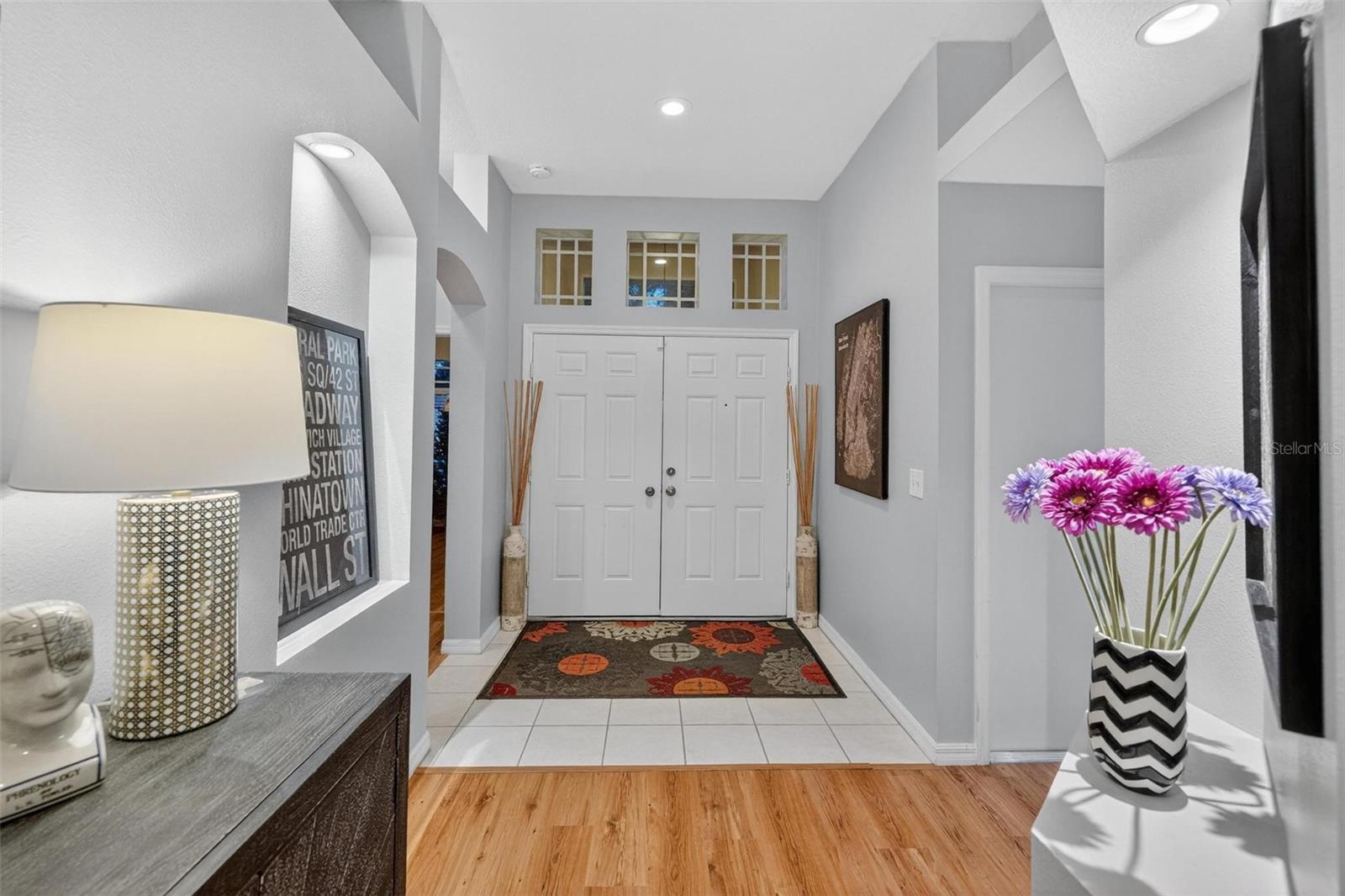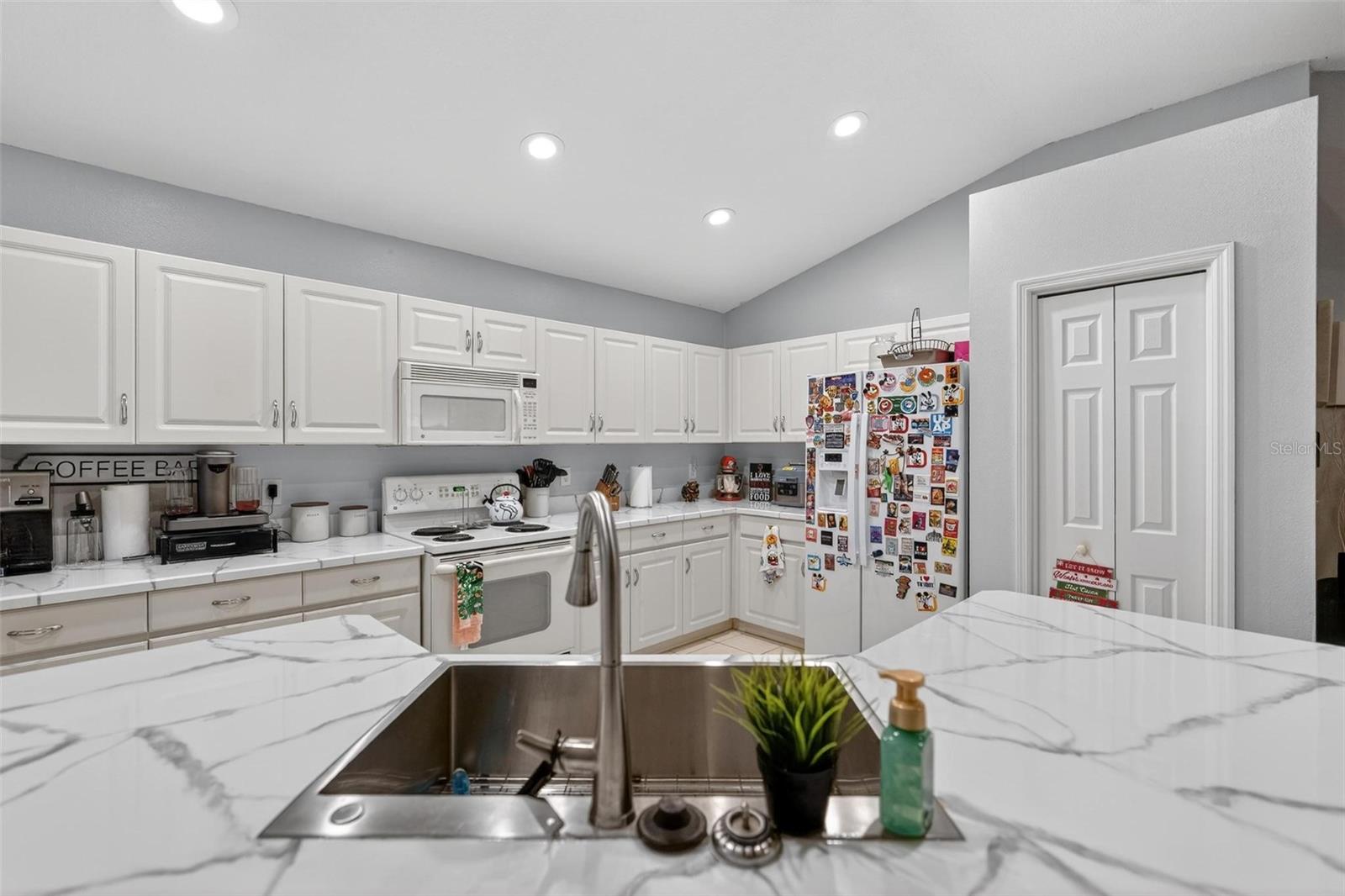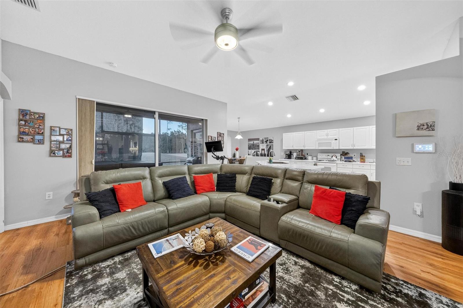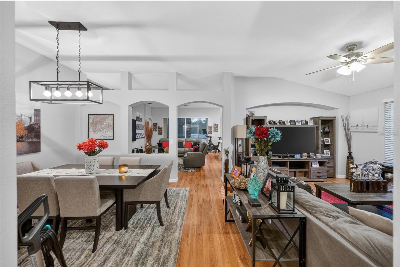 Welcome home to sweeping golf course and pond views in the highly sought-after Lake Bernadette community. This beautifully maintained 4-bedroom, 2-bath, single-story home with a 3-car garage delivers space, light, and a layout designed for both everyday comfort and effortless entertaining. From the moment you enter, you’ll notice high ceilings, elegant archways, and abundant natural light flowing through the open yet well-defined floor plan. Separate formal living and dining rooms provide flexibility, while the spacious family room opens through sliding glass doors to a screened patio with hot tub, extending to a brick-paver outdoor area perfectly positioned to enjoy peaceful water and fairway views. The kitchen is generously sized and thoughtfully designed with ample cabinetry, bar seating, and a cozy breakfast nook, making it ideal for casual meals or hosting friends and family. Privately located at the rear of the home, the primary suite offers serene views and a spa-like ensuite featuring a walk-in shower, garden tub, dual vanities, and a large walk-in closet. Three additional bedrooms provide excellent versatility for guests, a home office, or flex space. A dedicated laundry room with storage shelving adds convenience, while the 3-car garage offers plenty of room for vehicles, storage, or a golf cart. Located just minutes from shopping, dining, medical facilities, and easy access to I-75, Lake Bernadette residents enjoy outstanding amenities including two pools, a fitness center, tennis and basketball courts, a playground, and clubhouse. With low HOA fees, CDD benefits, and a prime setting, this home delivers exceptional value and the Florida lifestyle buyers are searching for. A rare opportunity to own a move-in-ready home with views, space, and community amenities—schedule your showing today.