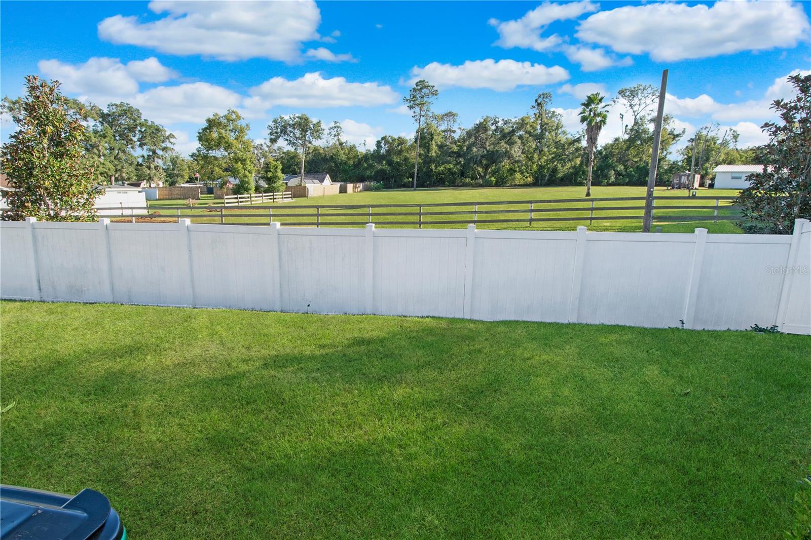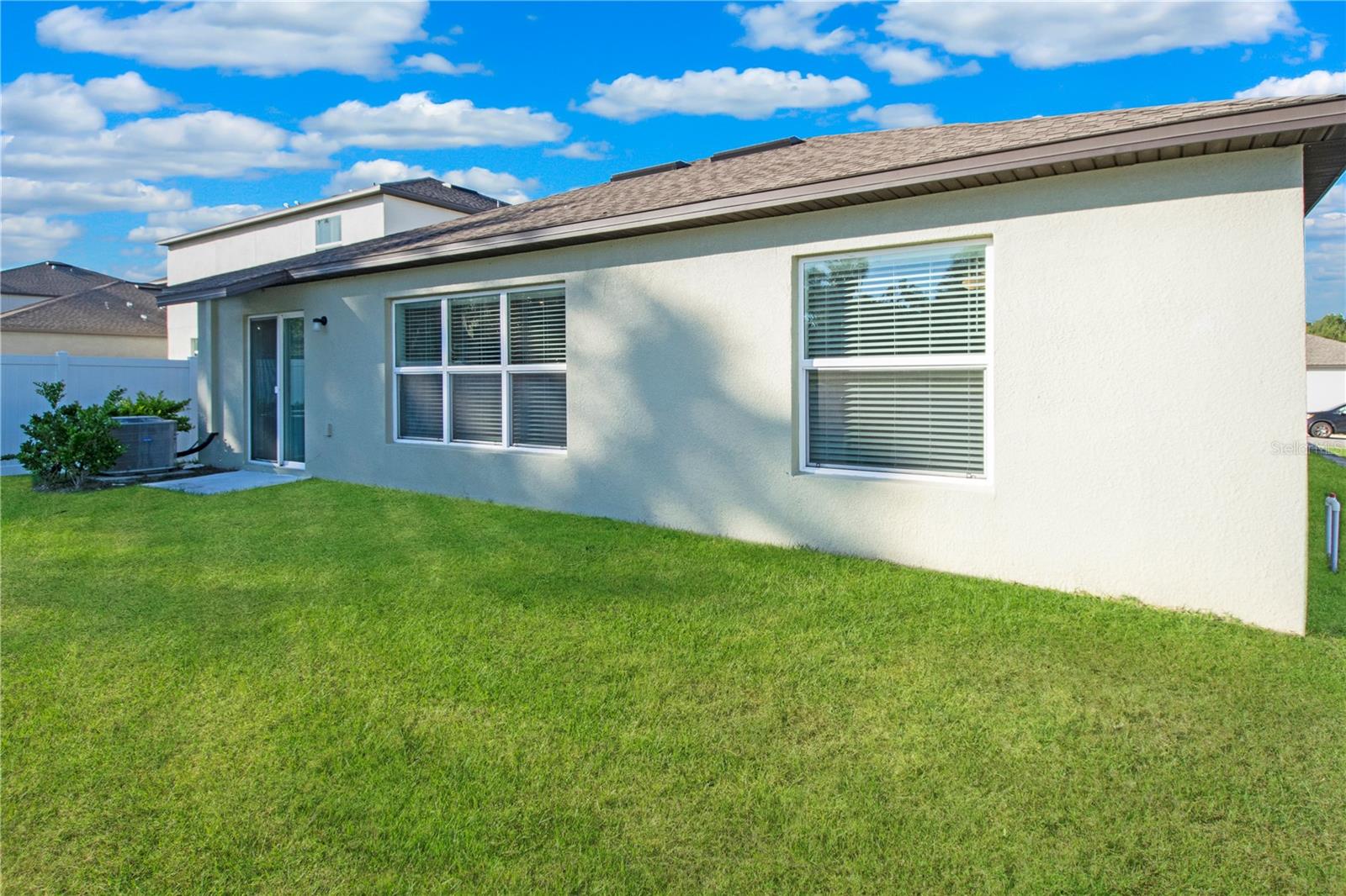 One or more photo(s) has been virtually staged. Welcome home to Abbott Square, where comfort and convenience meet modern living! This beautifully maintained Lennar single-story home offers 4 bedrooms, 2 bathrooms, and a spacious open-concept layout that feels practically brand new. Step inside to find tall ceilings, elegant tile flooring in the main areas, and carpeted bedrooms for added comfort. The thoughtfully designed 3-way split floorplan provides versatility and privacy. The front wing includes bedrooms 2, 3, and 4 — perfect for family, guests, or a home office — and a full bathroom conveniently nearby. At the heart of the home, the expansive living room seamlessly connects to the kitchen and dining area, ideal for entertaining or relaxing. The kitchen features granite countertops, stainless-steel appliances, a large center island with seating for 3–4, and a pantry for additional storage. Enjoy meals overlooking your partially fenced backyard with no rear neighbors, offering both privacy and open views. The primary suite, tucked away at the rear of the home, includes a spacious walk-in closet and a private en suite bath with a walk-in shower and dual vanities. Additional highlights include a two-car garage, a driveway with extra parking, and modern construction with energy-efficient systems throughout. Residents of Abbott Square enjoy access to resort-style amenities, including a clubhouse, pool, fitness center, and play areas — all within walking distance. The low HOA fee includes high-speed internet. Conveniently located near Florida Medical Clinic, shopping, dining, Publix, and major highways for easy commuting. Move-in ready and waiting for you — schedule your private tour today and experience exceptional living in Abbott Square!