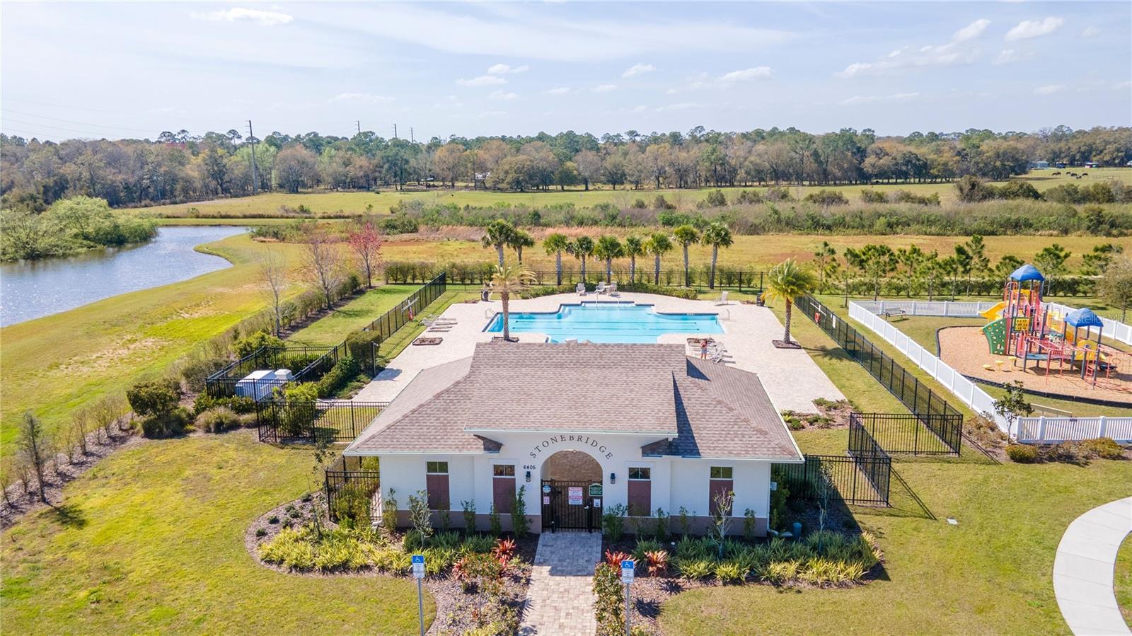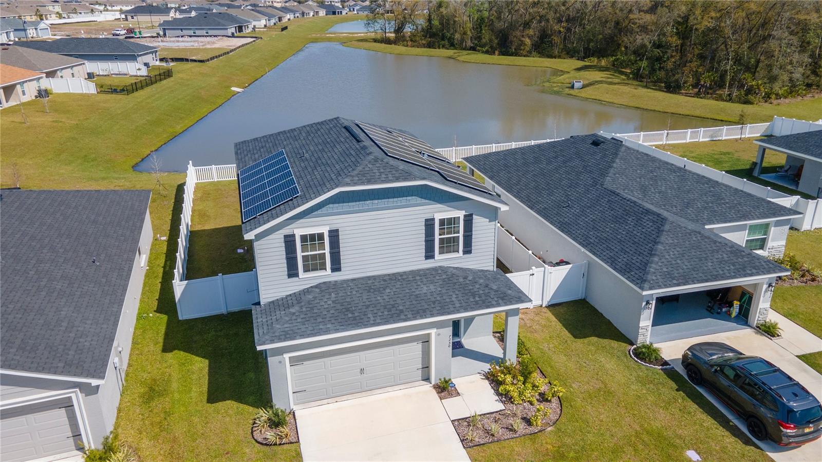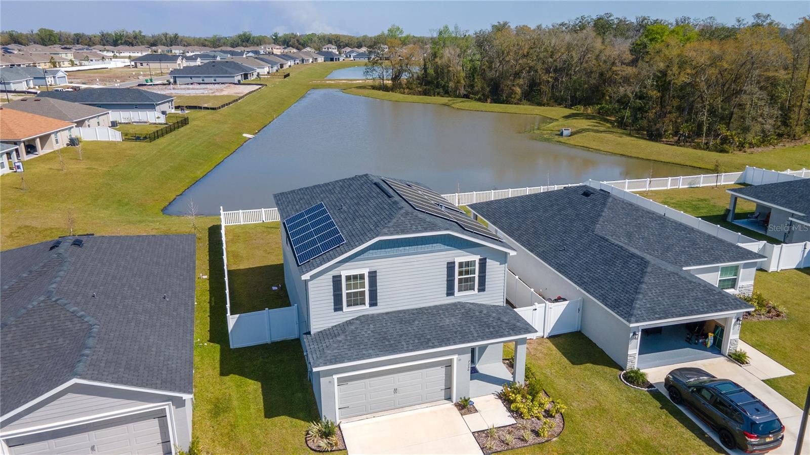 One or more photo(s) has been virtually staged. *** SELLER OFFERING $5,000 TOWARDS BUYER CLOSING OR INTEREST RATE BUY DOWN (save up to $350 per month during the 1st year of your mortgage - see attach.)*** NO WAITING REQUIRED! Don't miss this practically brand-new, move-in ready home set on a picturesque pond lot. Highland Homes Sydney model, built in 2023 offers an open, great room floor plan with combination living/dining area, and plenty of storage throughout. Enjoy 3-bedrooms, 2 ½ bathrooms, and a 2-car garage, PLUS AN UPSTAIRS LOFT/FLEX SPACE that can be EASILY CONVERTED TO A 4TH BEDROOM by simply adding a door, or use it as an office or playroom. You will love the fully equipped kitchen with separate dining area, sparkling stainless-steel appliances, espresso cabinets, spacious island/breakfast bar, walk-in pantry and drop zone. Ideal for entertaining, it opens to the family room and fenced backyard where there is plenty of room to add a pool or create your own private oasis and soak up the view. Unwind in your owner’s suite featuring a walk-in closet, beautiful en-suite bathroom with dual vanity, and walk-in shower. You can even relish the pond view from up here! Did I mention that this home comes with BRAND NEW ENERGY SAVING SOLAR PANELS THAT PUT MONEY BACK IN YOUR POCKET by cutting your electric bill down to almost nothing? Additional features include NEW LAMINATE FLOORING throughout main living areas and bathrooms, ALL APPLIANCES as well as SAMSUNG FRONT LOAD WASHER & DRYER, WATER SOFTENER, AND RING DOORBELL SECURITY EQUIPMENT - all ready for you to set up how you choose. Stonebridge at Chapel Creek is conveniently located in Zephyrhills with easy access to SR 54, I-75, & US-301, for easy commuting to Tampa, Wesley Chapel, shopping, restaurants, parks, hospitals, and all that this growing area has to offer. **LEASE OPTION AVAILABLE!** Click on Link for Virtual 3-D Tour/Walkthrough and Make An Appt. Today!