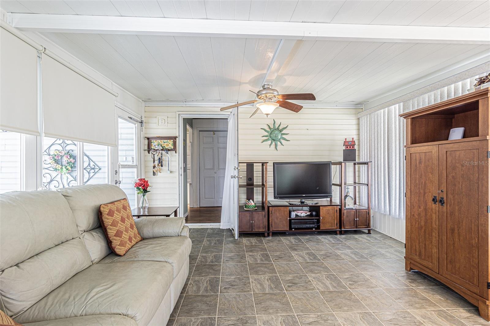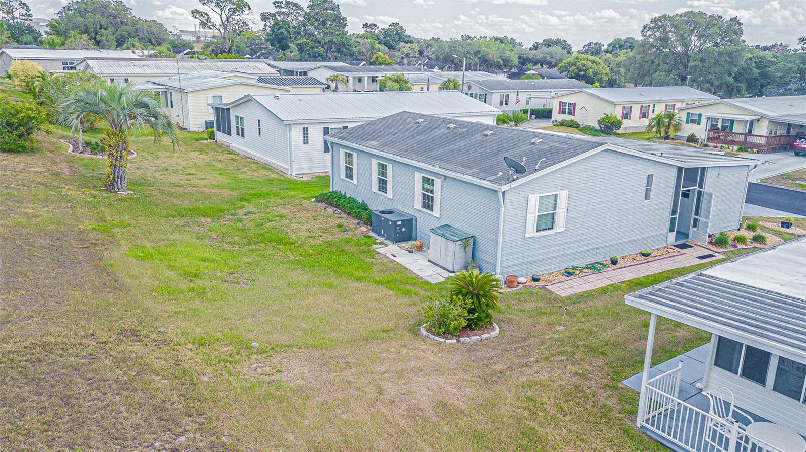 Welcome Home to GATED Grand Horizons 55+ Community, where you OWN your LAND! Brand NEW ROOF! Great Curb appeal with Stone columns and Stone landscape beds. Park side by side in the wide driveway with epoxy painted finish and enter into your Screened lanai on the front of the home, with easy access to the attached storage shed on one end, with ramp into the Florida room at the other end. 2019 AC (16 Seer, 3 Ton) keeps the home cool on those hot summer days! Enter into the Main house into an OPEN, Living/Dining Combination floorplan with Cathedral ceiling, Spacious Living area and Split bedroom plan. Wood Laminate floor in the Dining area and Galley kitchen set off the white cabinets and white appliances…Smooth top range with microwave above, newer dishwasher 2017, side by side refrigerator, with breakfast highbar for quick meals. Interior Laundry Room with Roper washer and dryer has white storage cabinets above, leads to your ENCLOSED FLORIDA ROOM with glass windows and vinyl flooring, at the front of the home, with awnings outside to shade this additional living space includes Plenty of areas to entertain family, friends and neighbors! Extra area in the backyard as an open patio with storage unit and place to BBQ or relax in the Sun. You will LOVE living in this Well Maintained Neighborhood with Resident Owned Amenities: Heated Pool, Hot Tub, Shuffleboard, Clubhouse with Billiards, Bingo, Dartboard, Craft Room, Library with puzzles, games & book swaps, Planned activities, Pot luck dinners and Travel Excursions! Located just north of Tampa in Zephyrhills within one mile of the YMCA, shopping, restaurants, medical facilities, library, theater, bowling and major highways for easy access to Tampa, Lakeland, Orlando, Wesley Chapel Wiregrass mall, Premium outlets, International Airports and the Beaches! CALL TODAY!