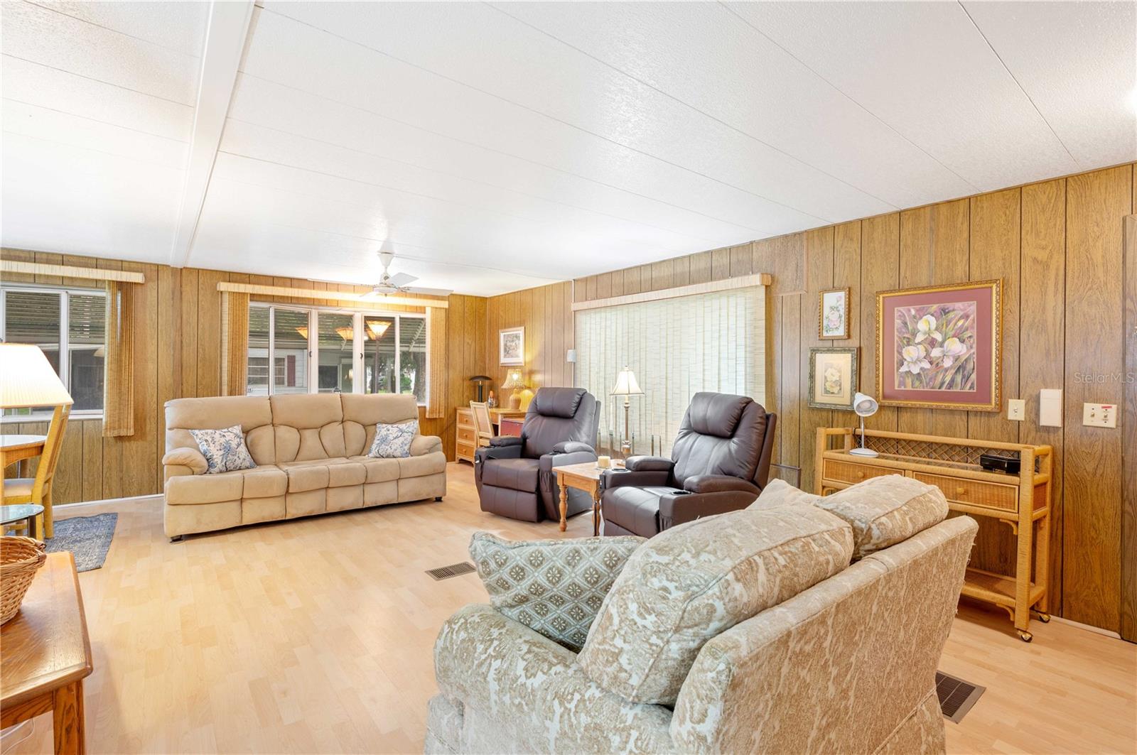TWO LOTS with RV parking and hookup located in the PET friendly area of Betmar Acres, a 55+ community where you Own your land. This home boasts over 1400 sq ft with parking for the RV and a 12x16 metal shed with a golf cart ramp, electricity and lots of shelves for storage. This 2bd/2ba double wide has oversized rooms and comes completely FURNISHED with HENRY LINK furniture! Roof is metal and A/C is 2015. Walk into the Florida room off the driveway which is heated and cooled, laundry is off this room also with lots of storage. Oversized living dining space with built-in cabinets and bay windows. Primary bedroom has room for a king bed and is open to the updated sink area and a walk-in closet. It has a separate shower/toilet area. Both bathrooms have a walk-in showers. Second bedroom also is large enough for a king bed. Come see this one before its gone and enjoy all Betmar's amenities to include Walking trails over bridges and ponds, 2 swimming pools, 2 hot tub, tennis, pickle ball, basketball, bocce, 27 holes of golf, shuffleboard, mini golf, billiards, game rooms, library, clubhouses, planned activities, Bingo and fun events all in BETMAR ACRES!