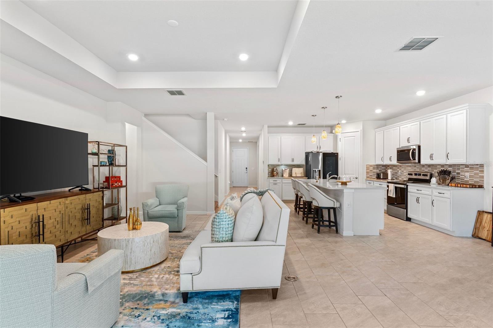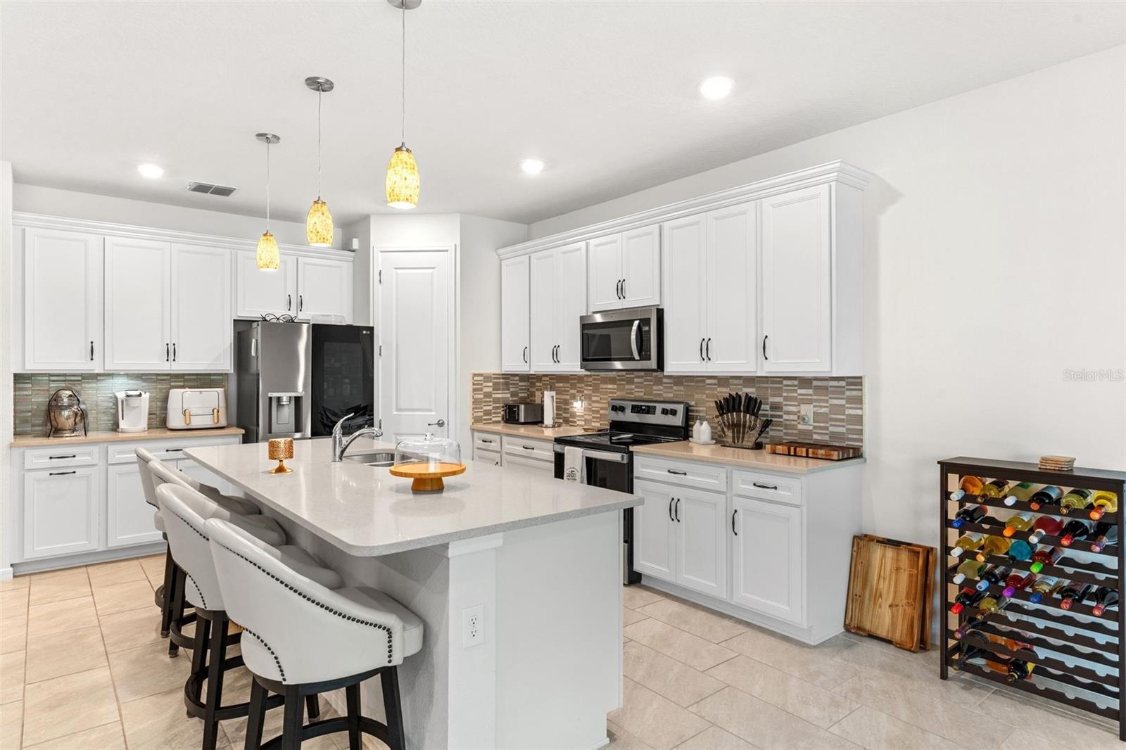 One or more photo(s) has been virtually staged. Imagine missing out on the chance to live in a beautiful 4-bedroom, 3.5-bathroom home in one of Zephyrhills' most peaceful and sought-after gated golf communities. This home, with 2,885 square feet of thoughtfully designed living space, offers the perfect balance of modern amenities and serene surroundings—ideal for anyone looking for comfort, convenience, and a touch of luxury. As you walk through the front door, you'll immediately notice the spacious office, perfect for remote work or as a quiet retreat. The large laundry room, with a utility sink and plenty of space for all your essentials, makes everyday tasks a breeze. The kitchen, the true heart of this home, is equipped with soft-closing cabinets, pull-out drawers, stainless steel appliances, and an energy-efficient range hood that vents to the outside, so you can cook without worrying about lingering odors. This space effortlessly flows into the living and dining areas, designed to create an inviting atmosphere for both everyday living and entertaining. Step outside through the large pocket sliding glass doors and into the screened-in lanai, where you'll enjoy peaceful views of the fenced backyard and the golf course. This serene space is perfect for a morning cup of coffee or unwinding in the evening. Plus, with a pre-plumbed outdoor kitchen area, you can easily enhance this space for future outdoor entertaining. The first-floor primary suite offers the privacy you’ve been searching for, with a spacious walk-in closet and an ensuite bathroom featuring double sinks, a walk-in shower, and a separate water closet. Upstairs, the generously sized loft area with built-in surround sound is ideal for movie nights, a playroom, or a second living area. You’ll also find three more bedrooms and two full bathrooms, one of which is an ensuite, ensuring your family and guests will feel right at home. Additional features include built-in garage shelving, a water softener, and a one-year home warranty for peace of mind. Plus, the location is incredibly convenient, with top-rated schools, shopping, and dining just a short drive away. And if you enjoy the outdoors, you’re in luck—the new 11-acre Hercules Park, offers a splash pad, playgrounds, walking trails, and more, making it the perfect place to unwind and enjoy the Florida sunshine. With nearby amenities like the Silverado Golf & Country Club and Sarah Vande Berg Tennis Center, you’ll find plenty of ways to stay active and engaged. Don’t let the opportunity to own this beautiful home slip away. Ask about how you can receive lender credits for closing costs and interest rate buydowns, which can make this home even more affordable. If this home checks all your boxes, don’t wait—schedule a tour today before someone else beats you to it!