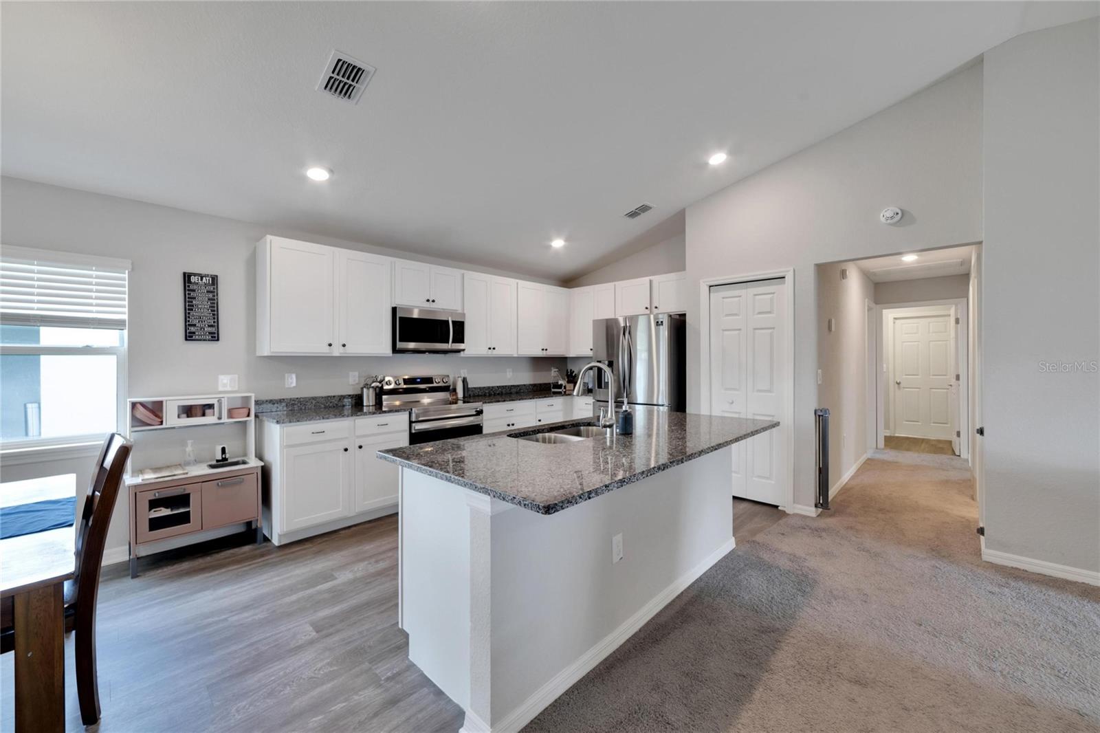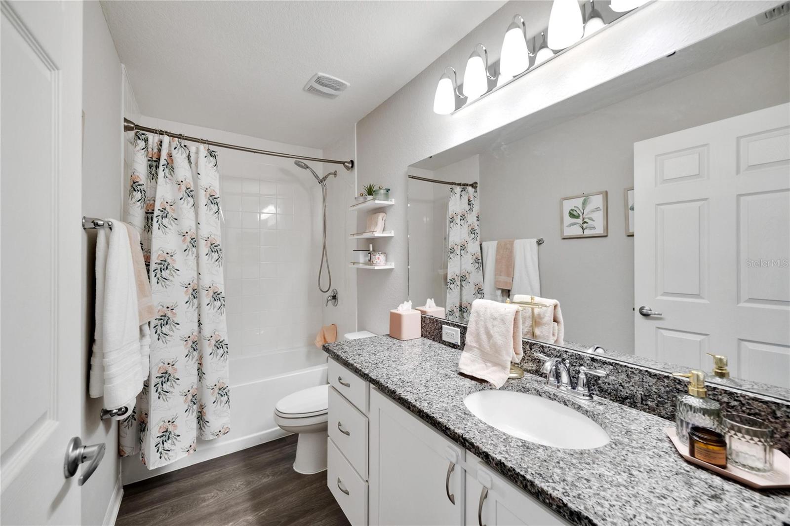 Welcome to your beautiful new home tucked away in the desirable Stonebridge neighborhood in the Chapel Creek community. Loaded with upgrades, this home is better than new. This home boasts luxury vinyl plank flooring in all the wet areas, 36 in. kitchen cabinets, granite countertops throughout, tile in the master shower, blinds in every window, ceiling fans in every room, a side garage door and a screened lanai! The pride of ownership is evident in this well maintained home that offers three bedrooms, two bathrooms, a cafe dining area, a large, open floor plan, PLUS a two car garage. The community is chock full of amenities for your relaxation and enjoyment: a pool, dog park, playground, and walking trails complete with fitness stations. The low HOA fee is just one more thing that makes this lovely home even more appealing! Located in a rapidly growing area of Pasco county, this home is not to be missed!