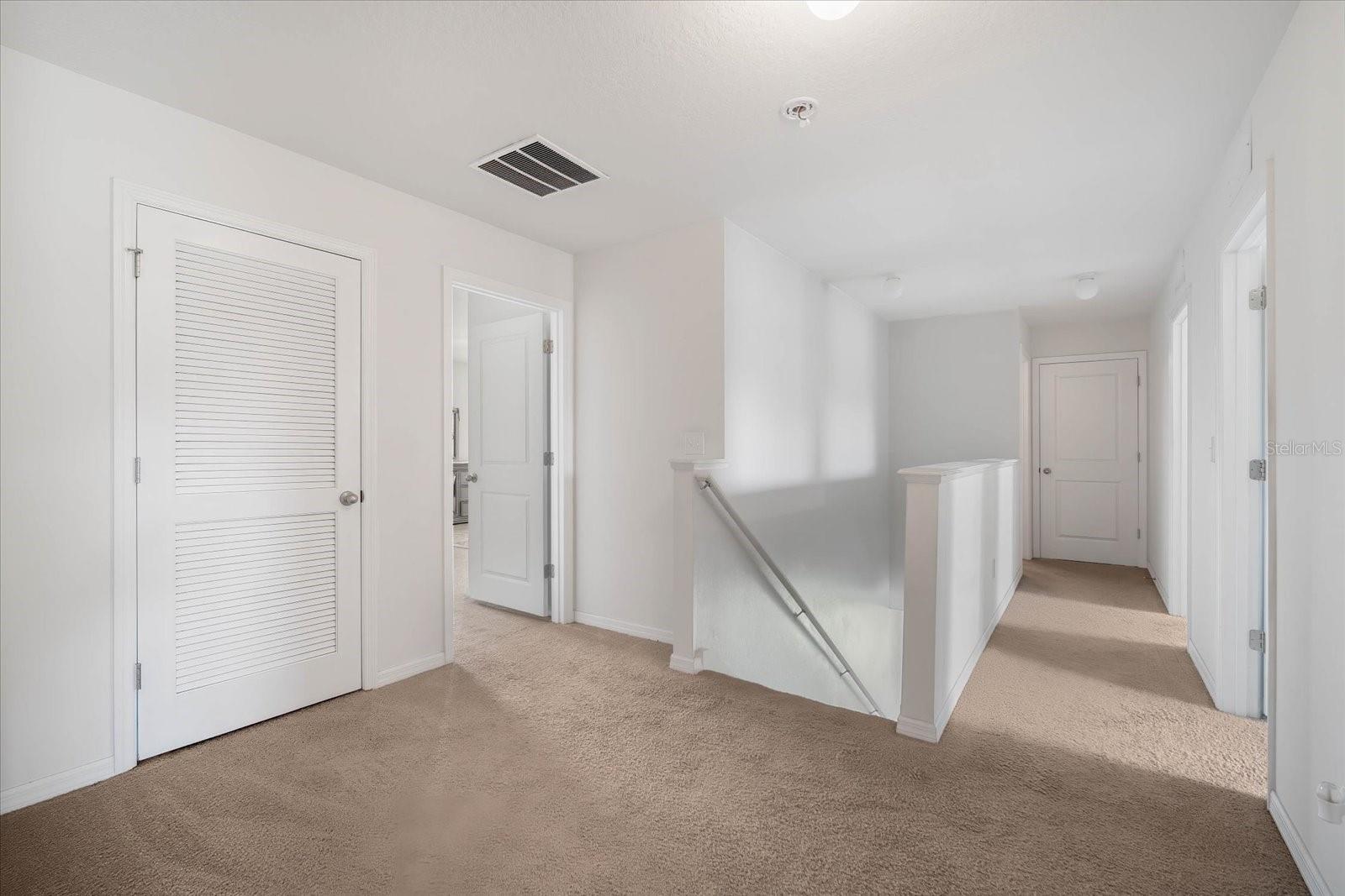 Spacious 4-Bedroom Home with Loft & Conservation Views! This beautiful, move-in-ready home is designed with your lifestyle in mind! With 4 bedrooms, open living spaces, and a versatile bonus loft, there’s room for everyone. Upon entering, you'll find a flexible space that could serve as a living room, home office, or formal dining area—the choice is yours! The heart of the home features a seamless flow between the living, dining, and kitchen areas, perfect for gatherings. The kitchen is a chef's delight, complete with a walk-in pantry and plenty of counter space. A convenient half bath is also located downstairs. Upstairs, all four bedrooms await, along with a bonus loft ideal for a second sitting area, homework nook, or play space. The spacious primary suite offers a large bath with dual sinks and a sleek shower. All bedrooms are equipped with ceiling fans for those cool, comfortable nights. The secondary bathroom also includes dual sinks, providing added convenience for busy mornings. The home sits on a peaceful conservation lot with no rear neighbors, giving you privacy and serene views. Plus, the community offers a community pool for endless fun in the sun. Located near top-notch shopping, dining, highways, and schools—this home has it all! Don’t miss your chance to see this one—schedule your tour today!