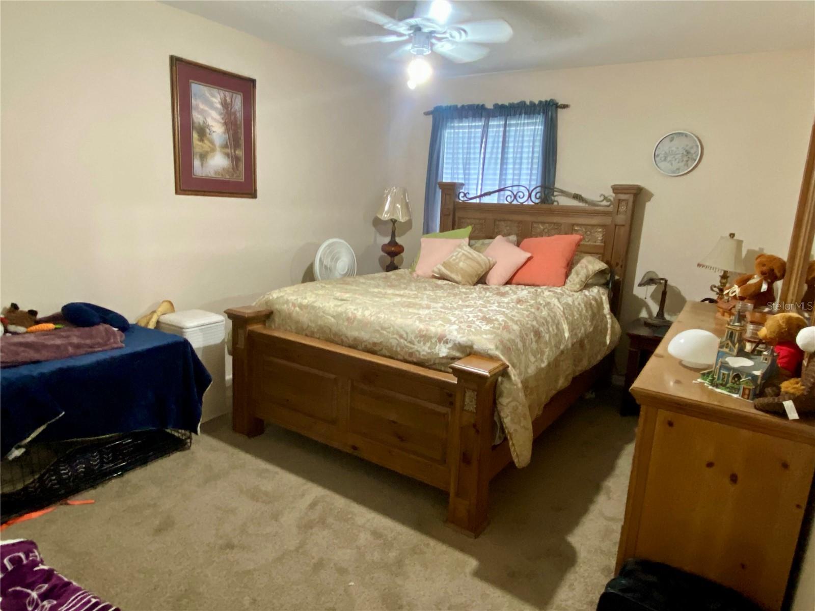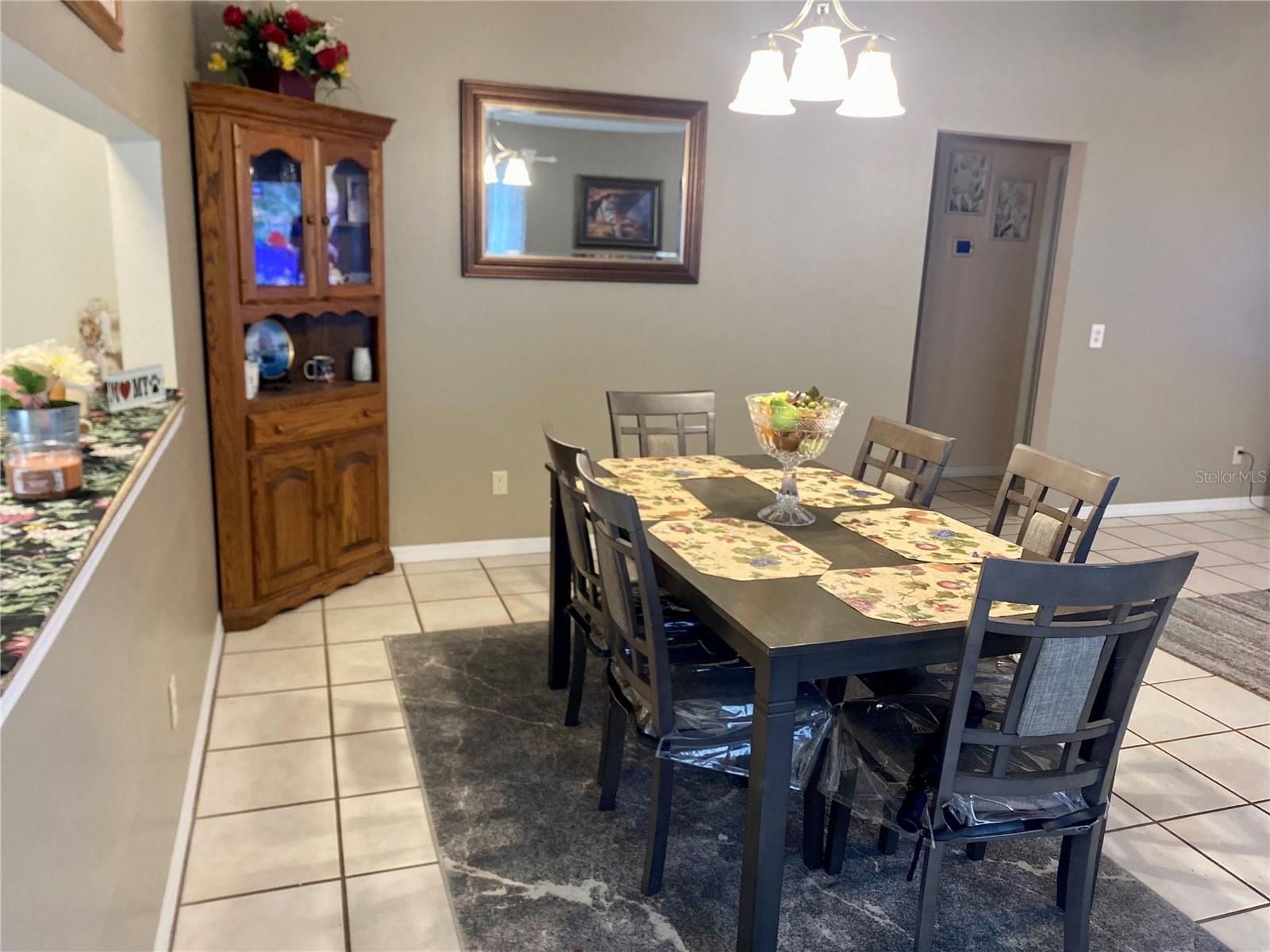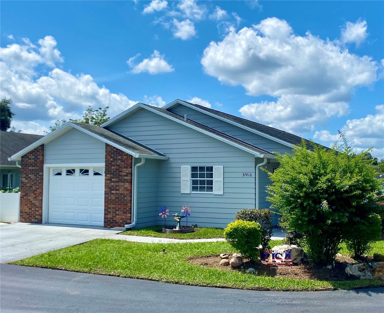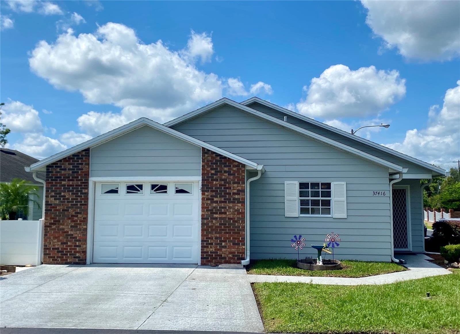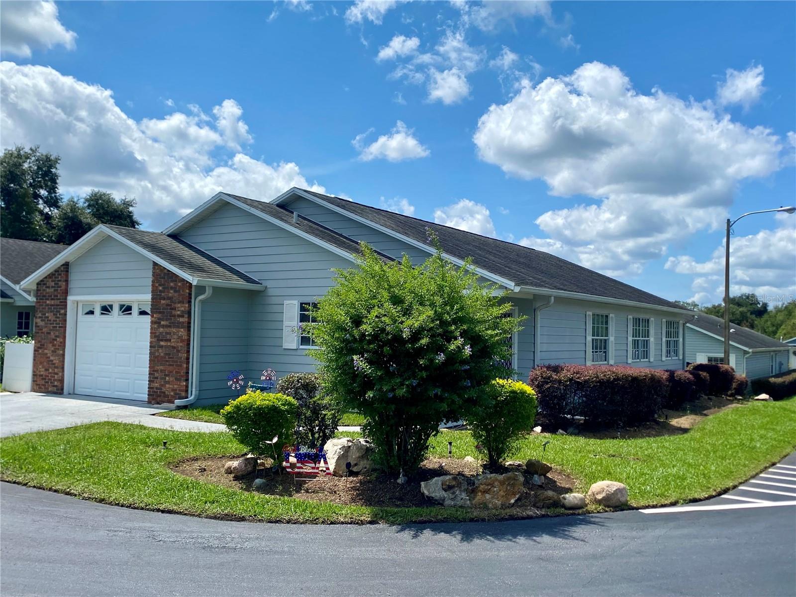 Welcome to Wedgewood Manor, a 55+ community conveniently located in the heart of Zephyrhills, close to stores, churches, and medical facilities. This charming and spacious 1,434 sq ft home features 2 bedrooms and 2 baths. Located on the corner of Teaberry Loop, it’s driveway leads to a 1-car garage, along with side parking. The attractive community fence provides privacy from the main road, while the landscaping arount the house adds a touch of natural beauty. Upon entering, you'll find the kitchen to the left, equipped with granite countertops, a cozy eat-in bar, stainless steel appliances, and a pantry. The cathedral ceiling in the dining and living room creates a light and open ambiance, flowing into the flex room, perfect for a den, hobbies, or an office. The house features tile flooring and ceiling fans throughout, with carpet in the bedrooms. The master bedroom offers a spacious closet with shelving, and the master bath includes a shower, toilet, and vanity sink. Bedroom 2 also has shelving in the closet, and bathroom 2 features a tub/shower. New A/C installed 2024. Hot water heater, sprinkler system, and additional air conditioning in the garage installed 2023. The Homeowners' Association (HOA) covers internet, cable, lawn care, and provides access to the community's central recreational center, just a short walk or golf cart ride away. Residents can enjoy a variety of activities, a screened-in pool, and shuffleboard facilities.