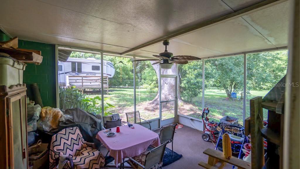FANTASTIC FIXER-UPPER OPPORTUNITY on 1 Acre! and NO HOA! NO CDD! No Deed Restrictions! Solid concrete block home with metal roof just waiting for the right buyer to bring it to an updated beautiful country setting home! with THREE SEPERATE living quarters offered here! Originally constructed in 1948, the main dwelling is a solid 3 bedroom 2 bath home featuring approximately 1,296 sq ft of living area and approximately 1,760 sq ft under roof! Located on a dead end un-paved road, the land is approximately 1 FULL acre and chain link fenced in the rear, and features mature trees and beautiful mature landscaping! The right buyer can finish up the remodel and vitalization of this great home and property and make it so beautiful! Other features of the main dwelling include a recently remodeled kitchen with new cabinets, solid surface countertops, tile backsplash, and stainless steel appliances! There is also a wood burning fireplace in the living room and a wonderful front open porch and a rear screened in patio. Central AC unit for the main dwelling was replaced approximately within the past 5 years, and brand new (2024) TANKLESS hot water heater. The interior utility room is very spacious and also has a front load washer and dryer and plenty of room for interior storage, and the home also features an interior attic fan that. The detached garage (measuring approximately 24 x 20 or 480 sq ft) has been partially converted to a separate living quarters/in-law apartment with a half bath (sink and toilet) and a window ac unit. The apartment has a walk in closet that could be potentially used to remodel into expanding the half bath into a full bath with a shower/tub. ALSO included with the sale is a 2012 39 foot Alpine 5th Wheel RV that has plenty of upgrades featuring real wood cabinetry, solid surface countertops, washer/dryer, queen size bed, and has an RV hook up to power and septic. The refrigerator in the RV does not function and will most likely need to be replaced. Plenty of room to have the pets, small farm animals, extra vehicles, ATV's, RV, and so much more! Zoned AR and Located in Pasco County jurisdiction for lower county taxes, yet extremely close to shopping, retail, schools, and medical services! Home is not located in a flood zone per Pasco County. Priced right at $285,000 as the new buyer will need to finish the remodel and other projects so priced with this in mind. The sale of the property will be As - Is with right to inspect. Seller has also acknowledged that Wayfarer Drive does not physically touch the current property boundaries as to seller's best knowledge, and that Wayfarer Rd is not located on the correct ingress/egress as recorded by Pasco County, however per Seller Pasco County does perform the road maintenance as needed. If you are the right buyer, willing to get the work done, this home and fantastic opportunity is for YOU! Call today for your tour! Potentially reside in the RV while you finish your remodel project! The metal roof did experience some wind damage from recent Hurricane Milton, however appears to be repairable and is reflected along with other remodel projects in the offering price....cash offers only please as work will need to be done to be financeable...grab this opportunity to finish this remodel into a BEAUTIFUL COUNTRY HOME! SHOWN BY APPOINTMENT ONLY...call today for your tour!